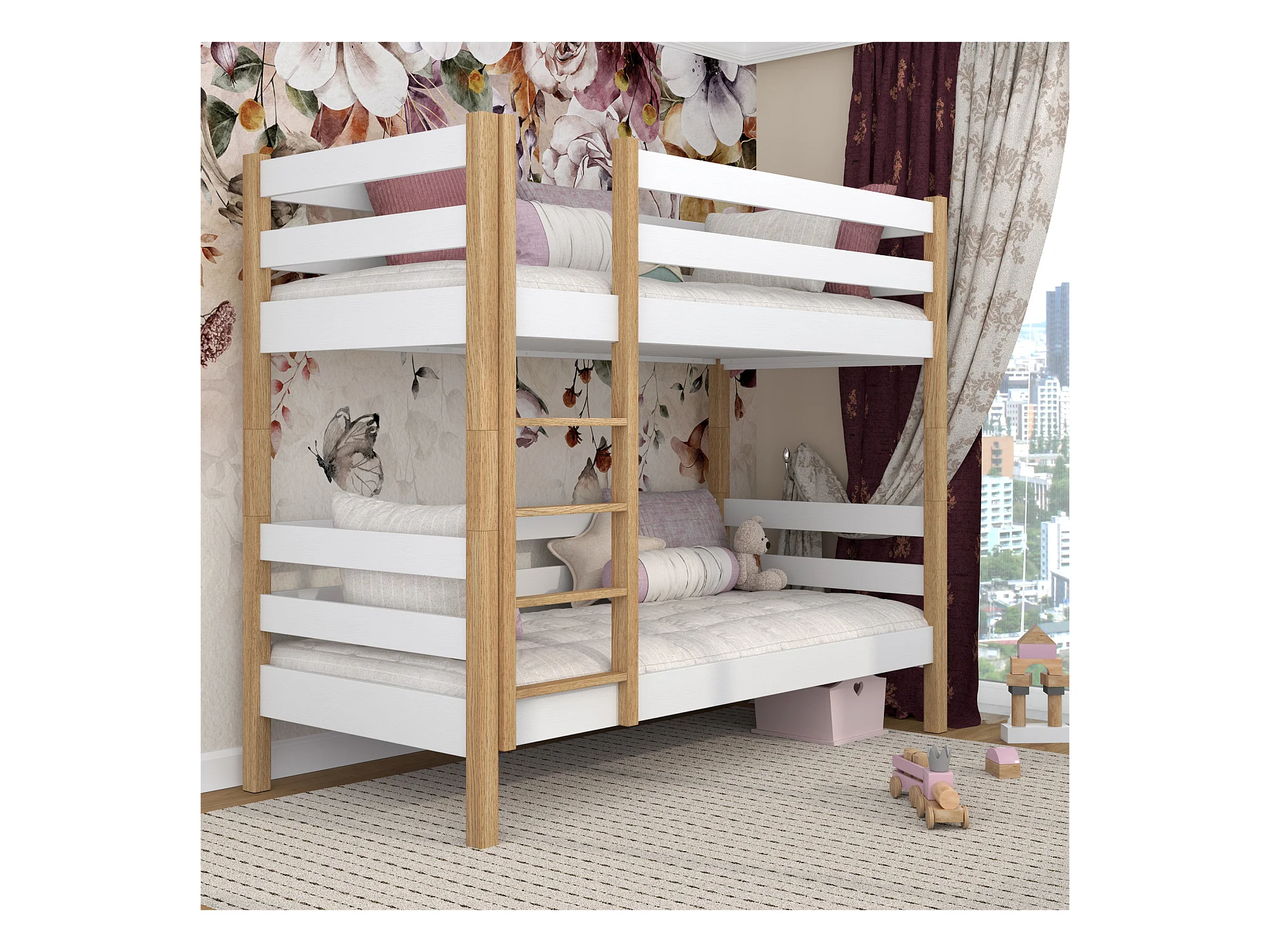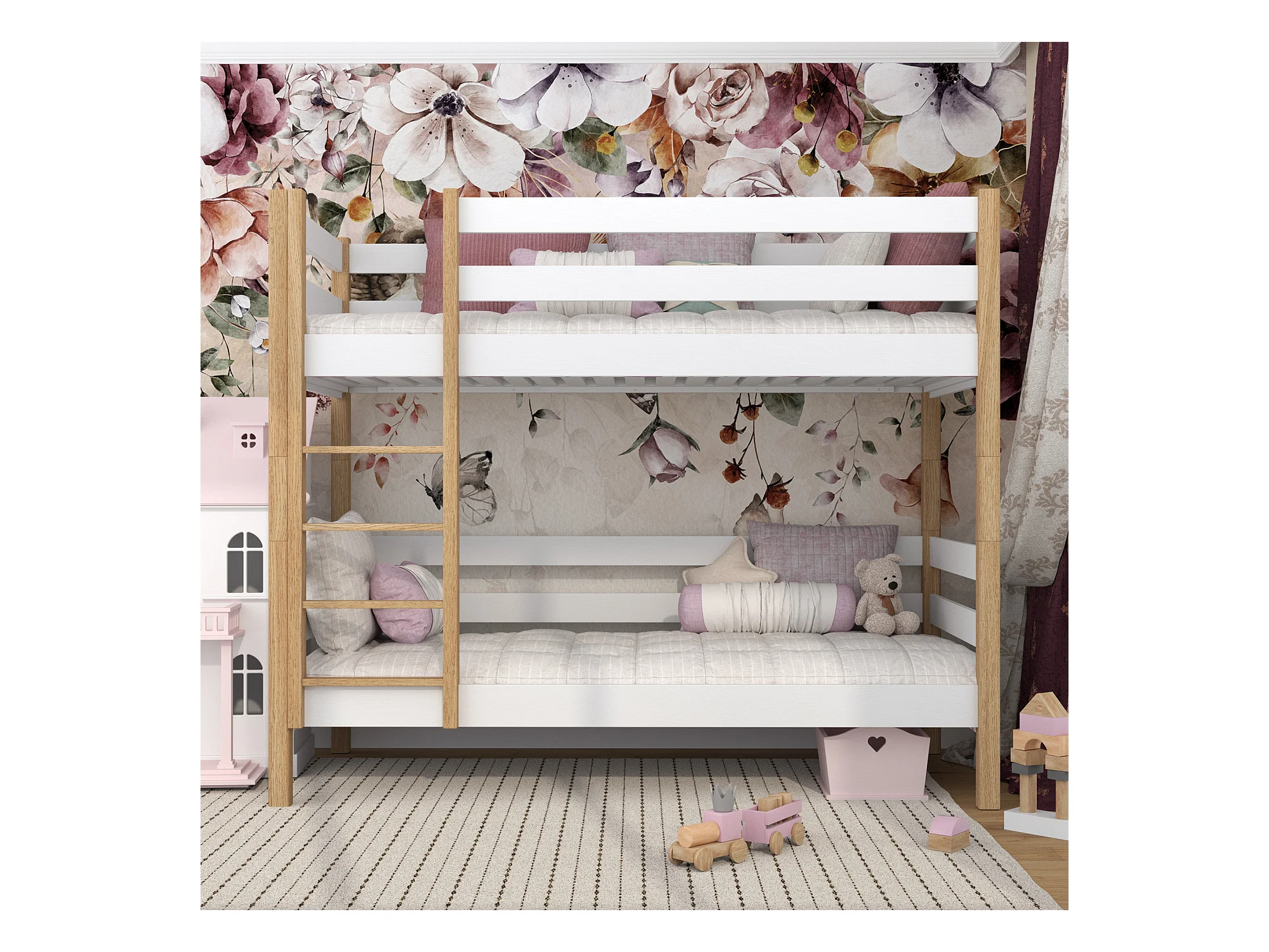Lit superposé en bois N01 Blanc / Chêne Naturel 100x200