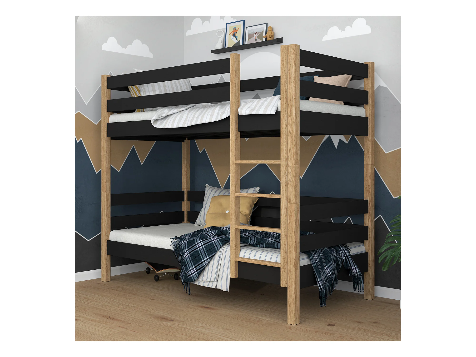Lit superposé en bois N01 Noir / Chêne Naturel 120x190