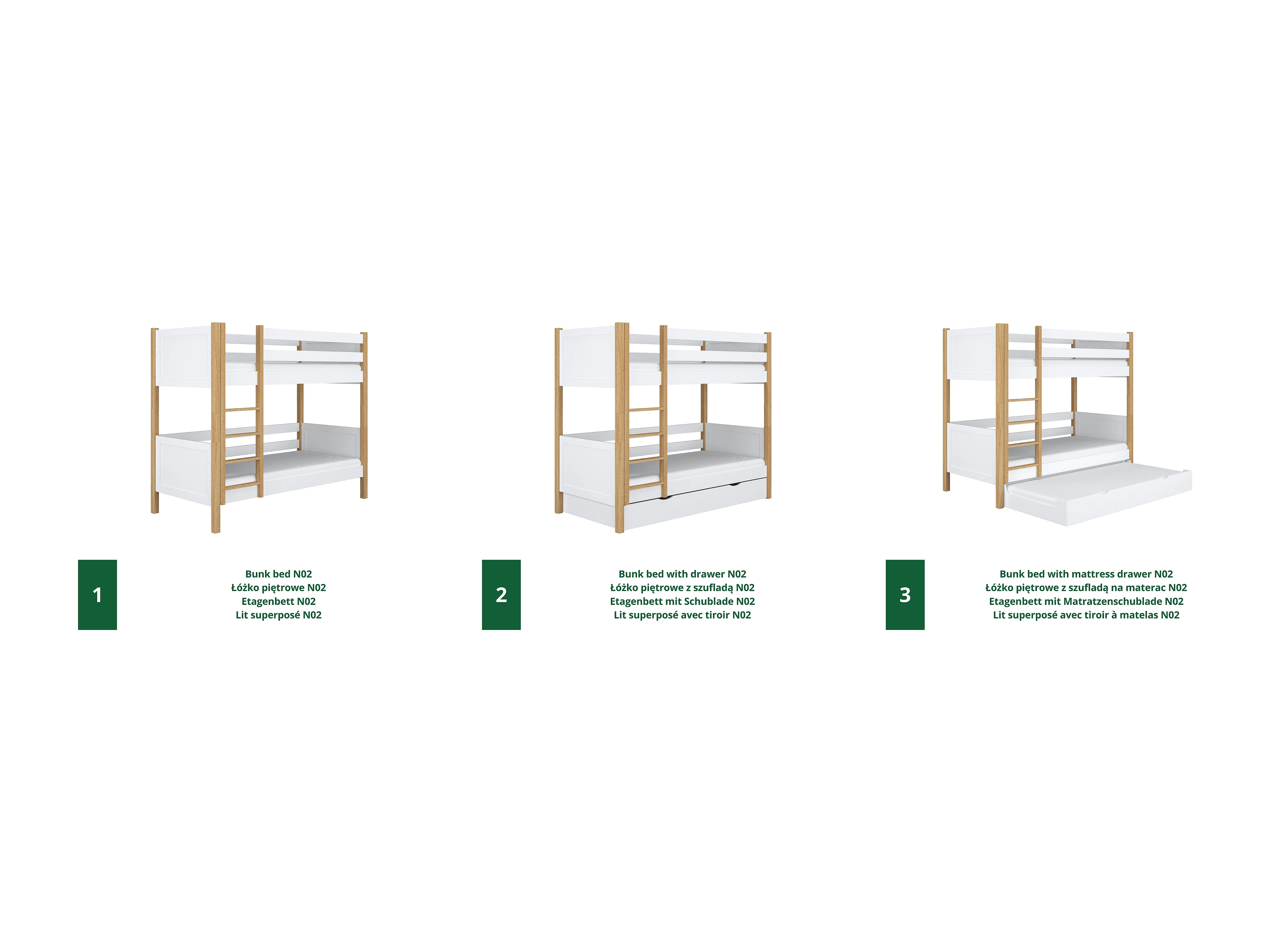 Lit superposé en bois N02 Blanc / Chêne Naturel 100x180
