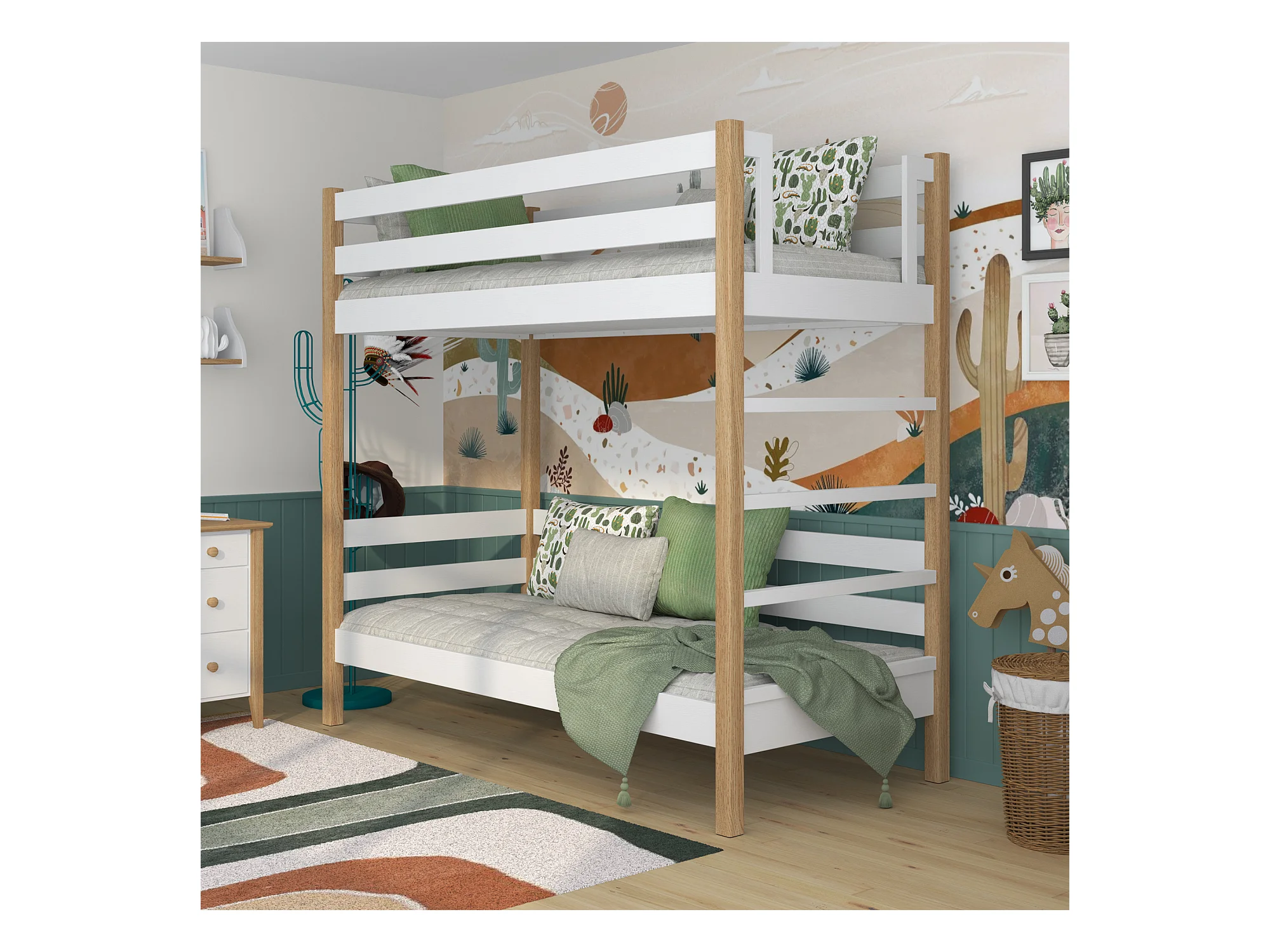 Lit superposé en bois N03 Blanc / Chêne Naturel 80x190