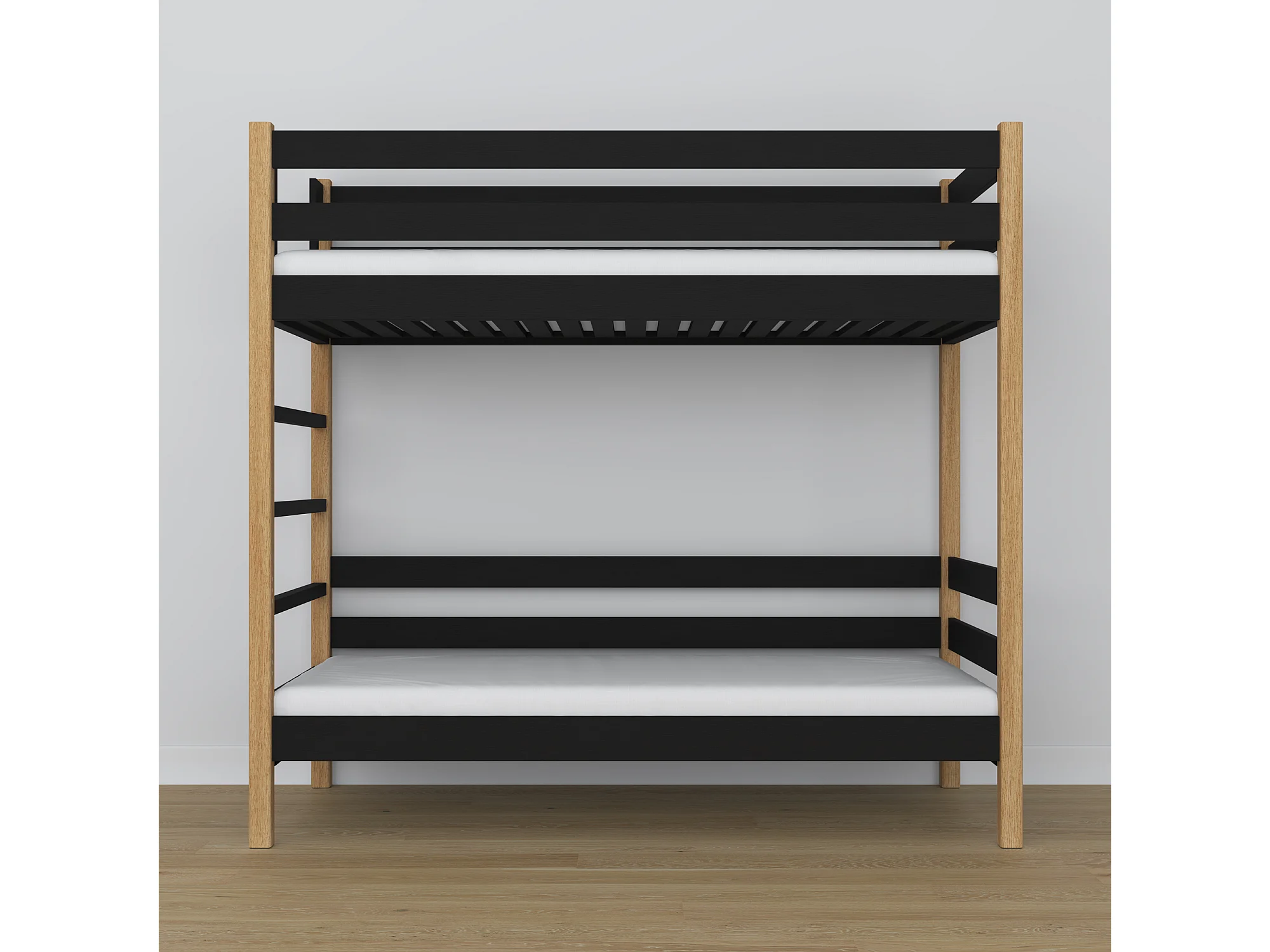 Lit superposé en bois N03 Noir / Chêne Naturel 80x200