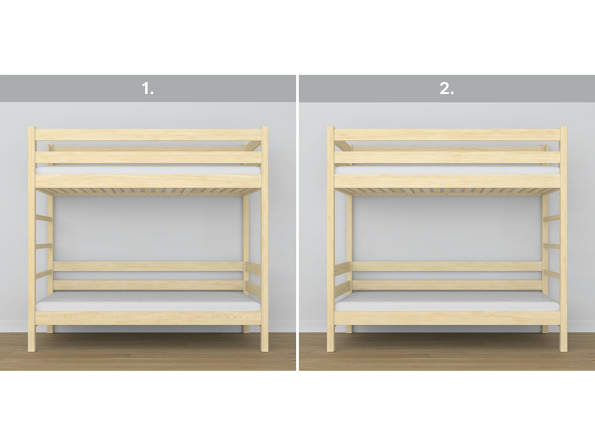 Lit superposé en bois N03 Pin Clair 90x180