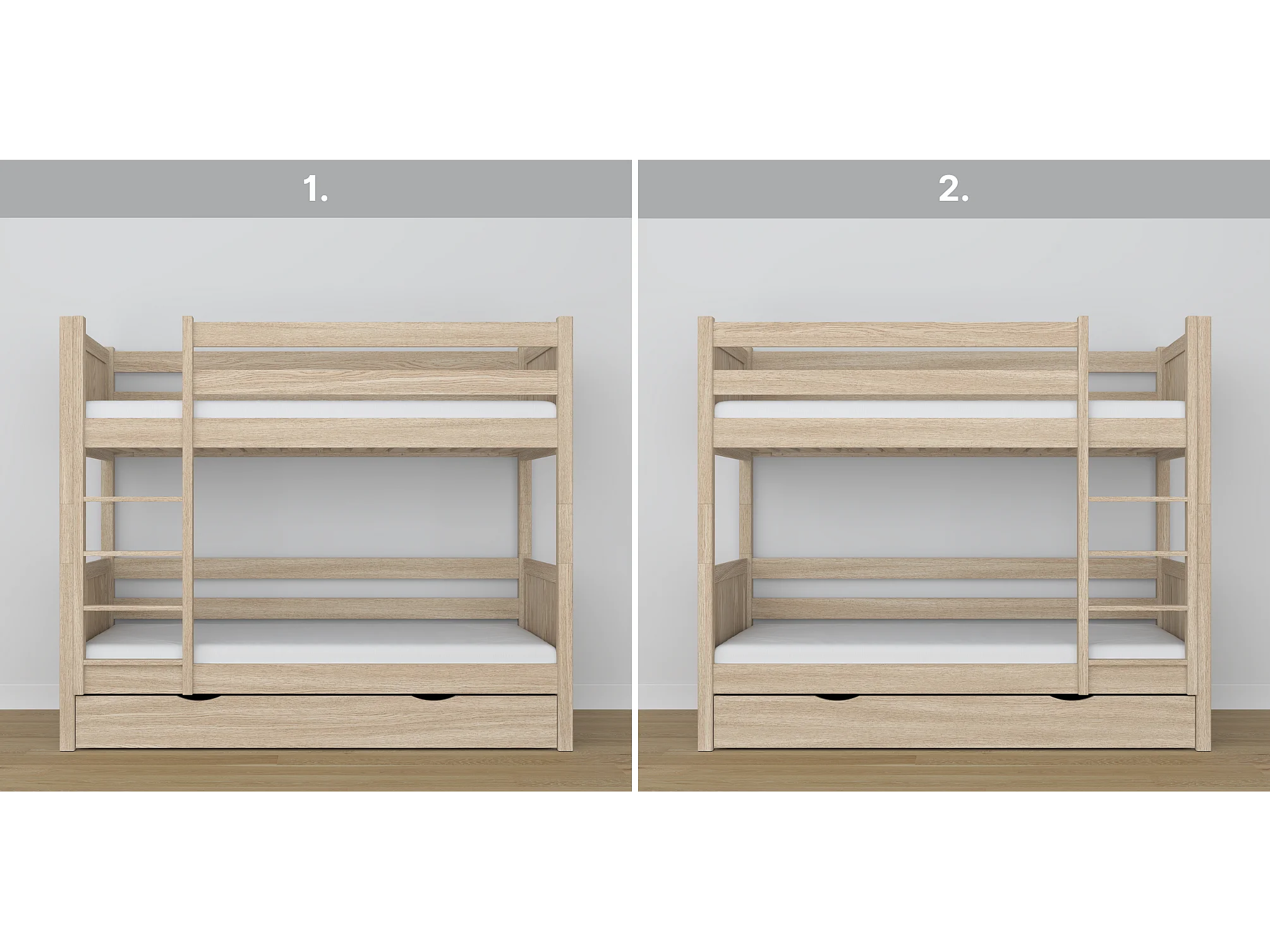 Lit superposé en chêne - avec tiroir N02 Chêne Blanchi 90x180