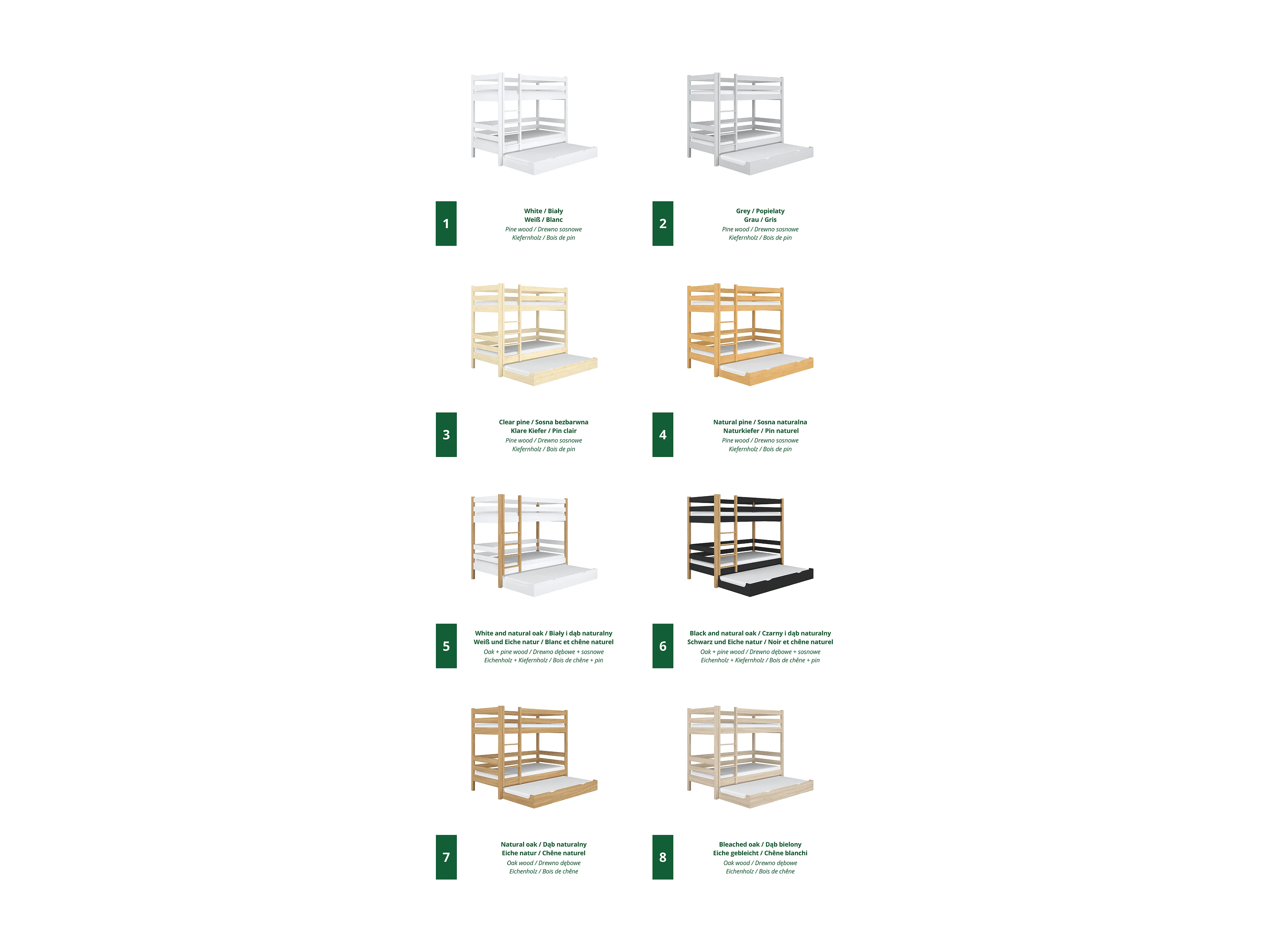 Lit superposé en chêne - avec tiroir pour matelas N01 Chêne Blanchi 90x190