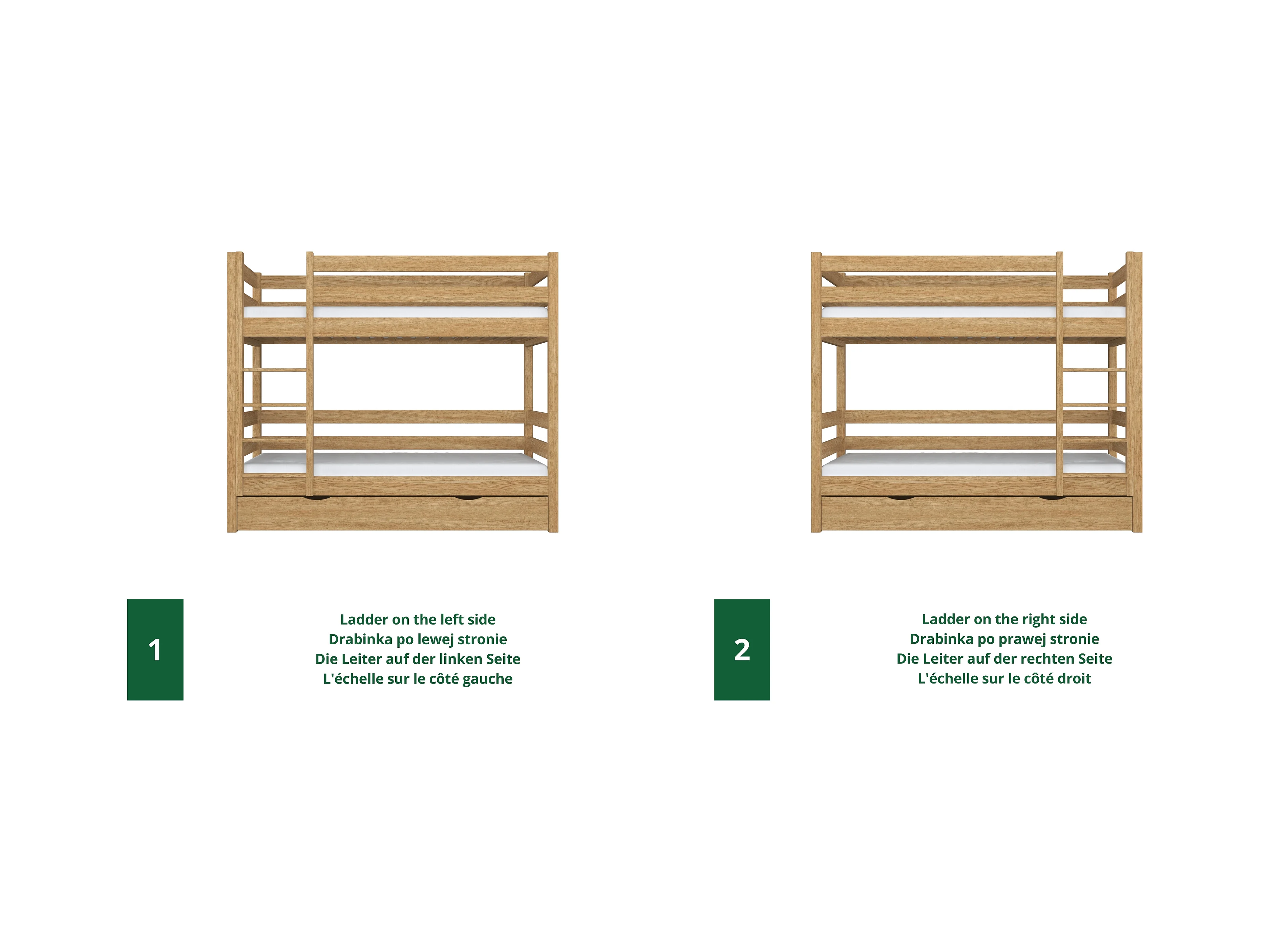 Lit superposé en chêne - avec tiroir pour matelas N01 Chêne Naturel 100x180