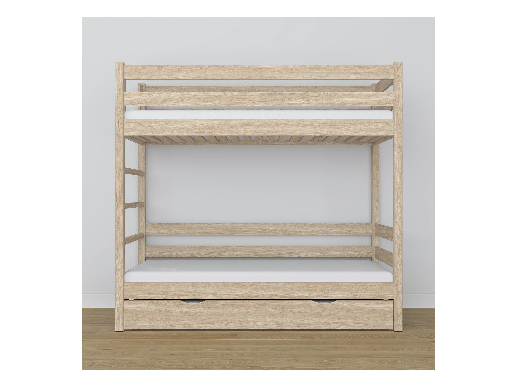 Lit superposé en chêne - avec tiroir pour matelas N03 Chêne Blanchi 100x190