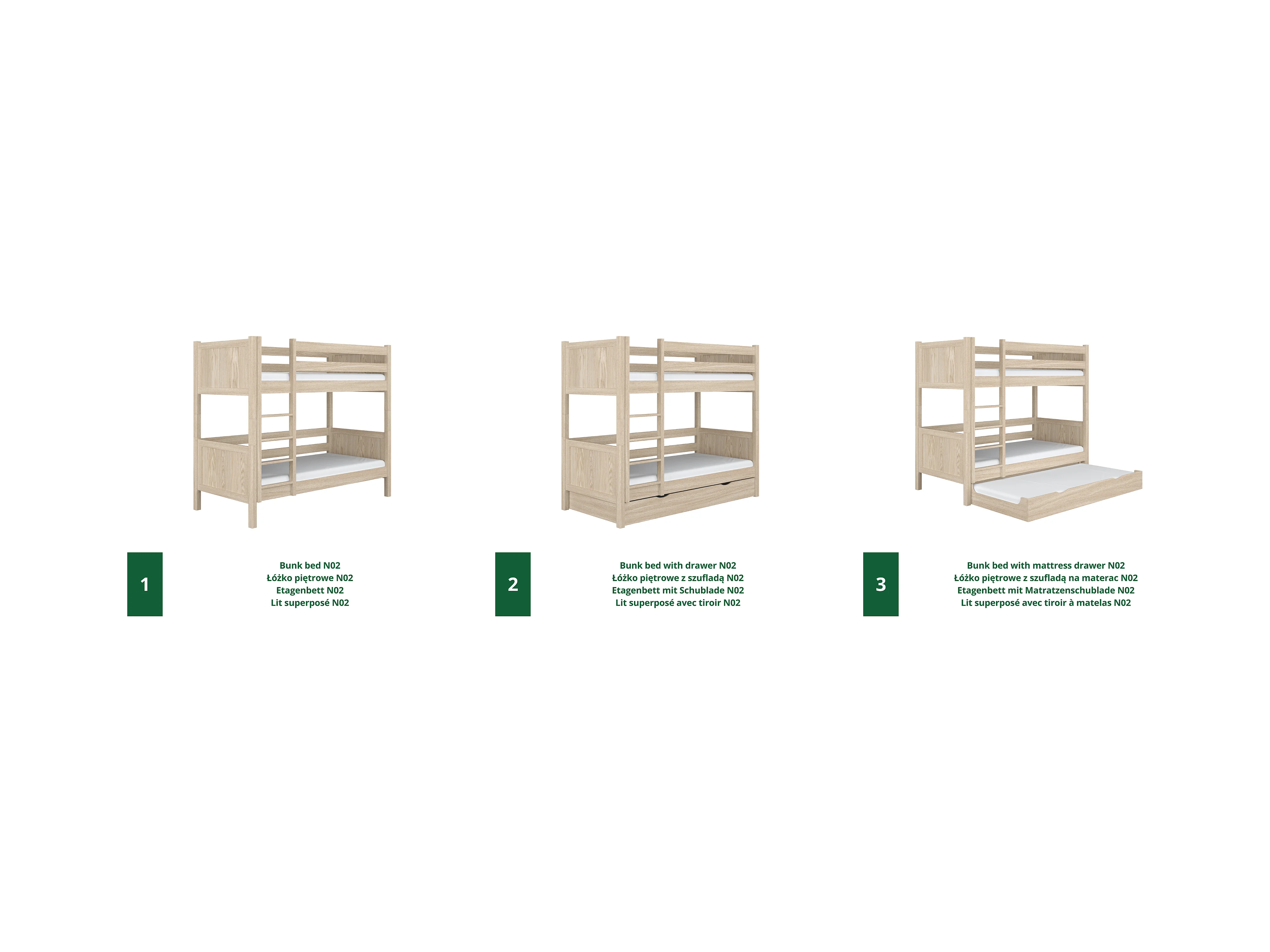 Lit superposé en chêne N02 Chêne Blanchi 90x180