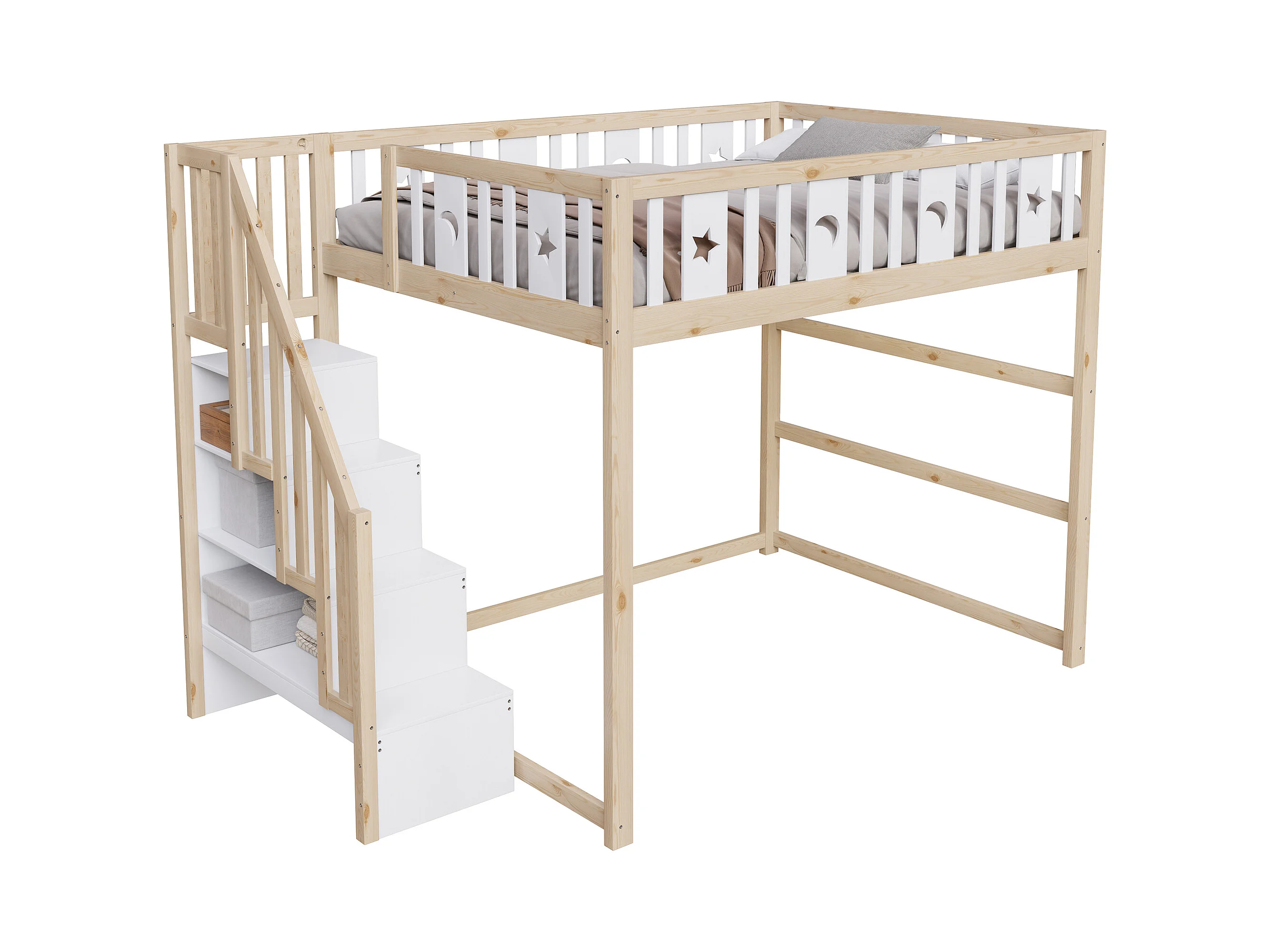 Lit superposé enfant 140x200 - avec escalier - avec barrières de sécurité - naturel (matelas non inclus)