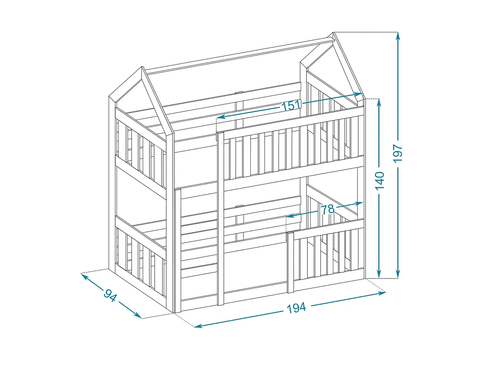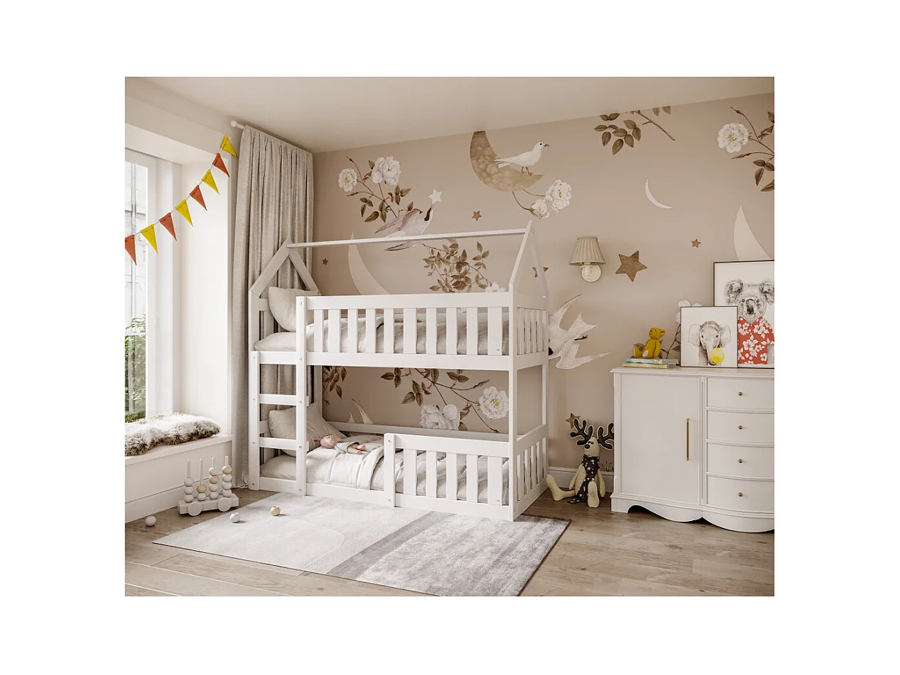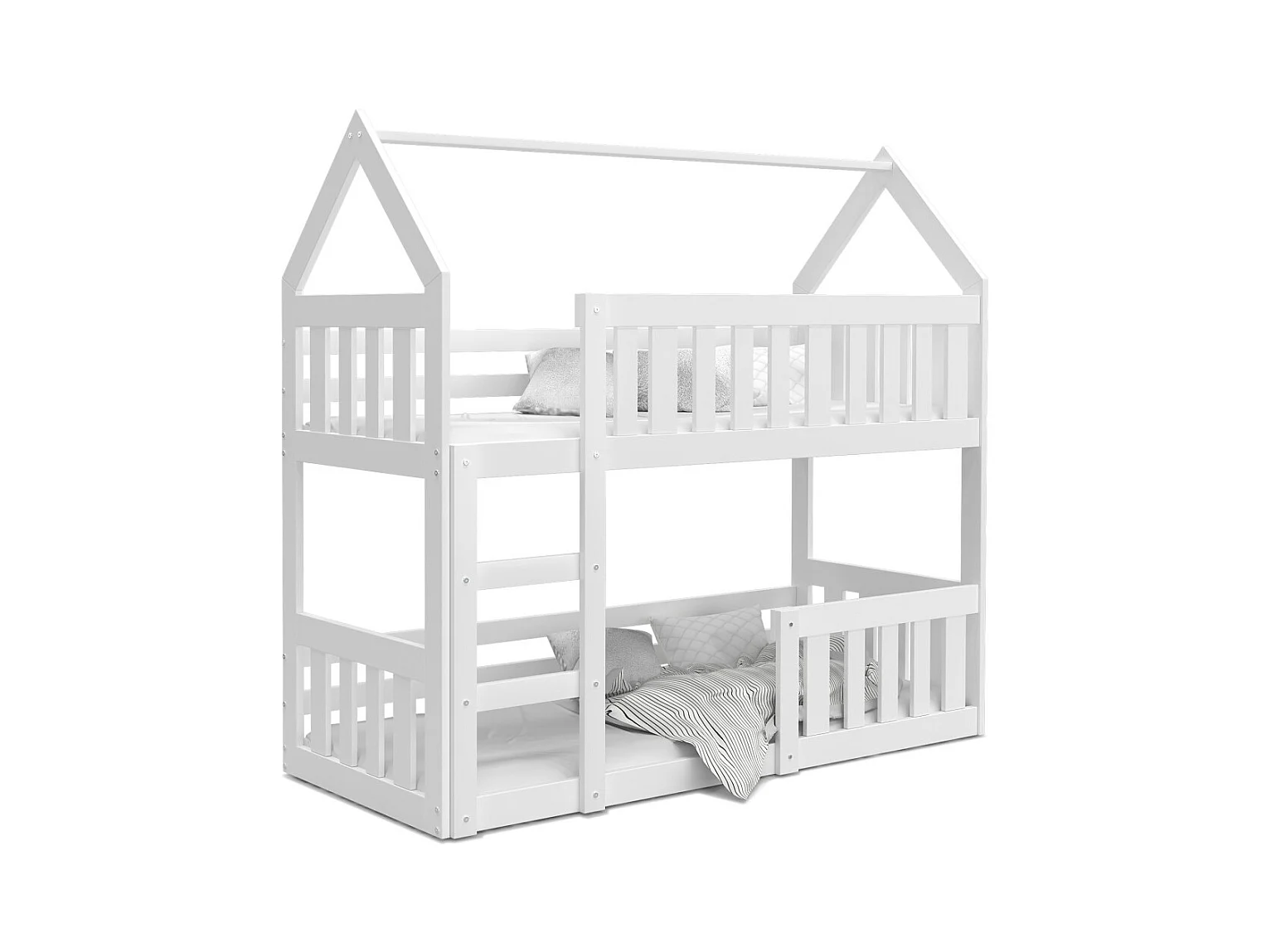Lit superposé Mily 90 x 190 cm avec 2 sommiers - Lit Cabane. Blanc