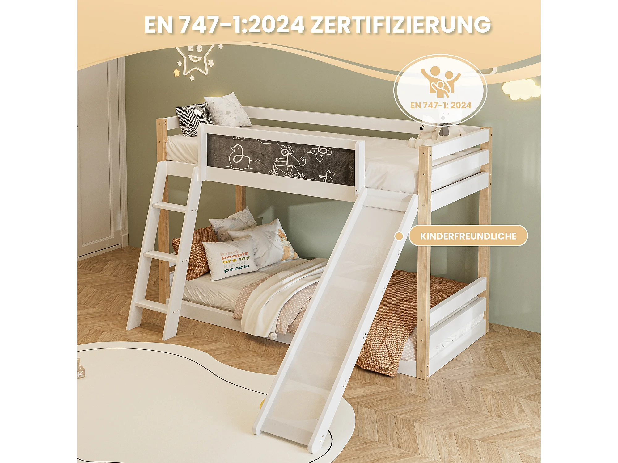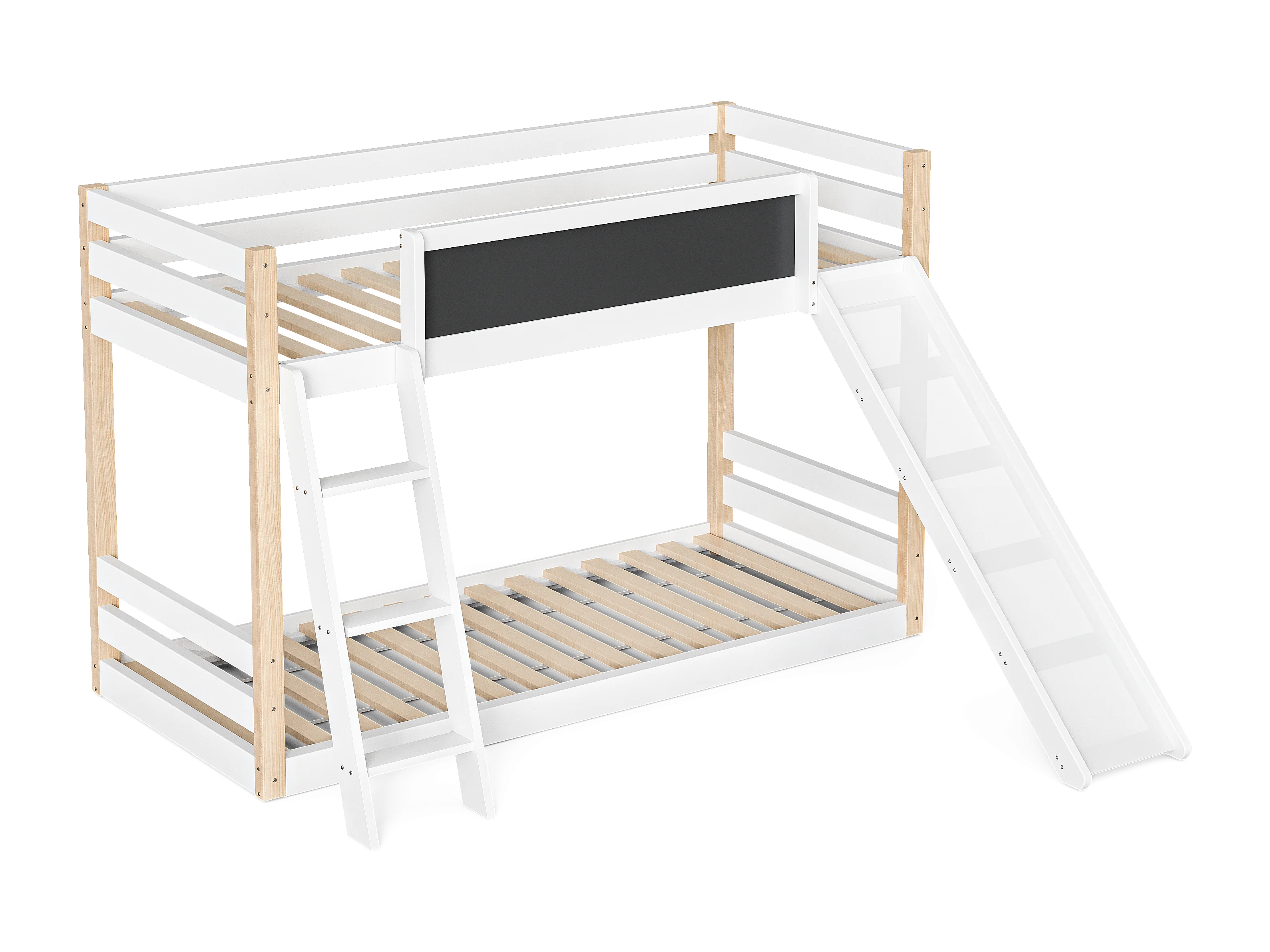 Lit superposé enfant 90x200 cm, 2 sommiers, bois et panneaux de particules, blanc et naturel, sans matelas