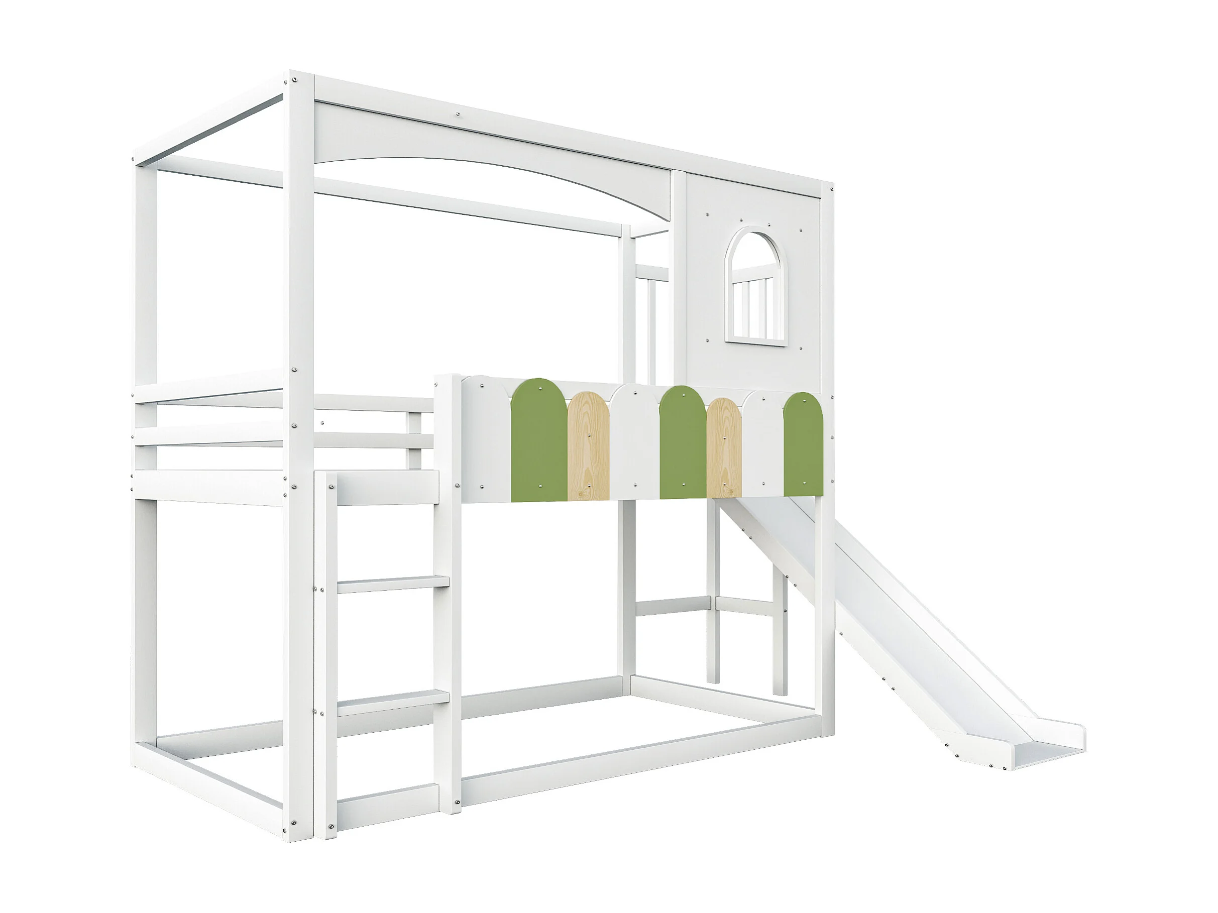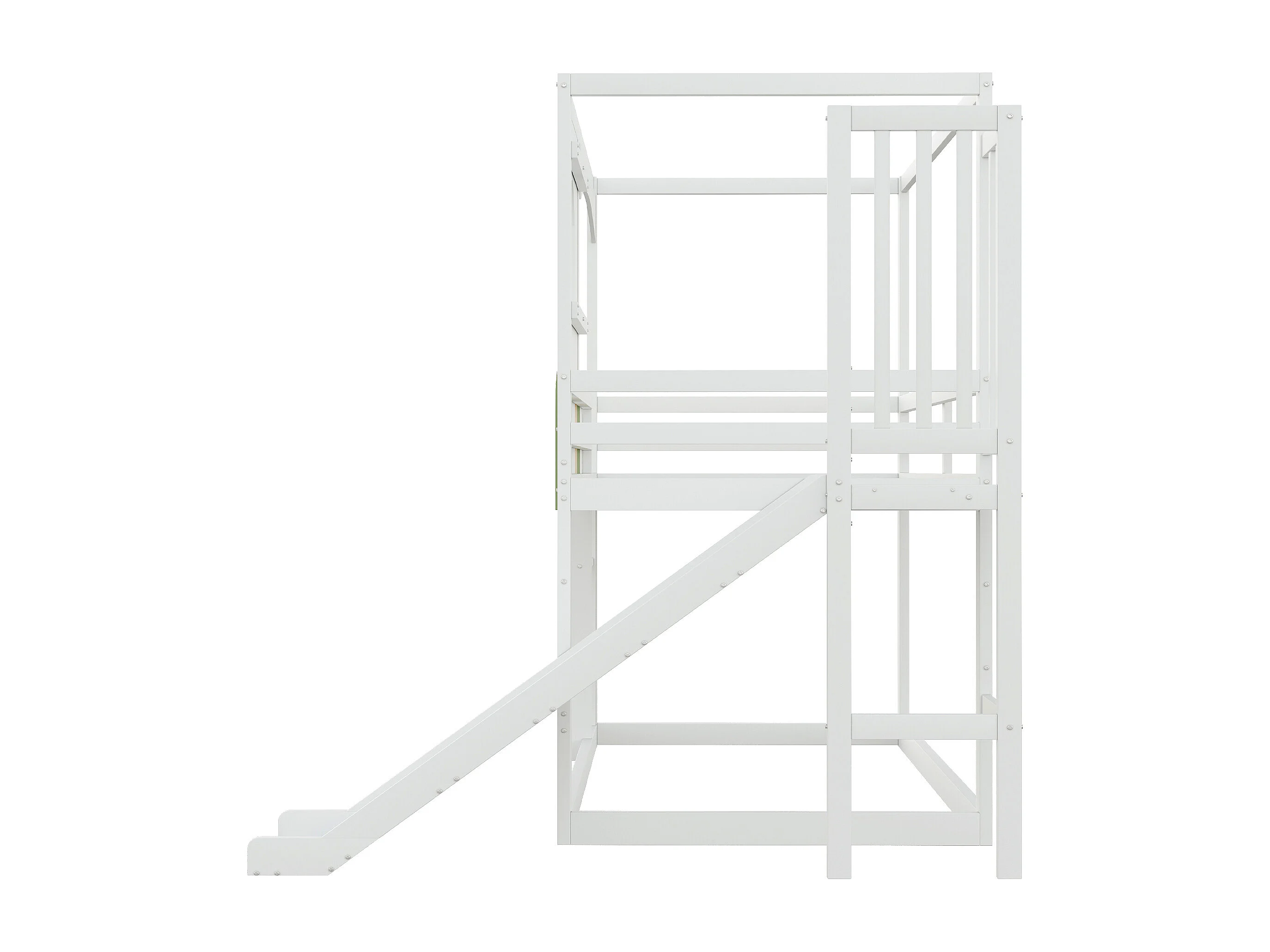 Lit superposé enfant 90x200 cm - avec barrières de sécurité - avec toboggan + échelle de sécurité - blanc (matelas non inclus)