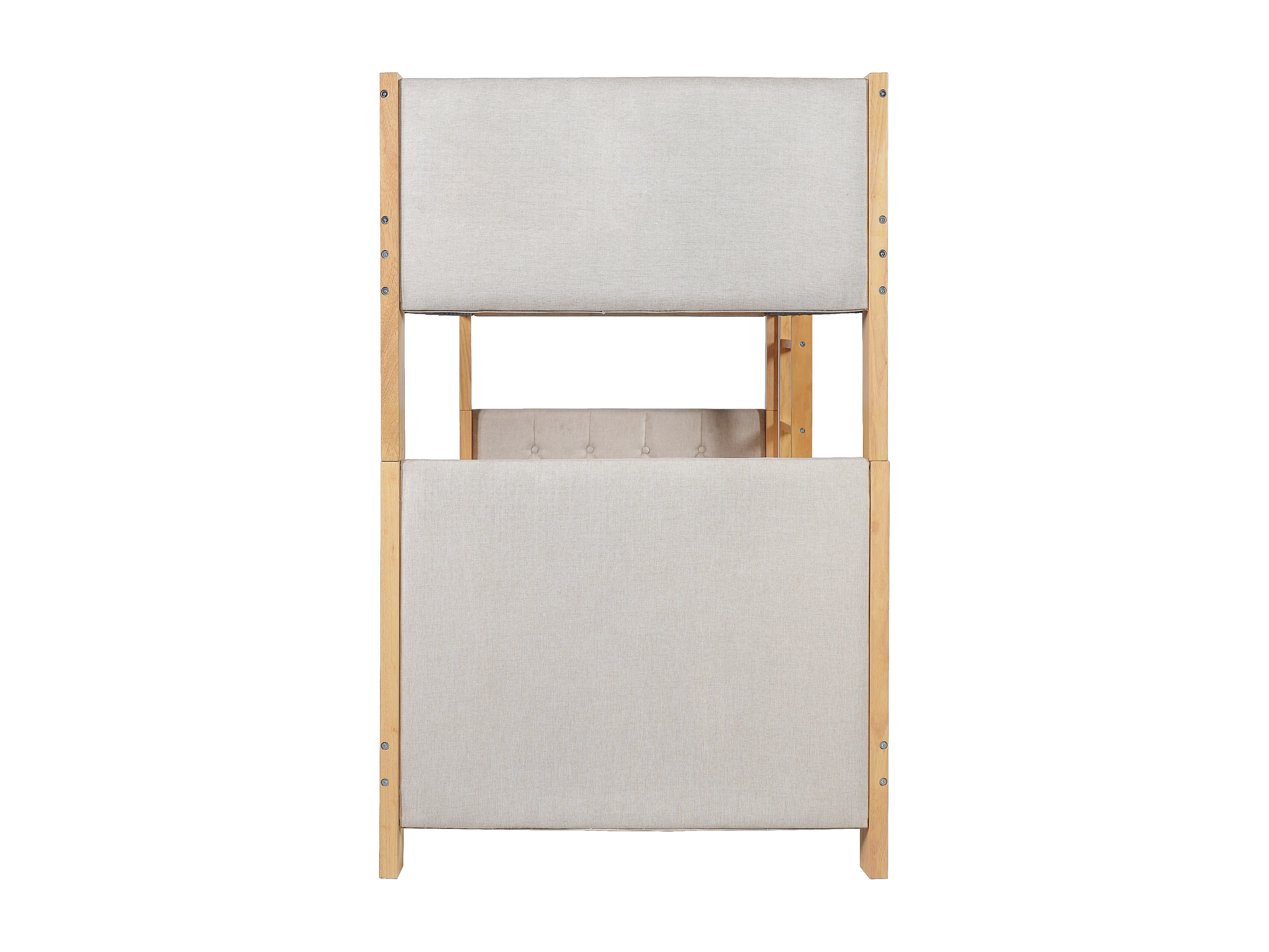 Lit superposé enfant 90x200 cm avec barrières de sécurité - Gris et bois naturel
