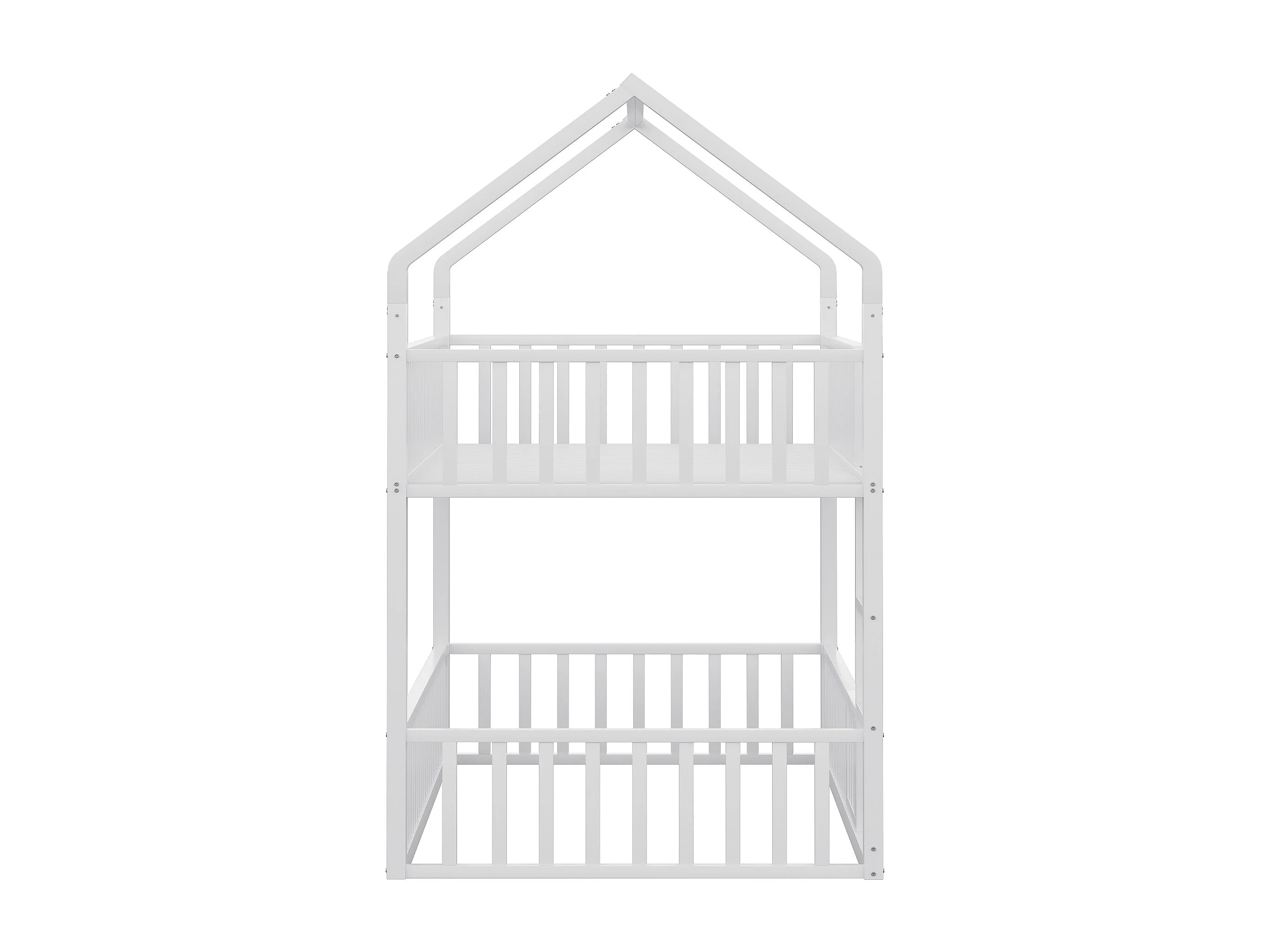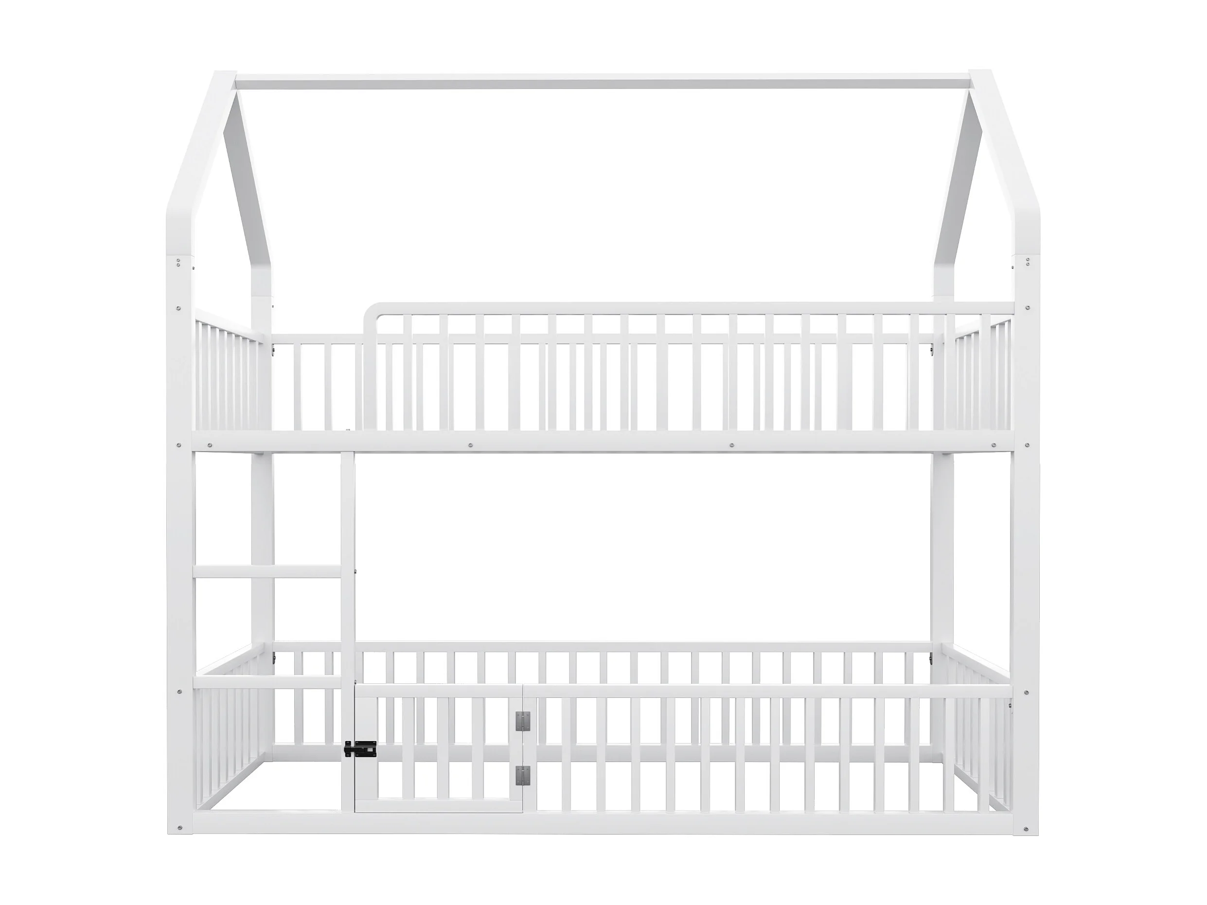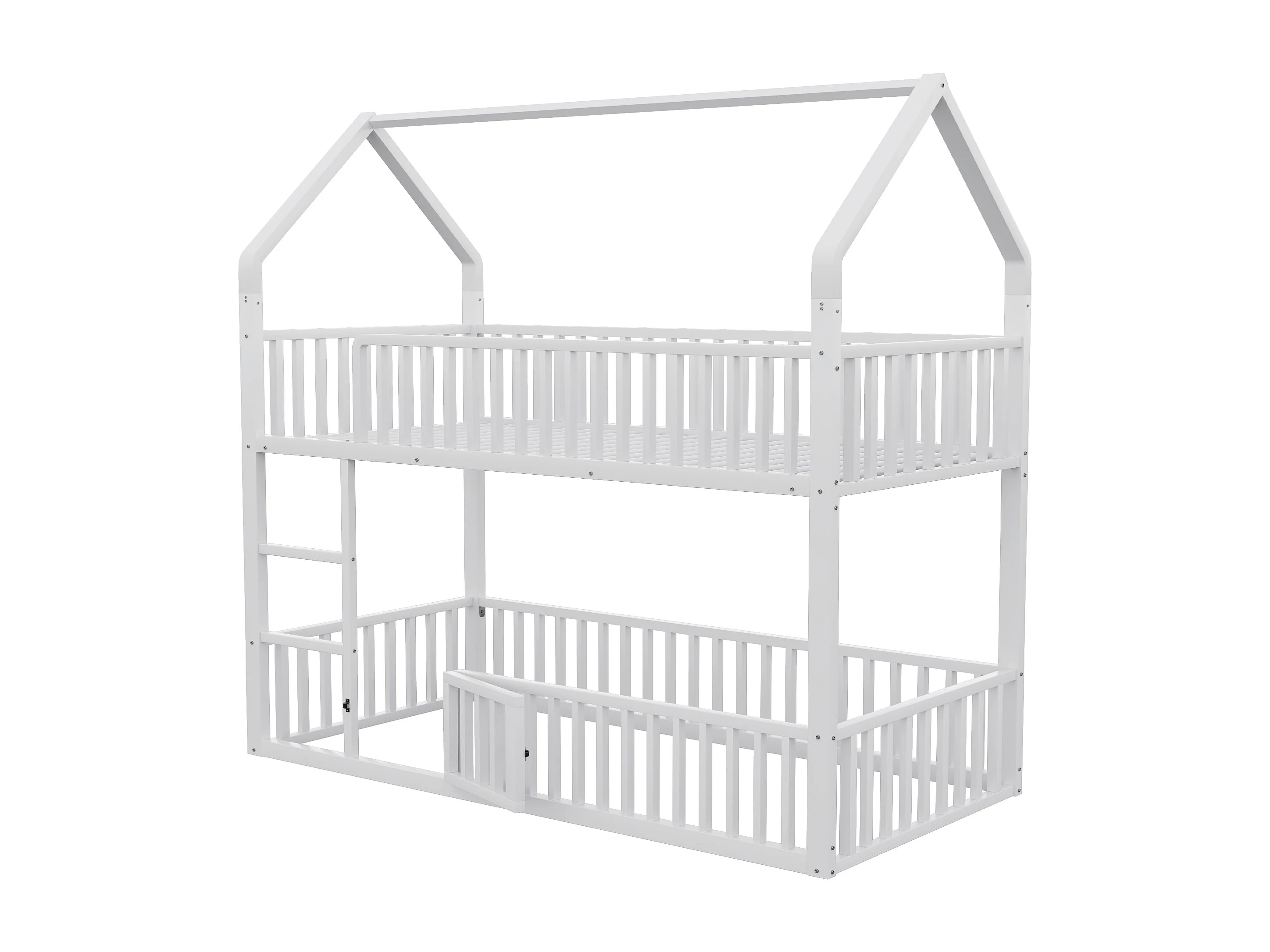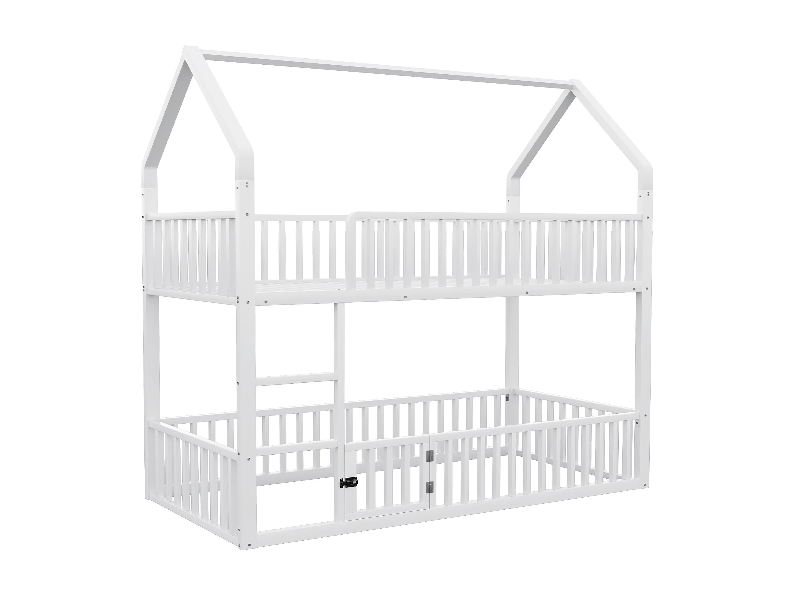 Lit superposé enfant 90x200 cm avec escalier et barrières de sécurité, blanc - sans matelas