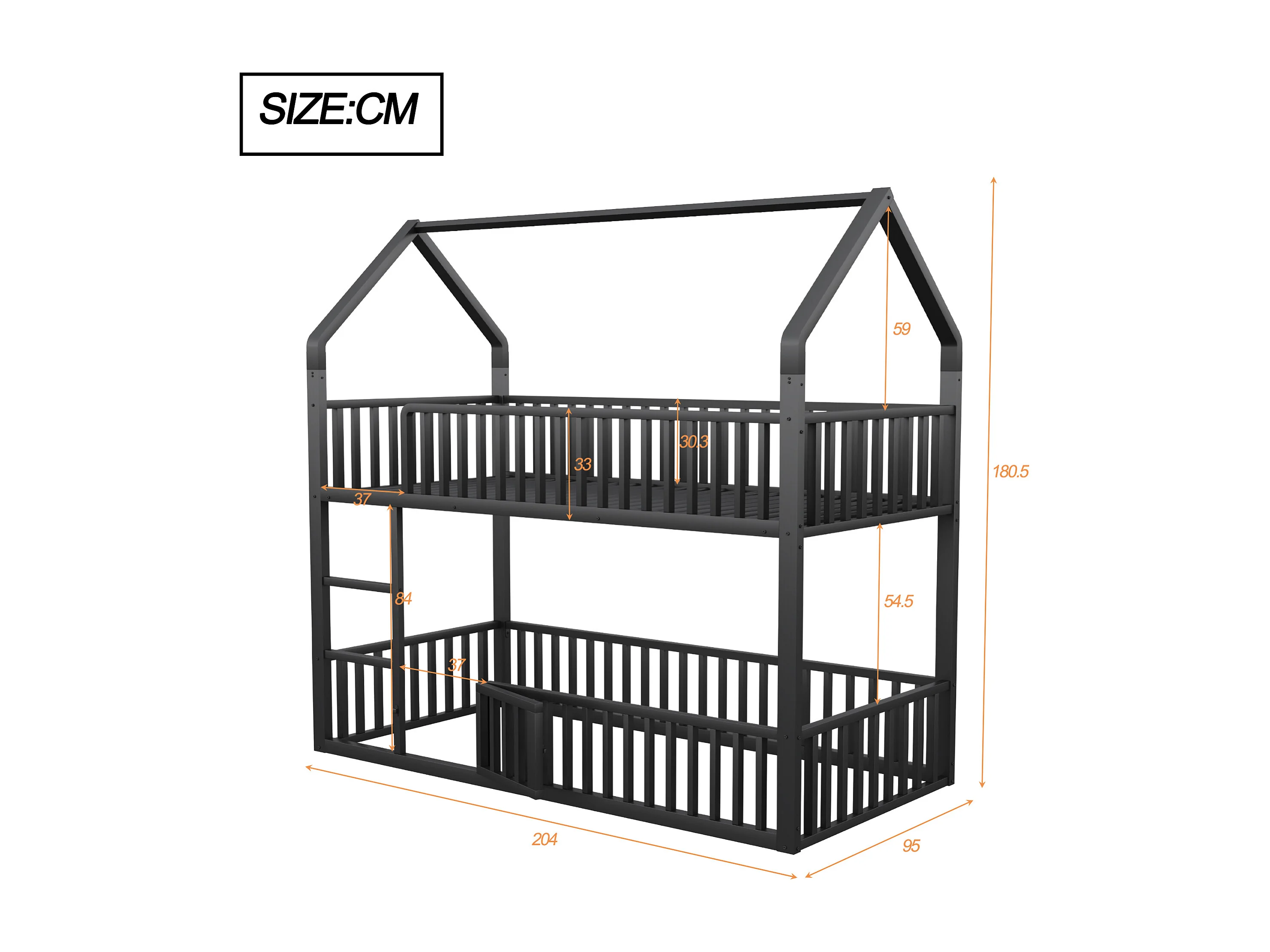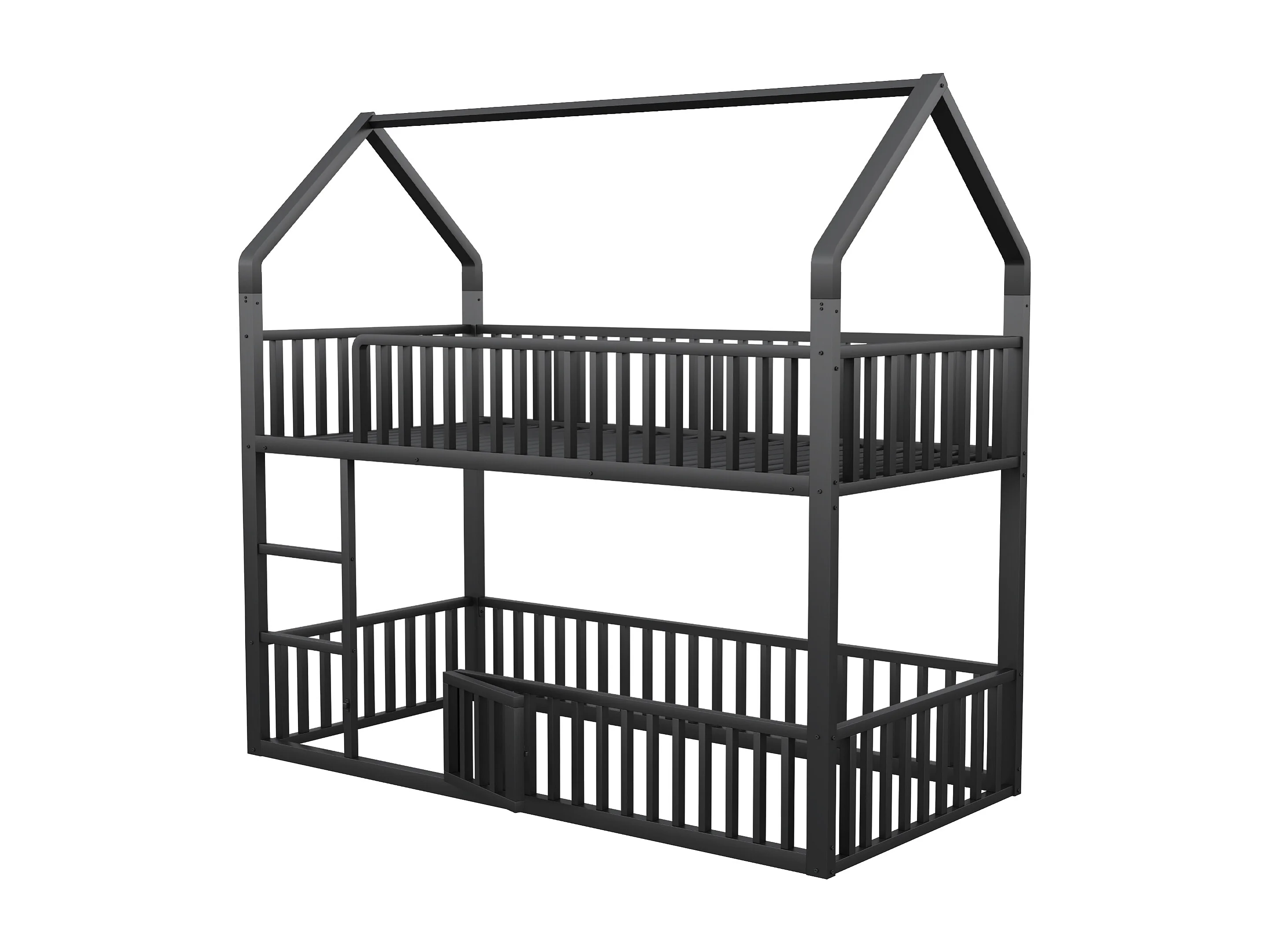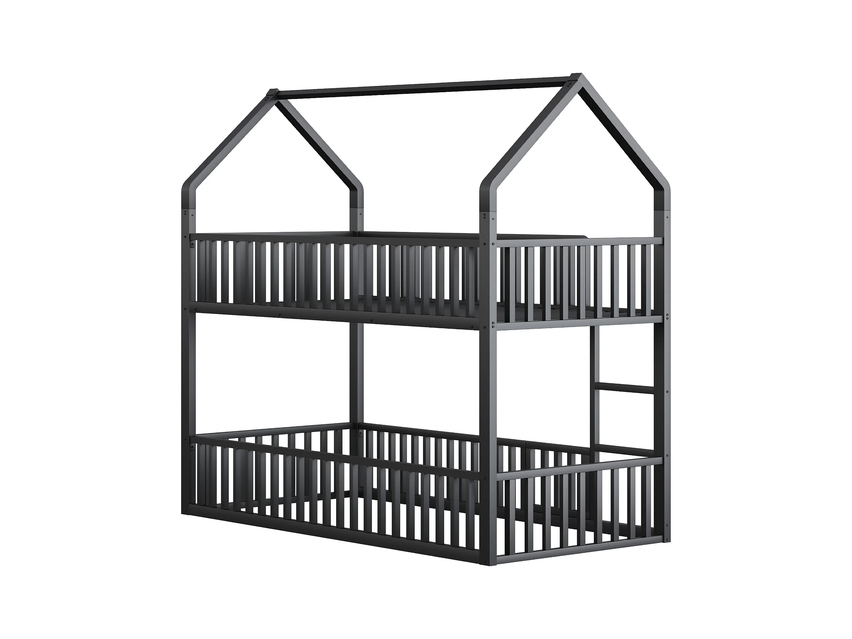 Lit superposé enfant 90x200 cm avec escalier et barrières de sécurité, noir - sans matelas