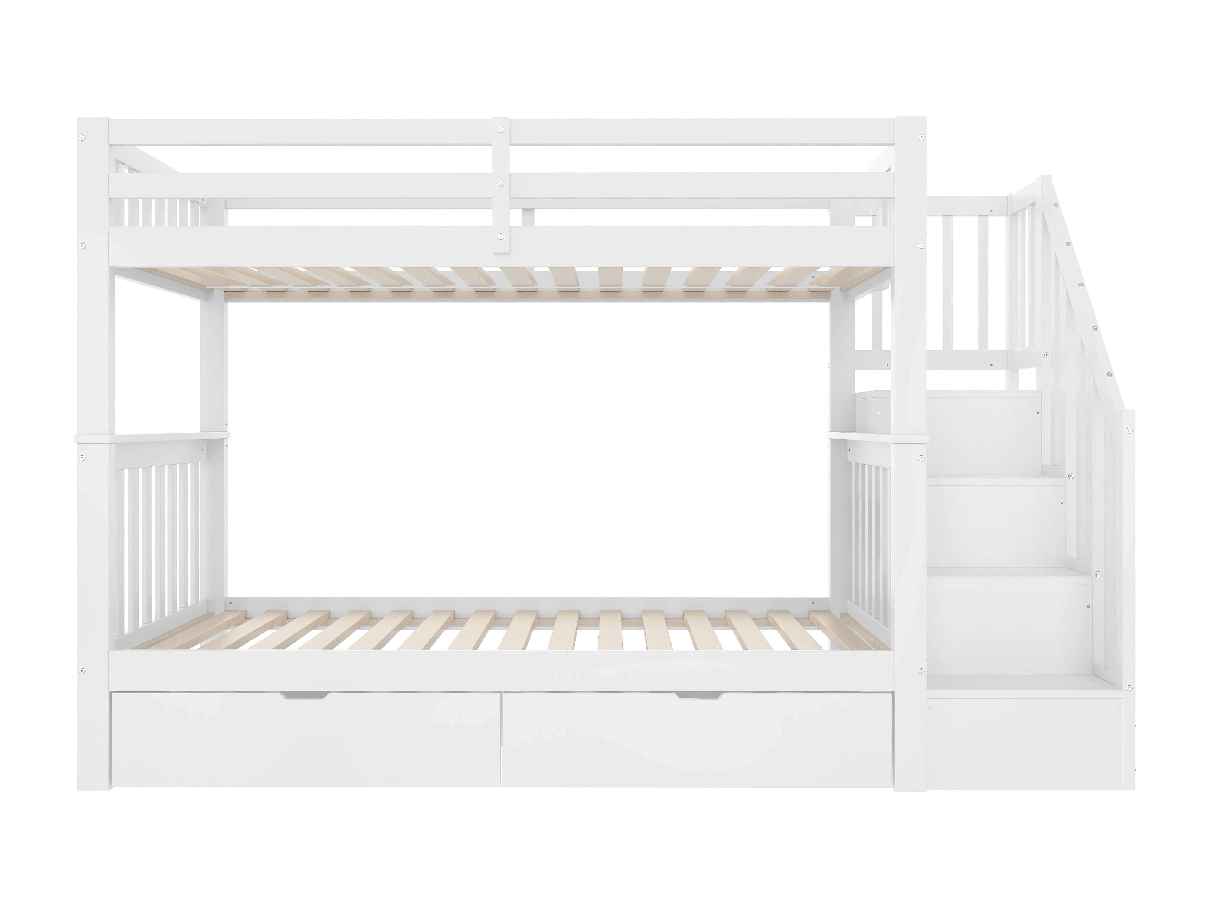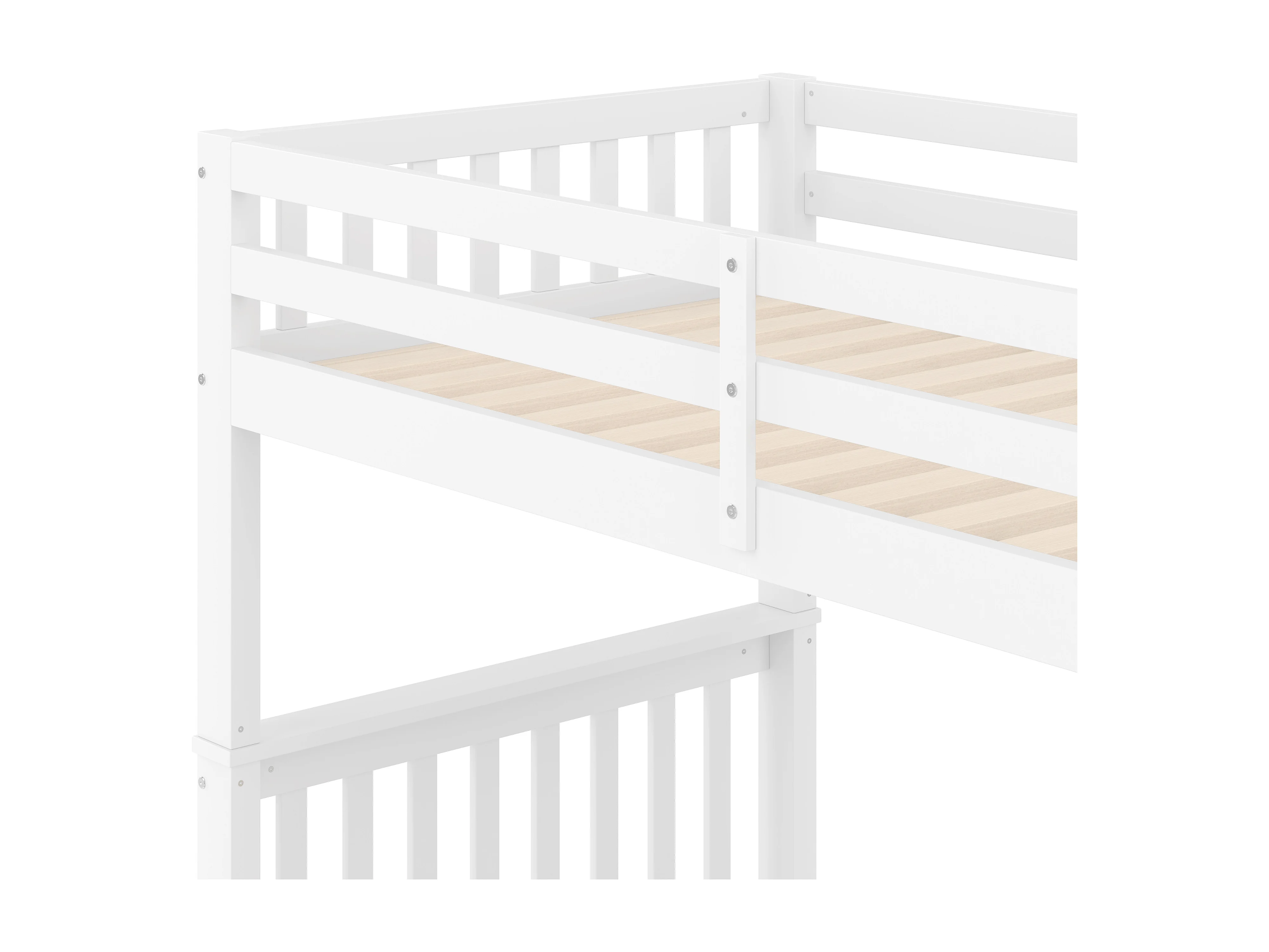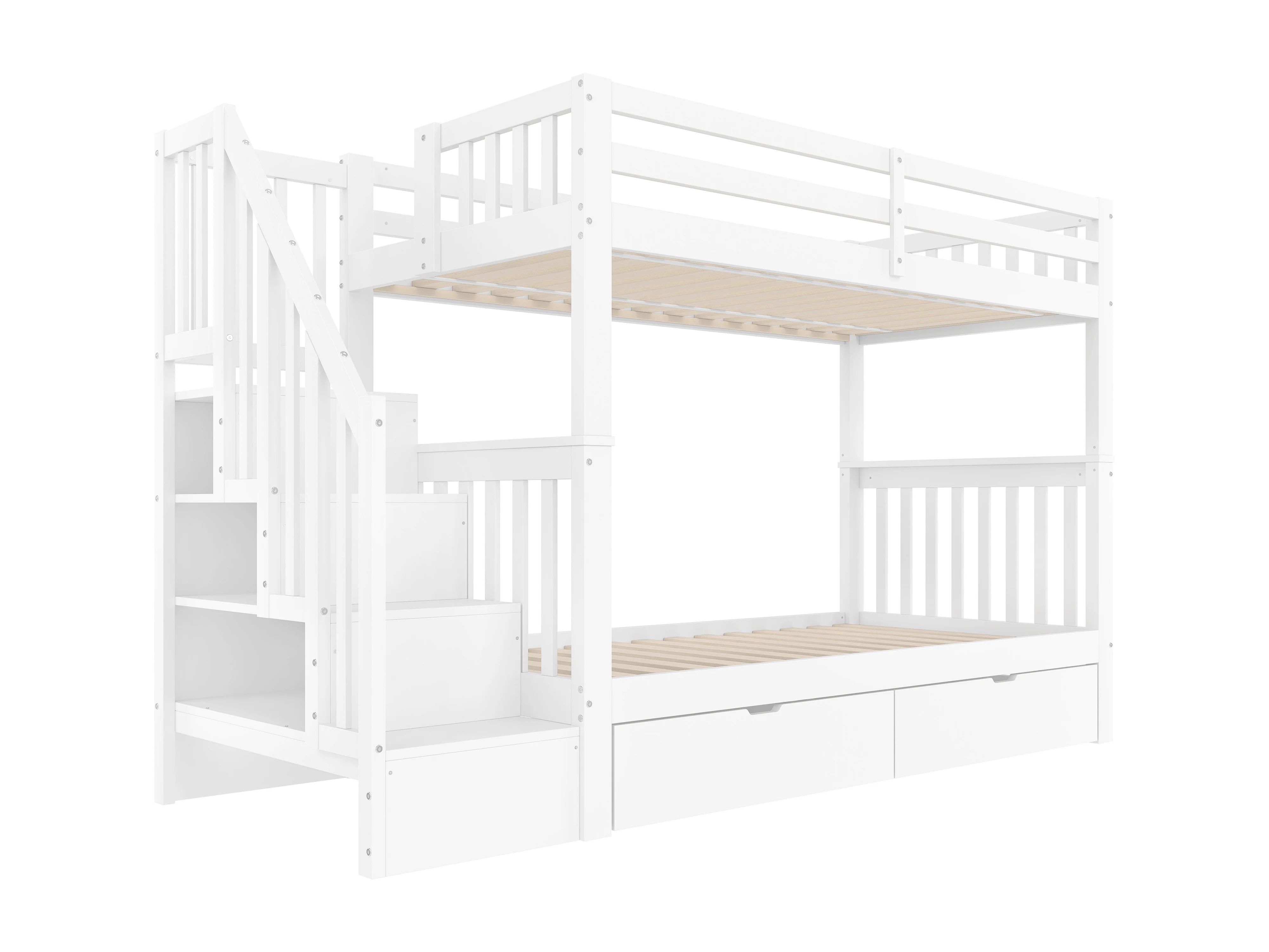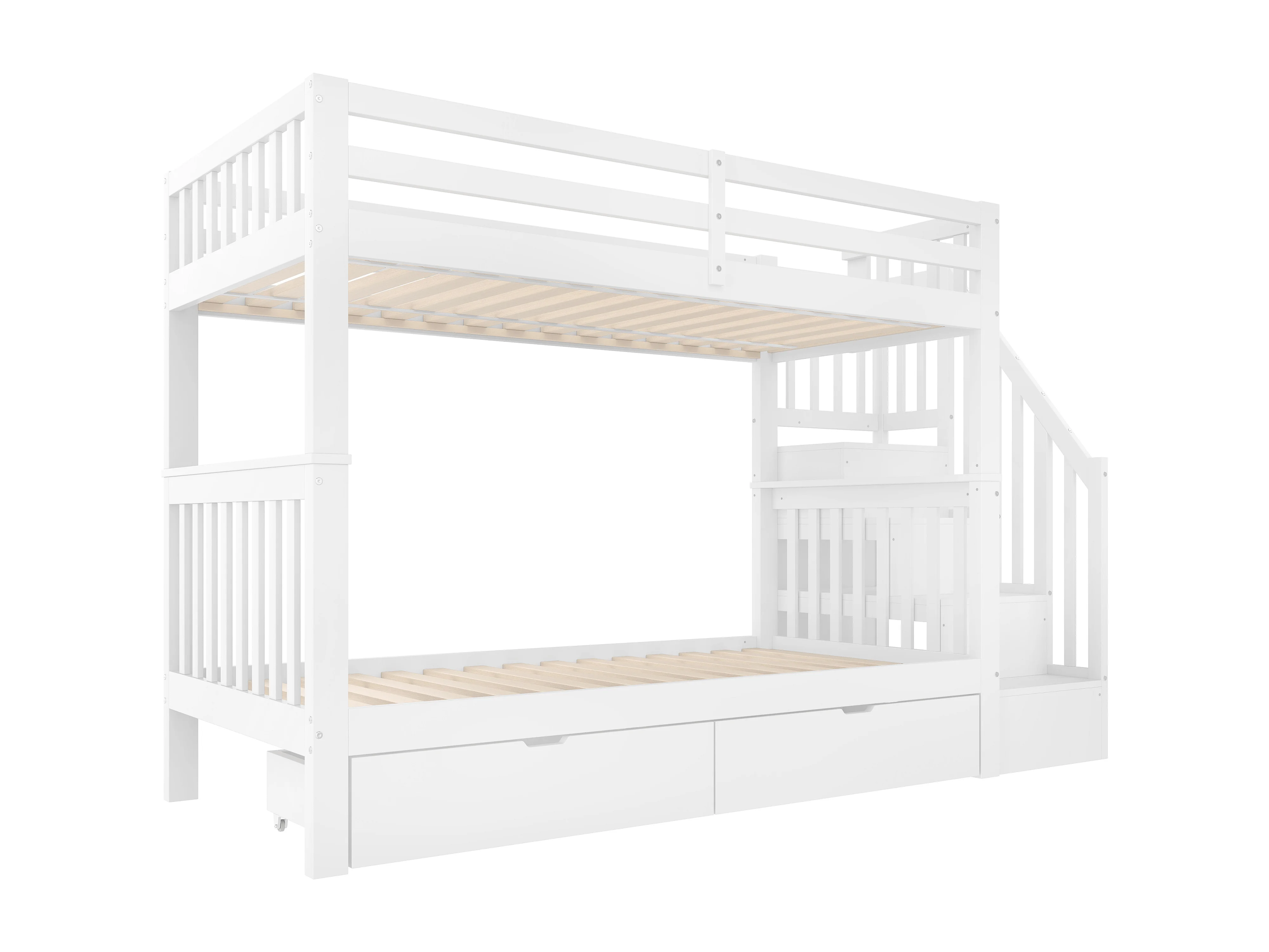 Lit superposé 90x200 cm avec sommier - protection anti-chute avec éhelle et 2 tiroirs - bois - blanc (sans matelas)