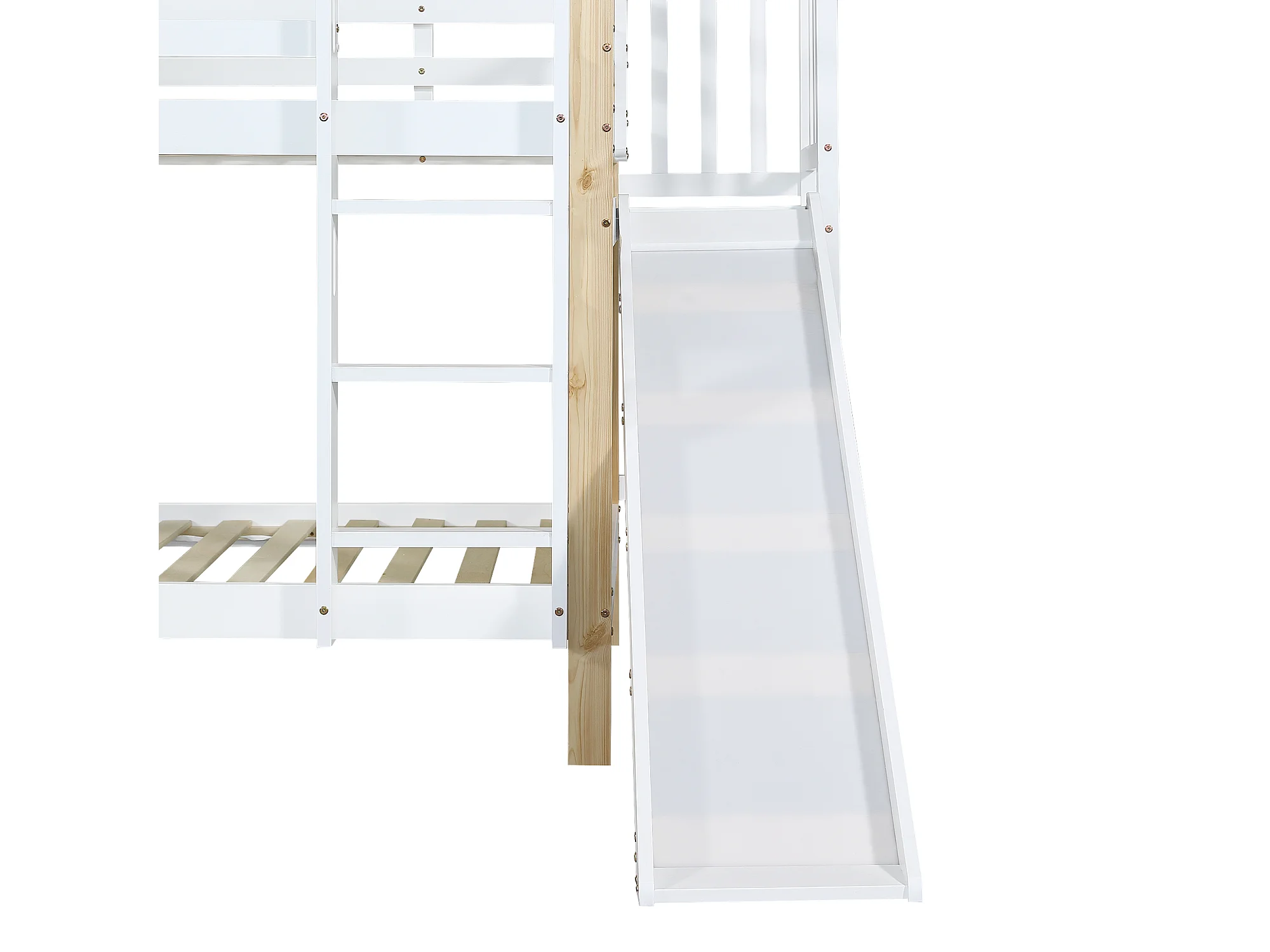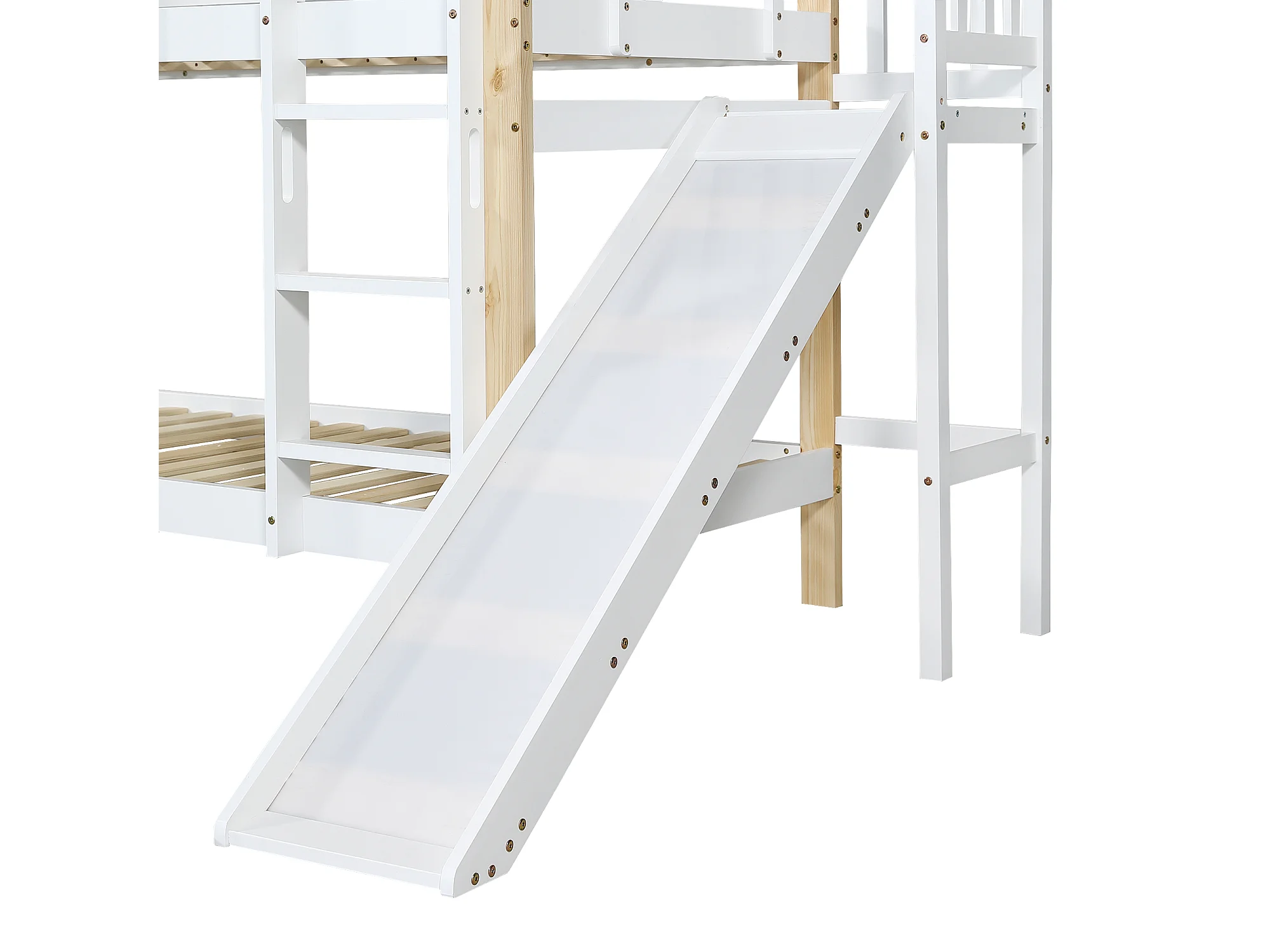 Lit superposé enfant 90x200 cm, avec toboggan, échelle sécurisée, en bois blanc et naturel, sans matelas