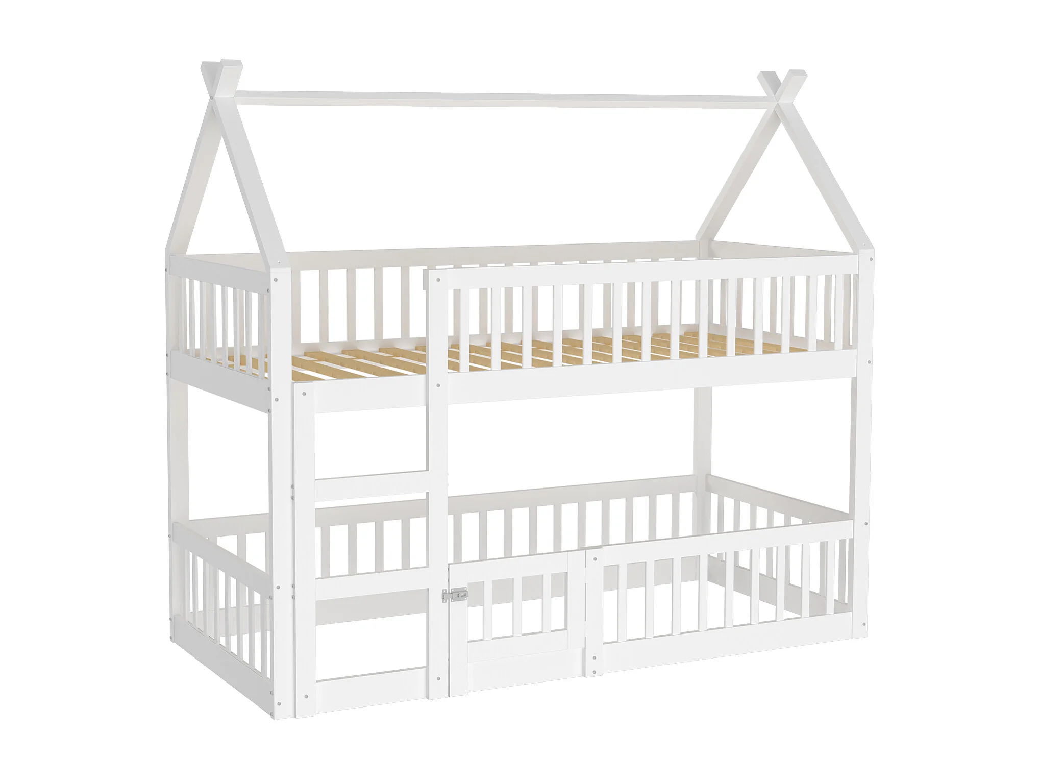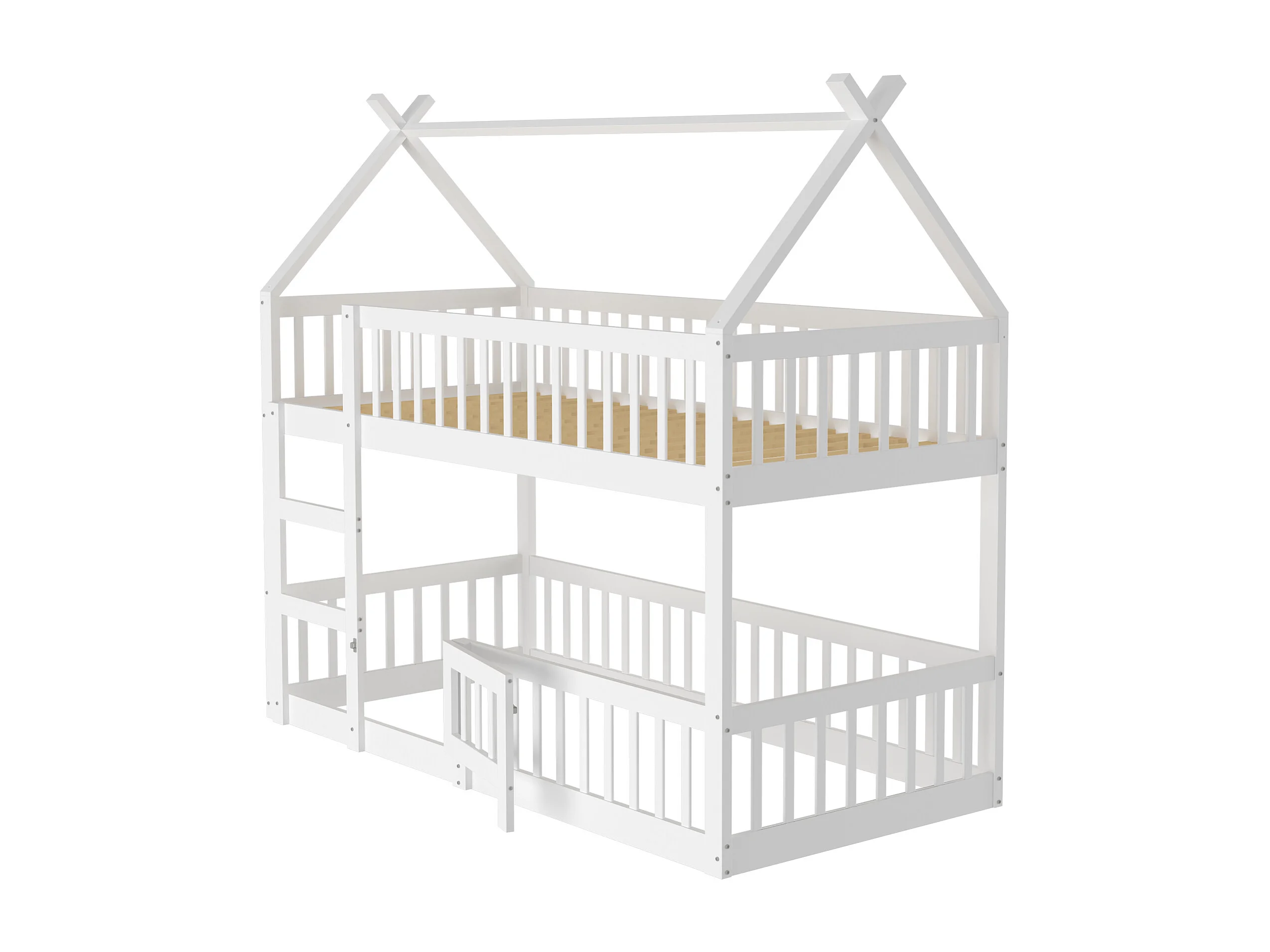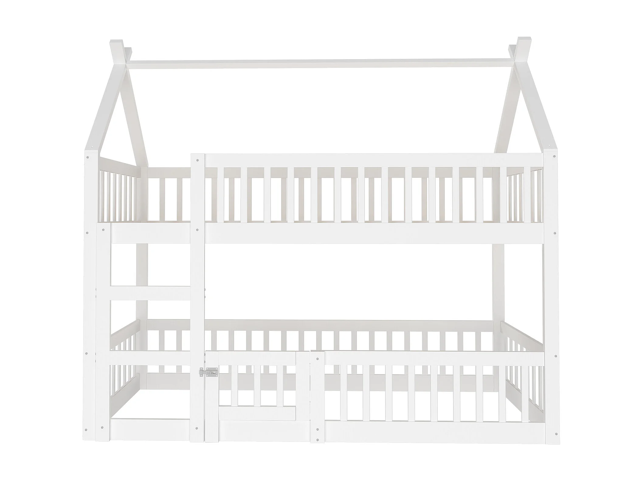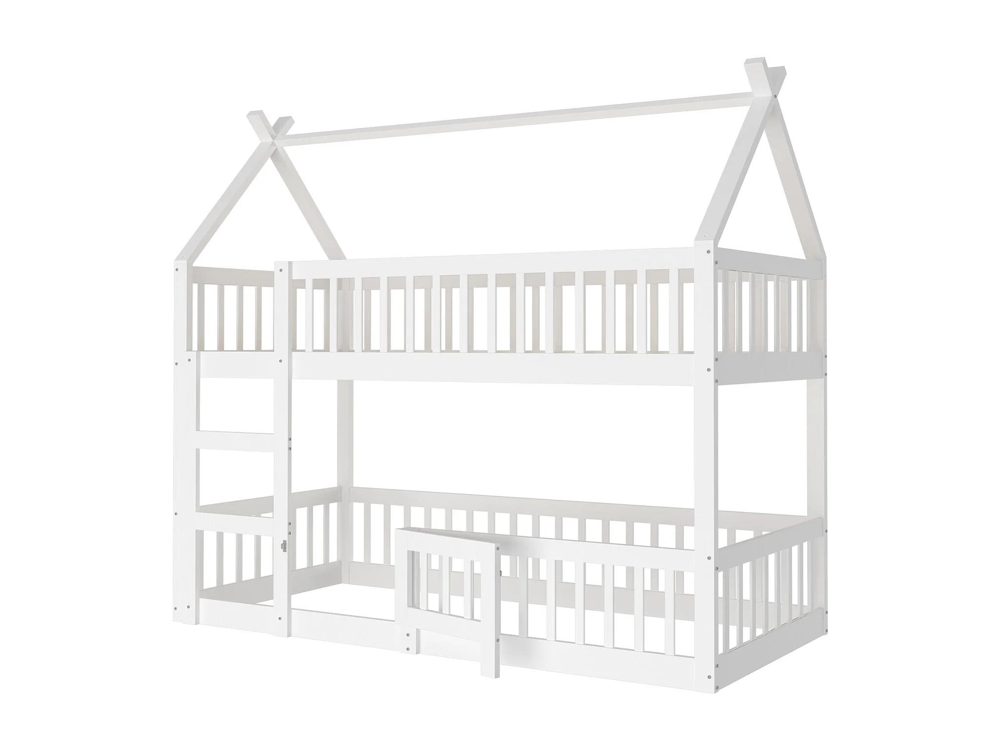 Lit superposé enfant 90x200 cm blanc, lit familial avec escalier, design loft, cadre en bois massif robuste