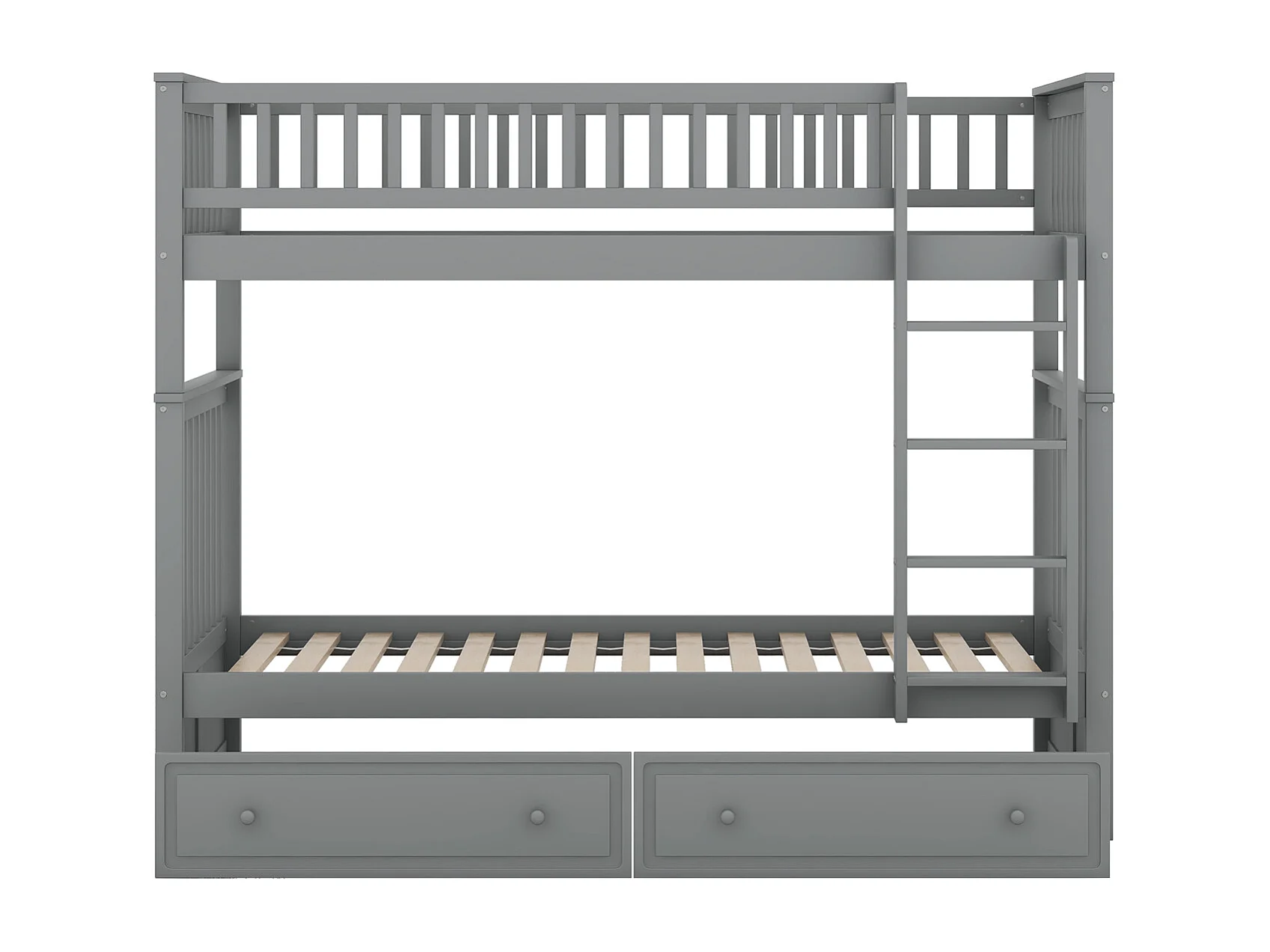 Lit superposé enfant 90x200 cm gris – 2 tiroirs, convertible 2 couchages