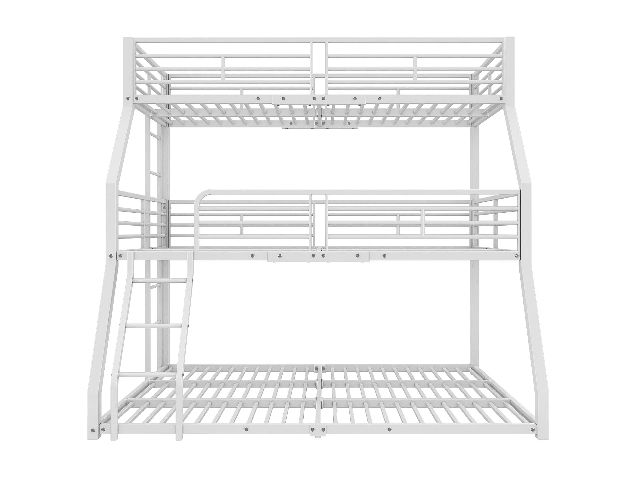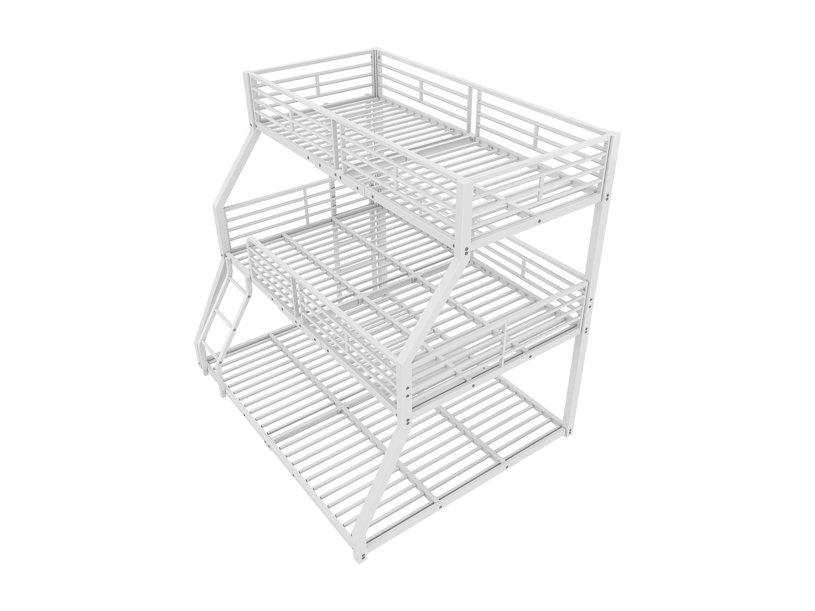 Lit superposé enfant, 90x200cm, 120x200cm et 140x200cm, style simple, 3 sommiers, métal blanc, sans matelas