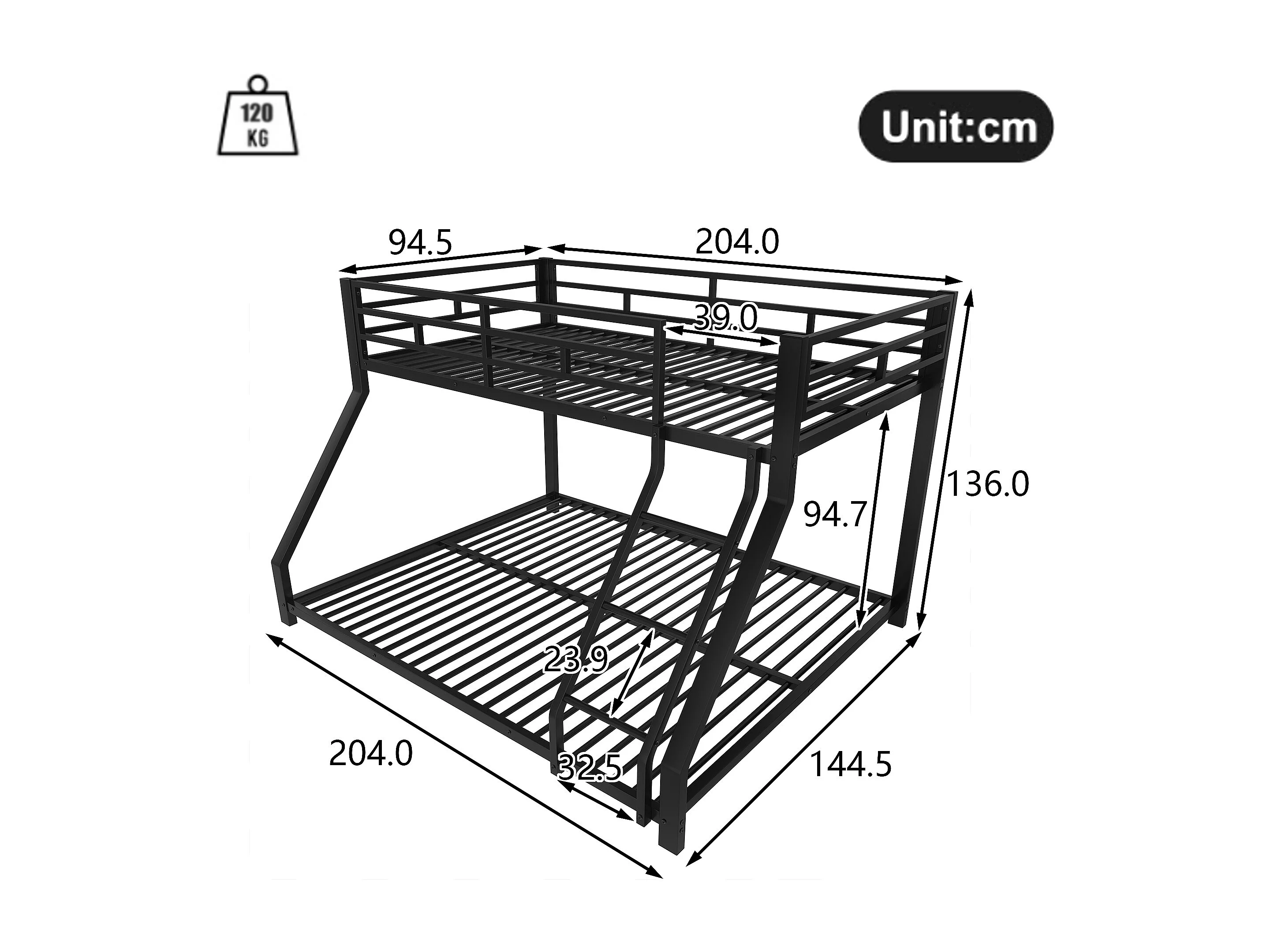 Lit superposé enfant 90x200cm + 140x200cm - lit métal noir - Barrière et Escalier - sans matels