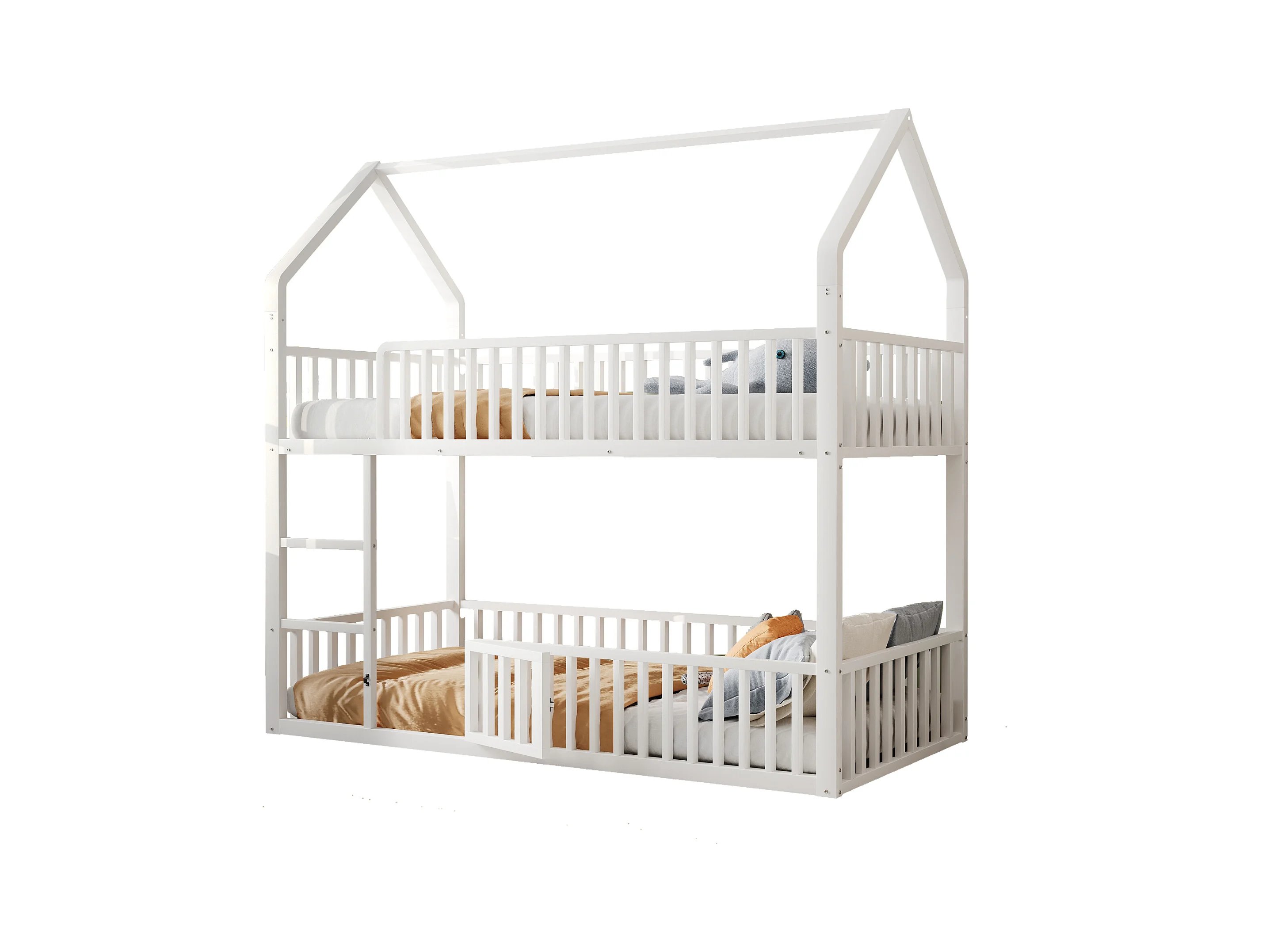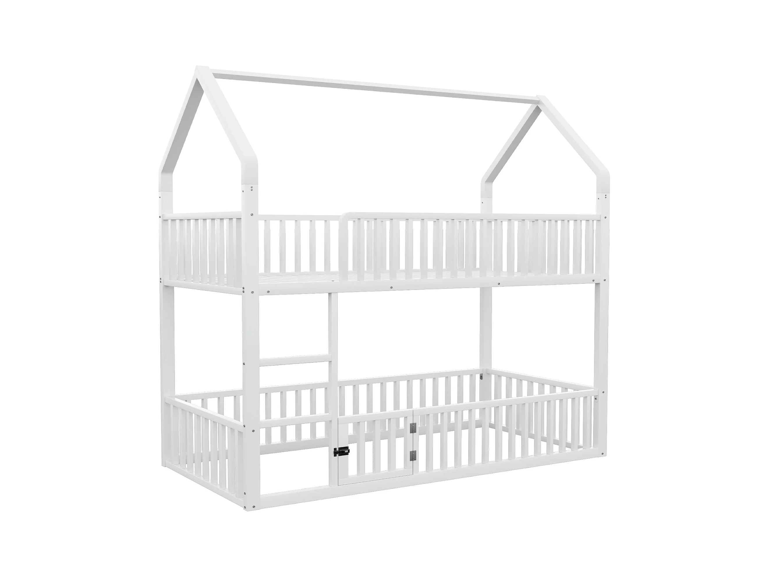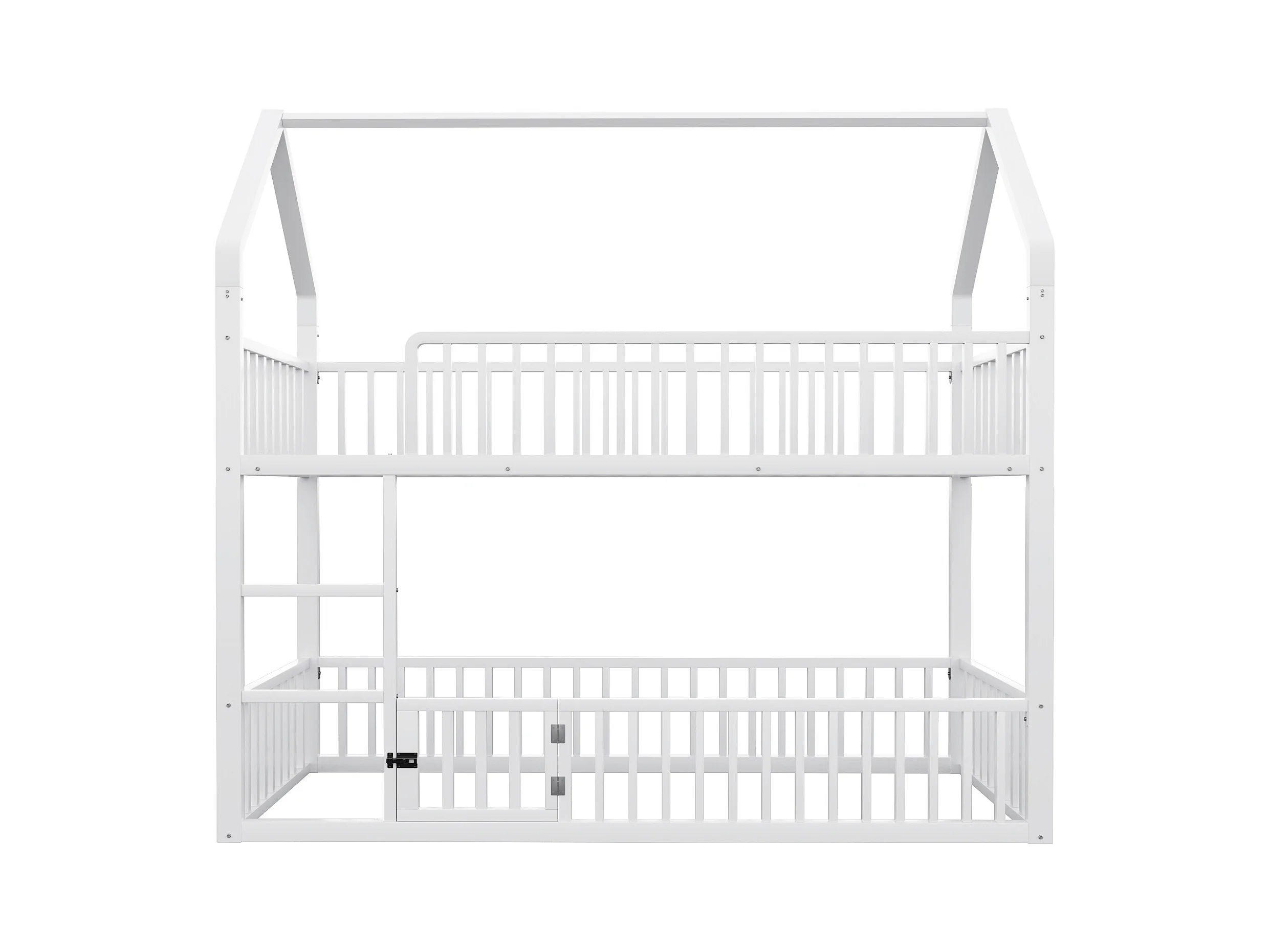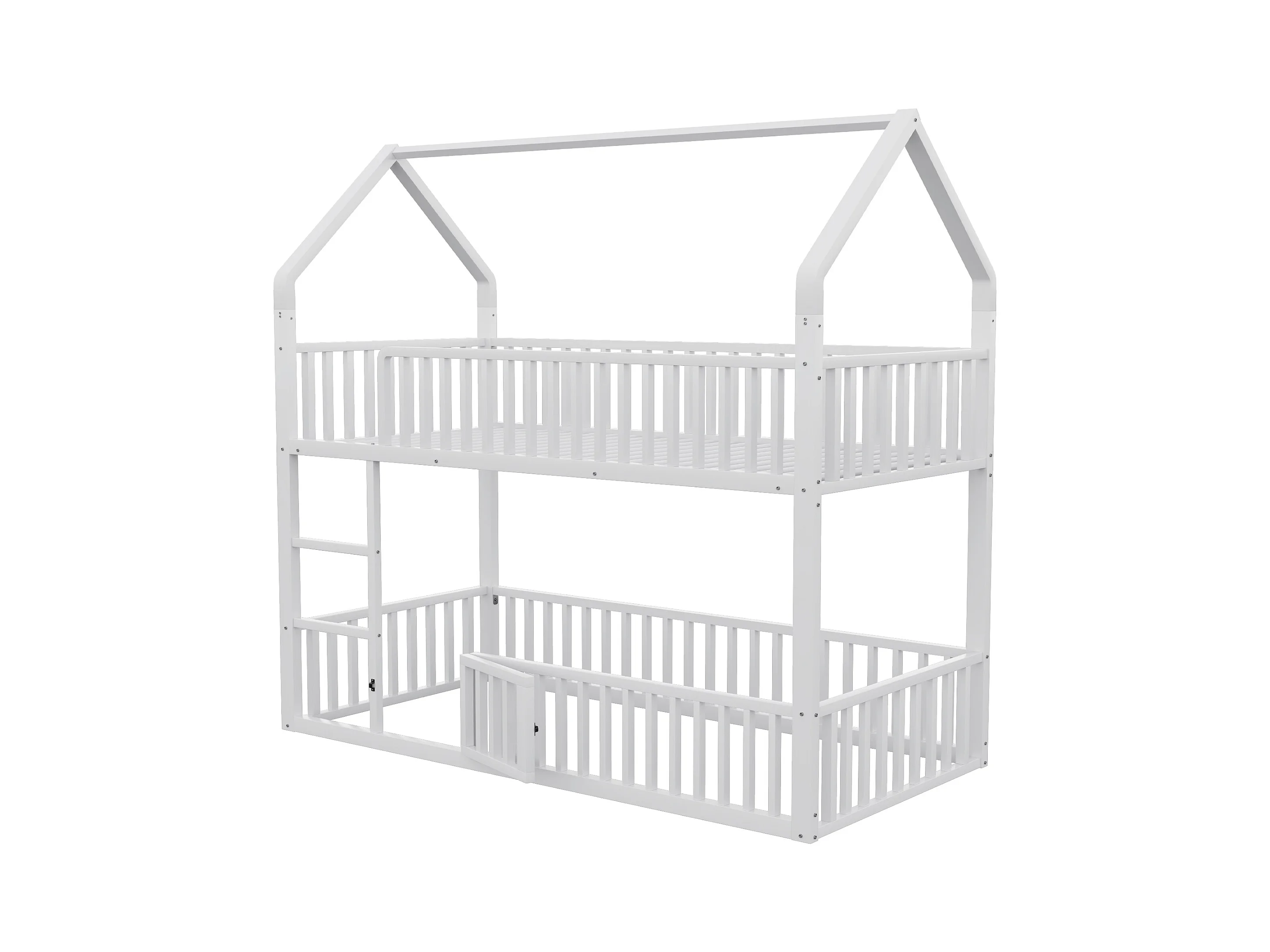 Lit superposé enfant 90x200cm - avec escalier - avec petite porte - Métal - blanc (matelas non inclus)