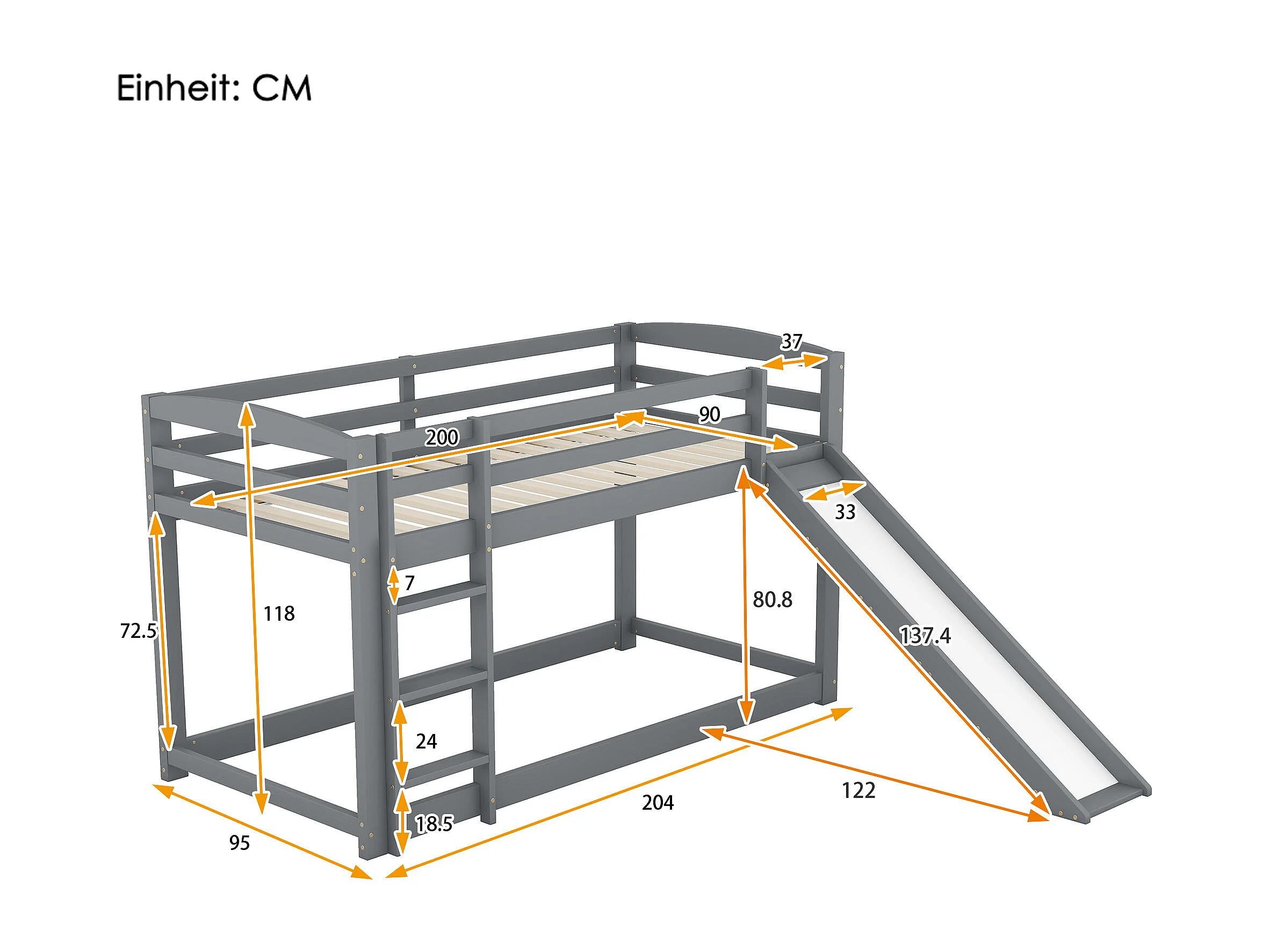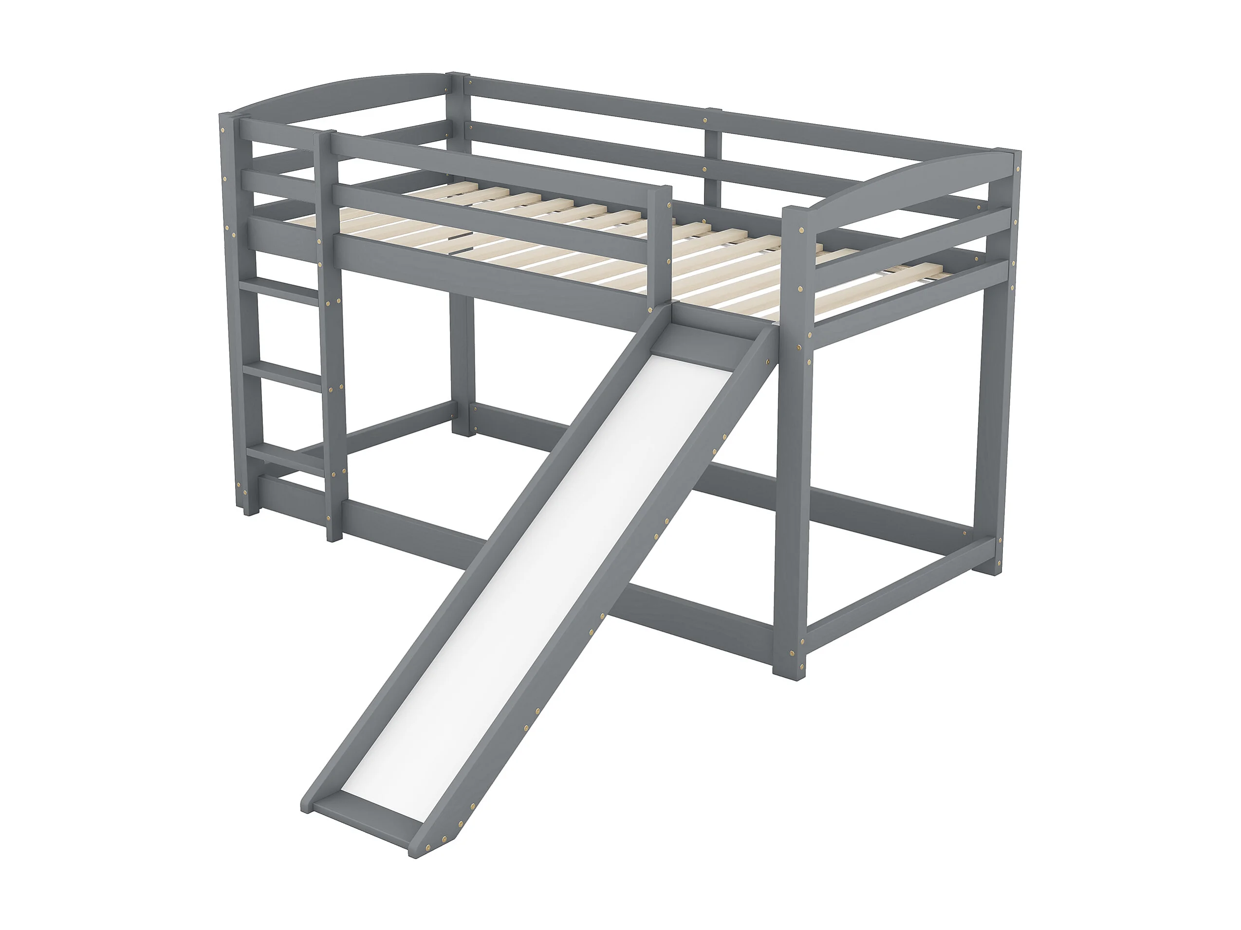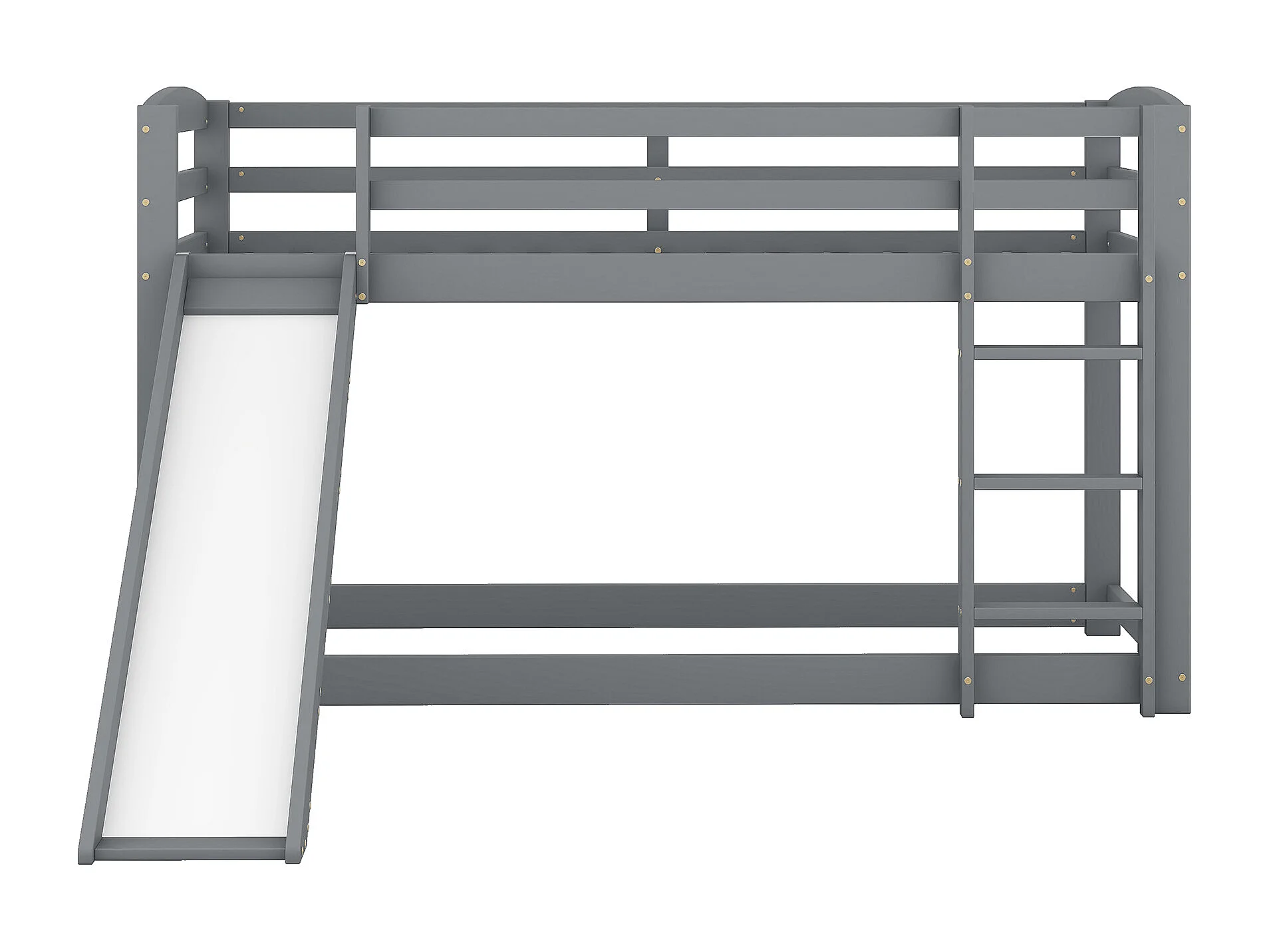 Lit superposé enfant 90x200cm avec toboggan - Bois en pin et MDF - Gris