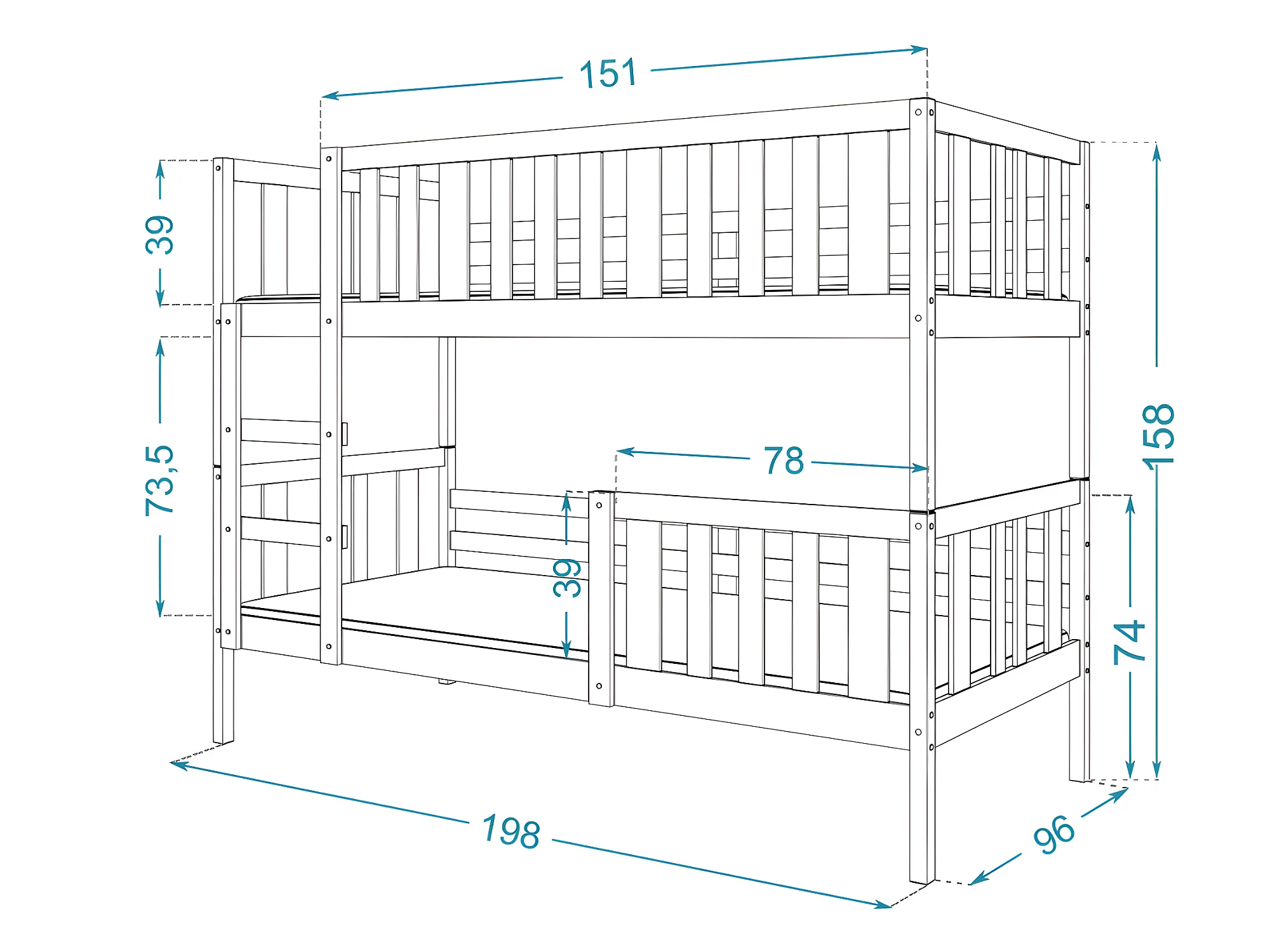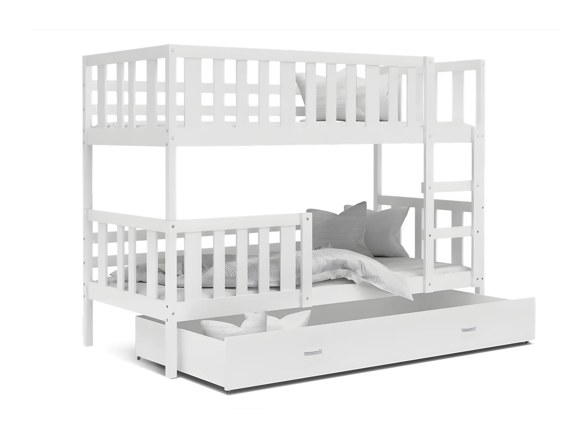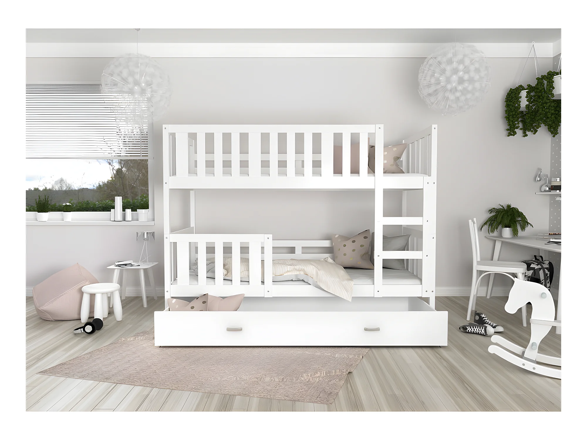 Lit superposé enfant NEMO 90X190 cm - 2 Sommiers et Tiroir inclus Blanc