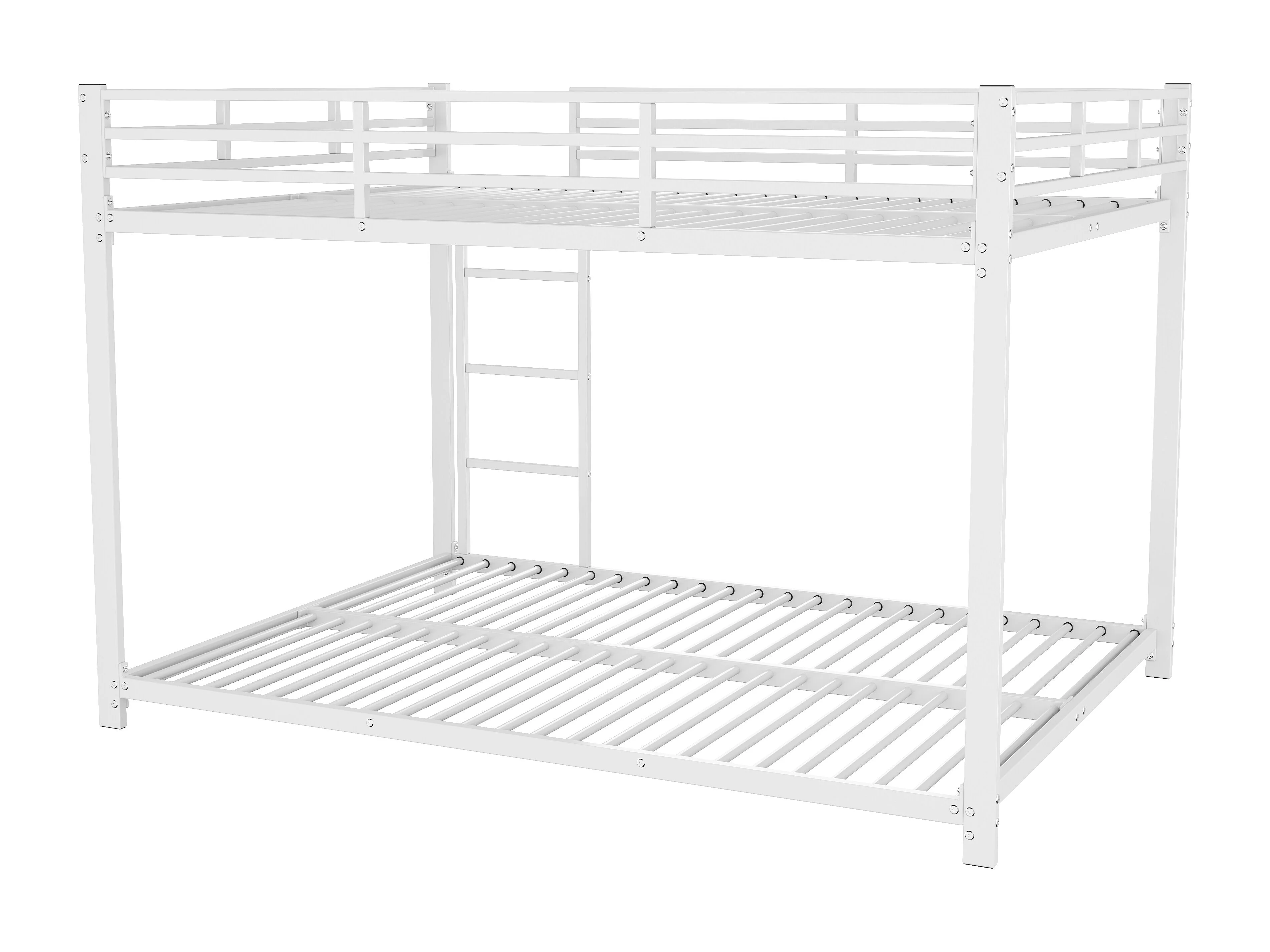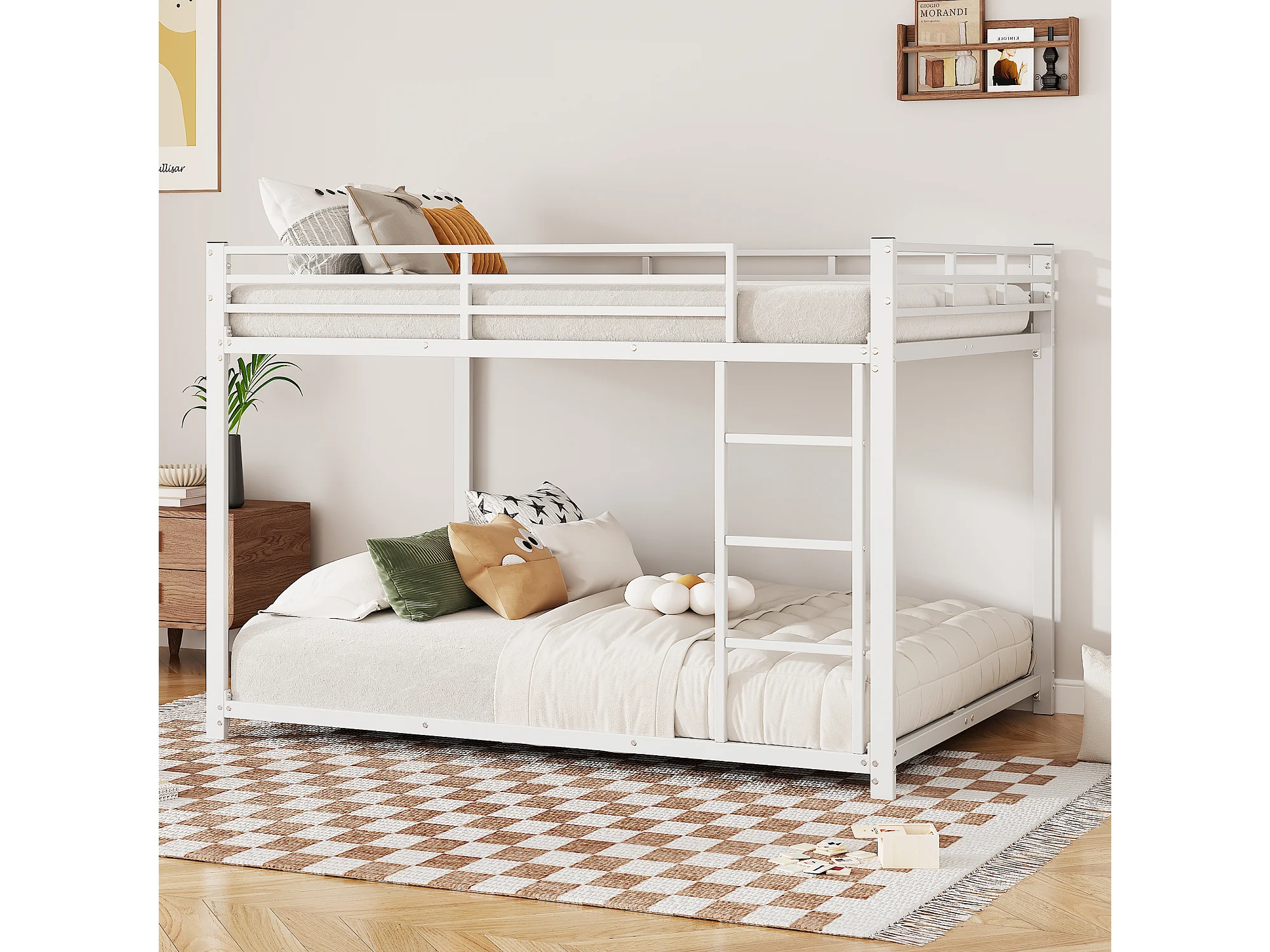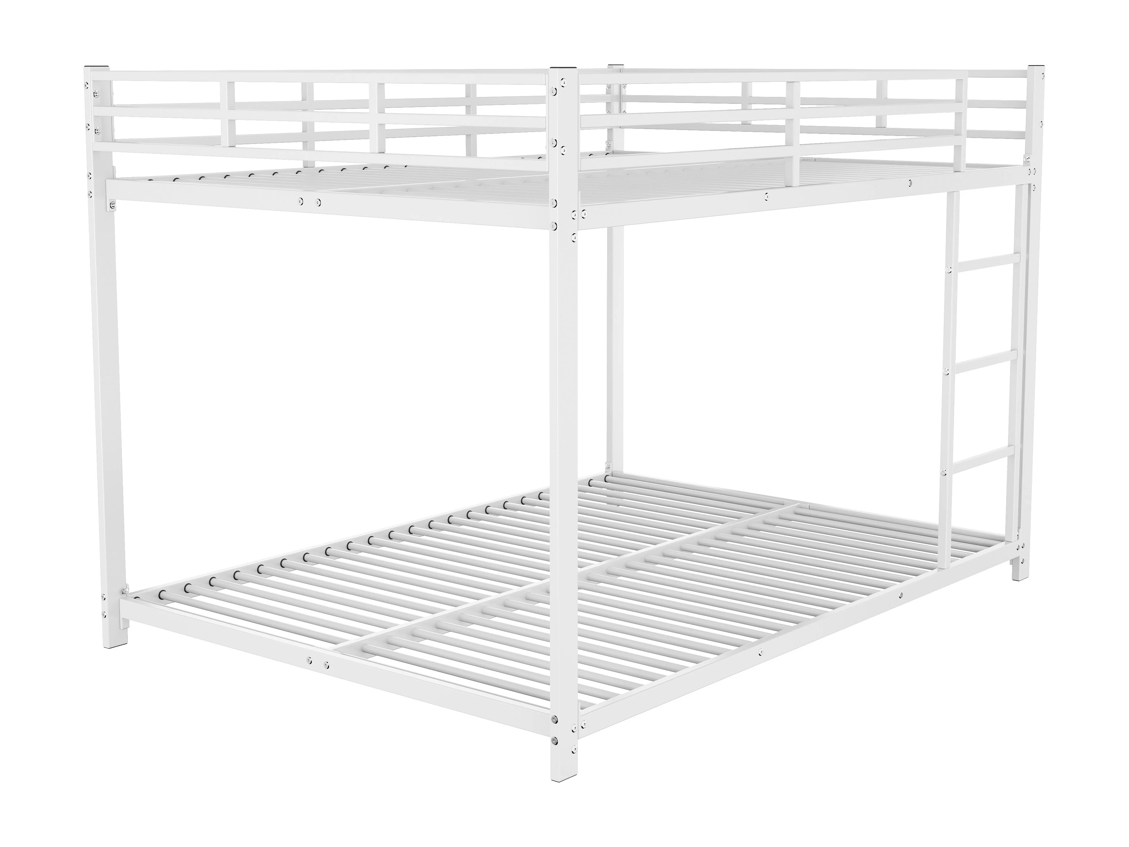 lit superposé enfants 140x200 cm avec échelle, 2 sommiers, forme classique, fer blanc, sans matelas