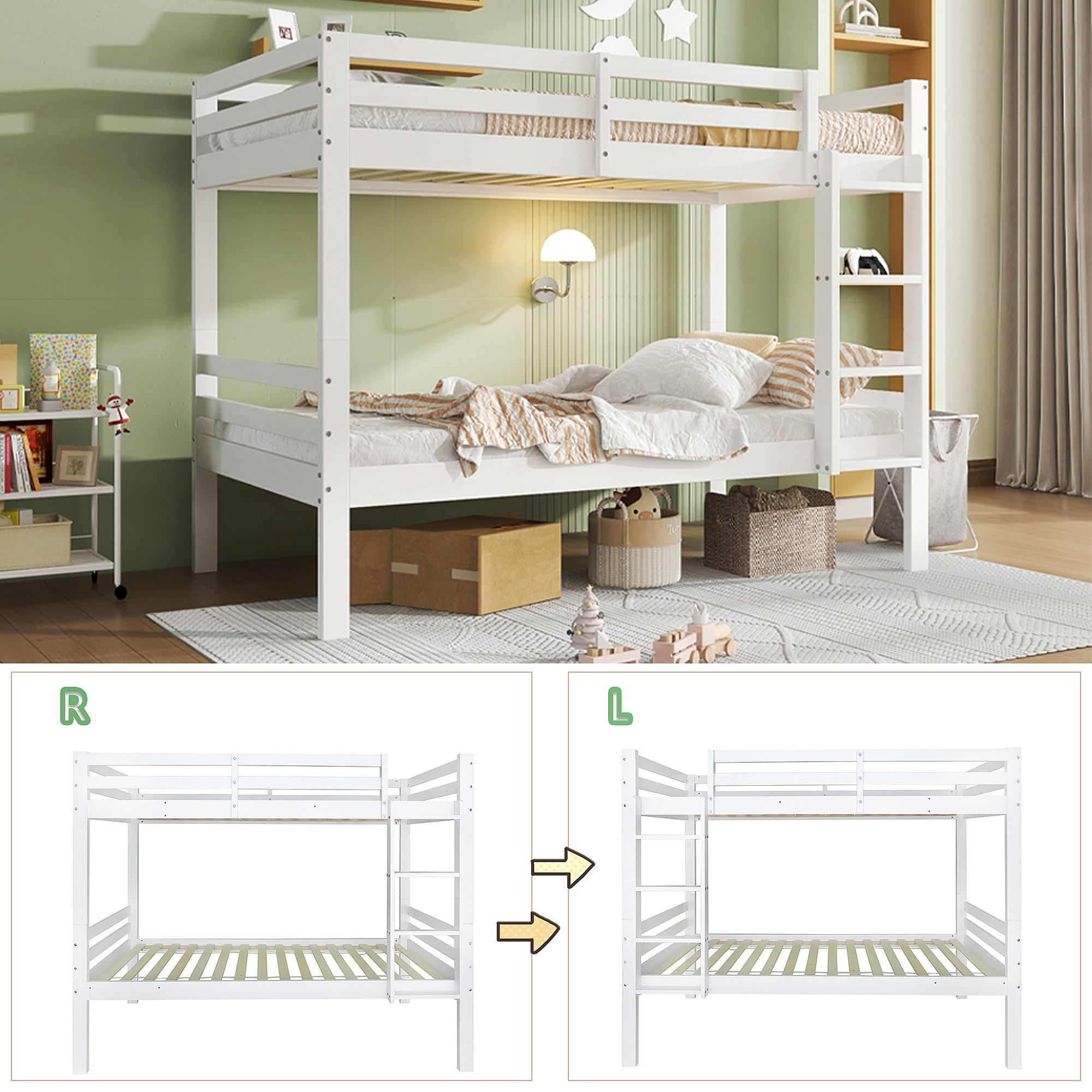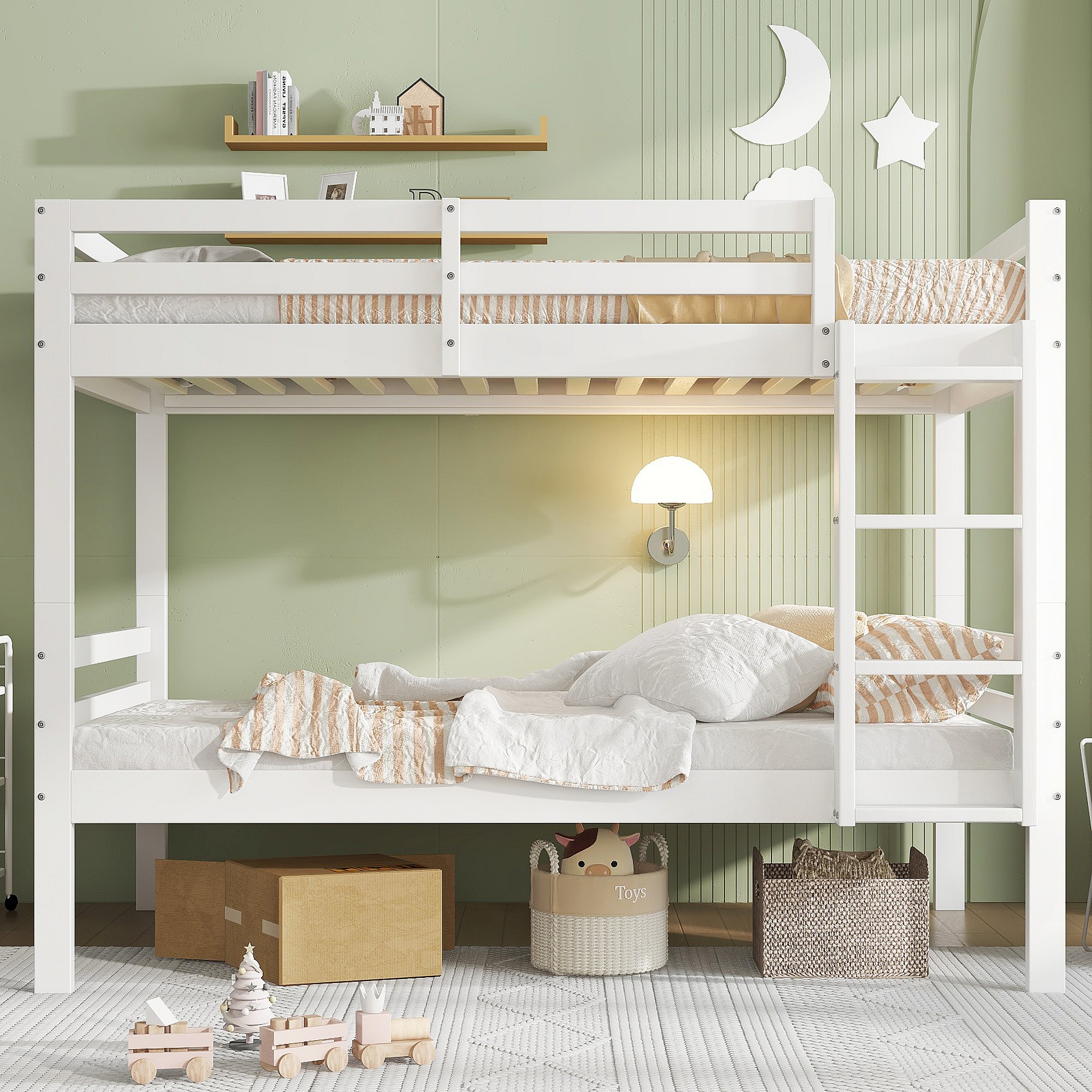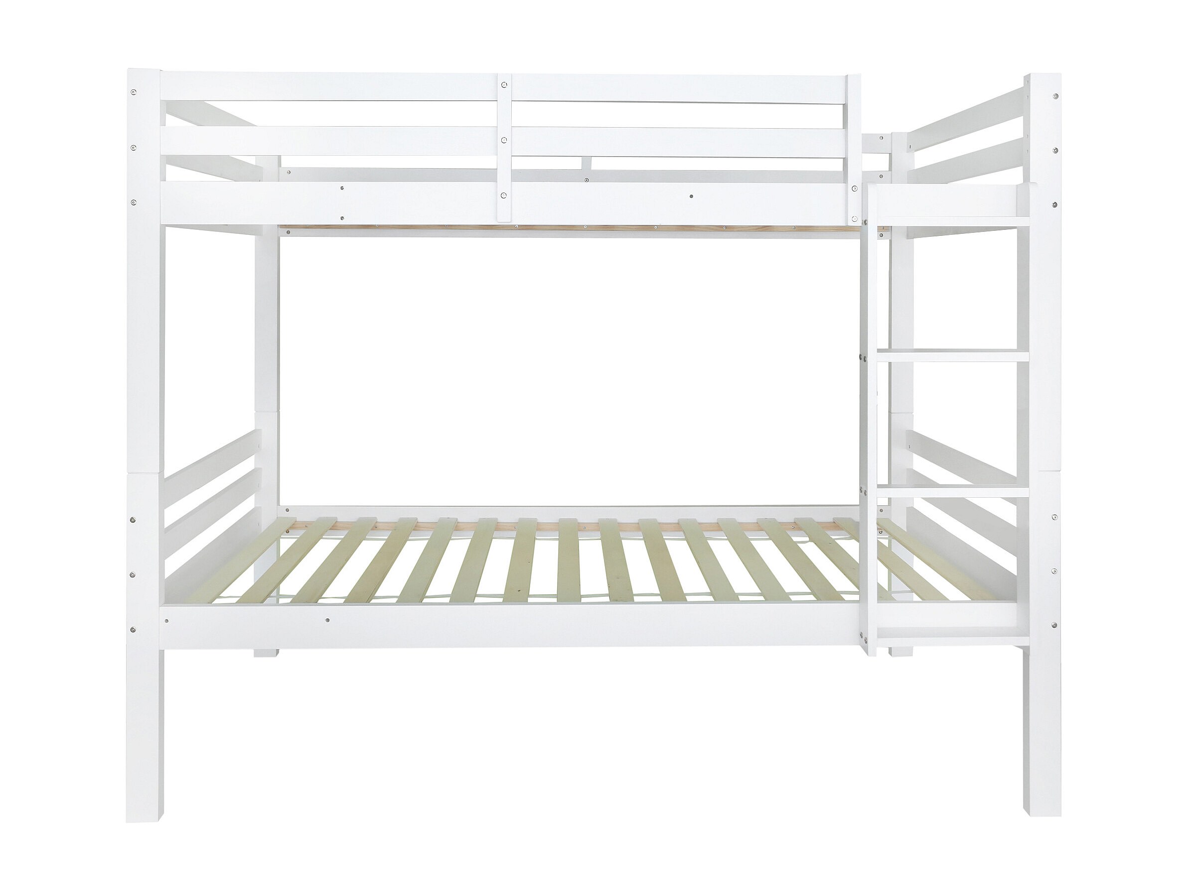 Lit superposé enfants, avec échelle angulaire, protection anti-chutes, 2 lits simples, cadre pin, blanc.