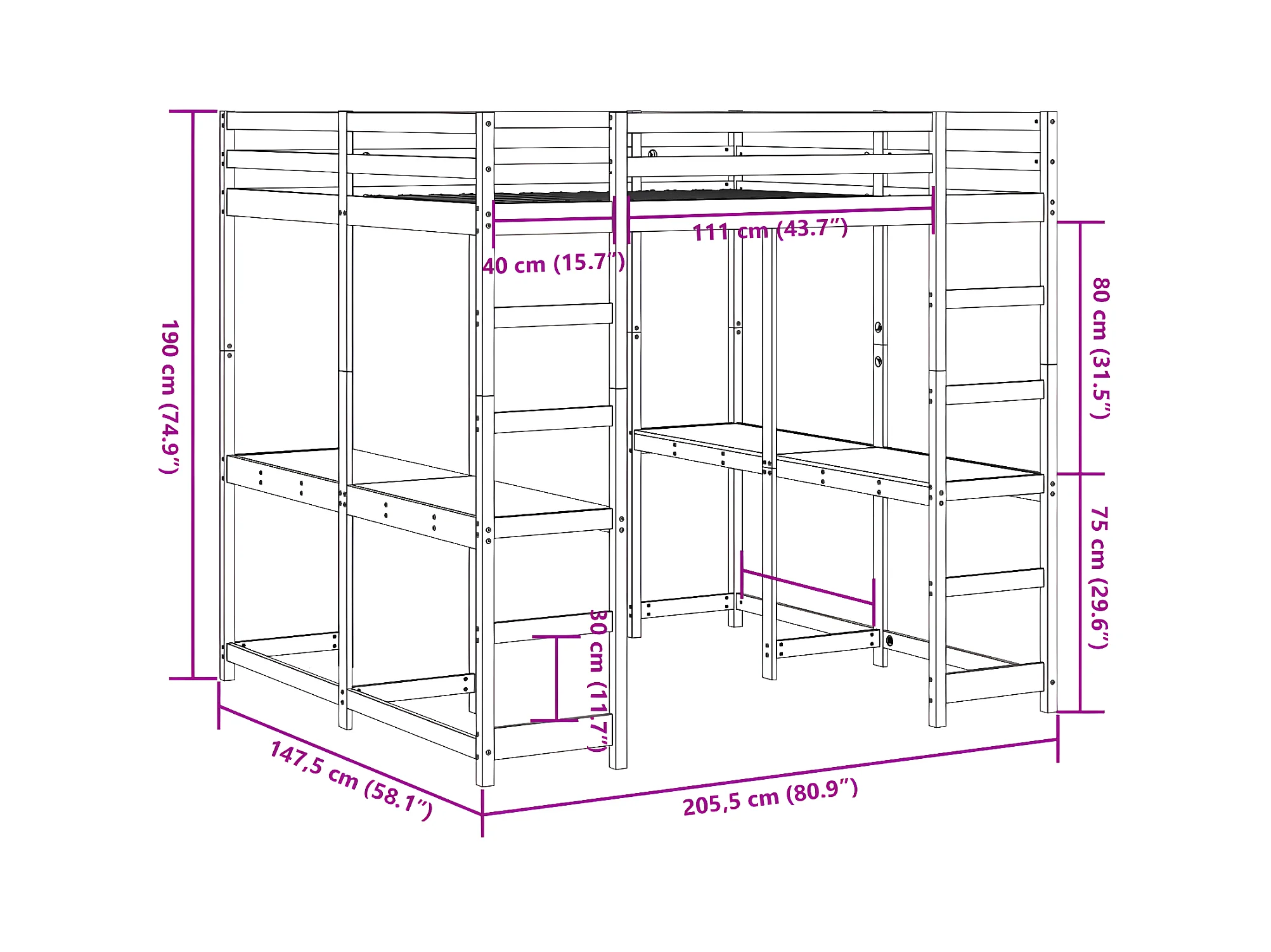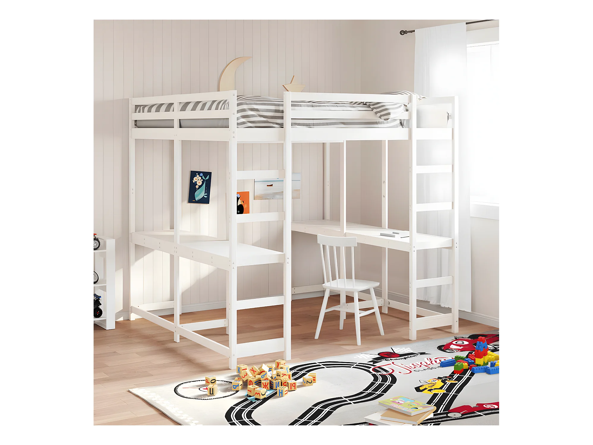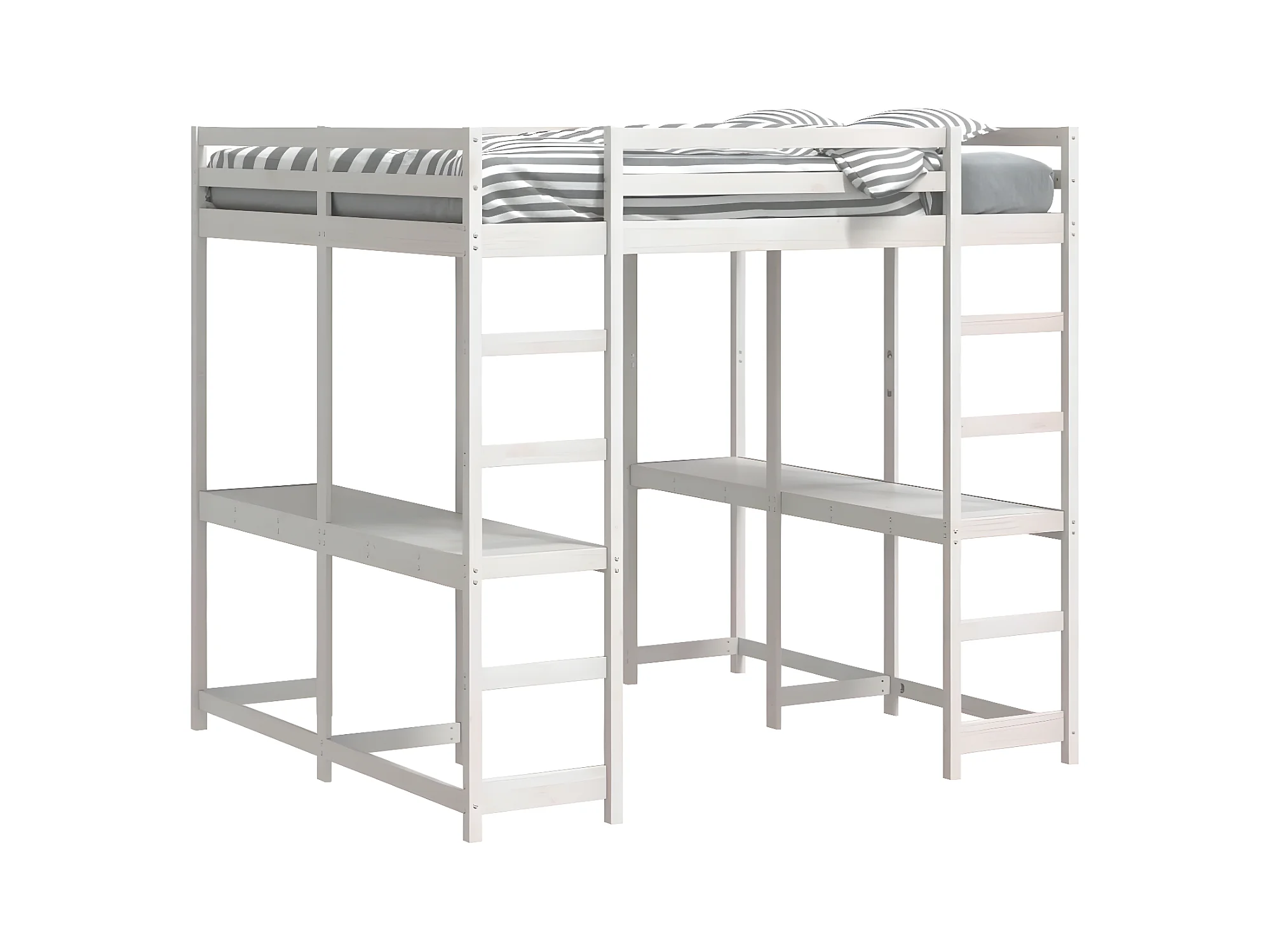 Lit superposé et bureau et échelle 140x200cm bois de pin massif