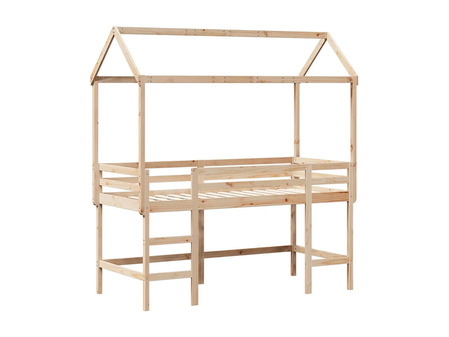 Lit superposé et échelle et toit 80x200 cm bois de pin massif