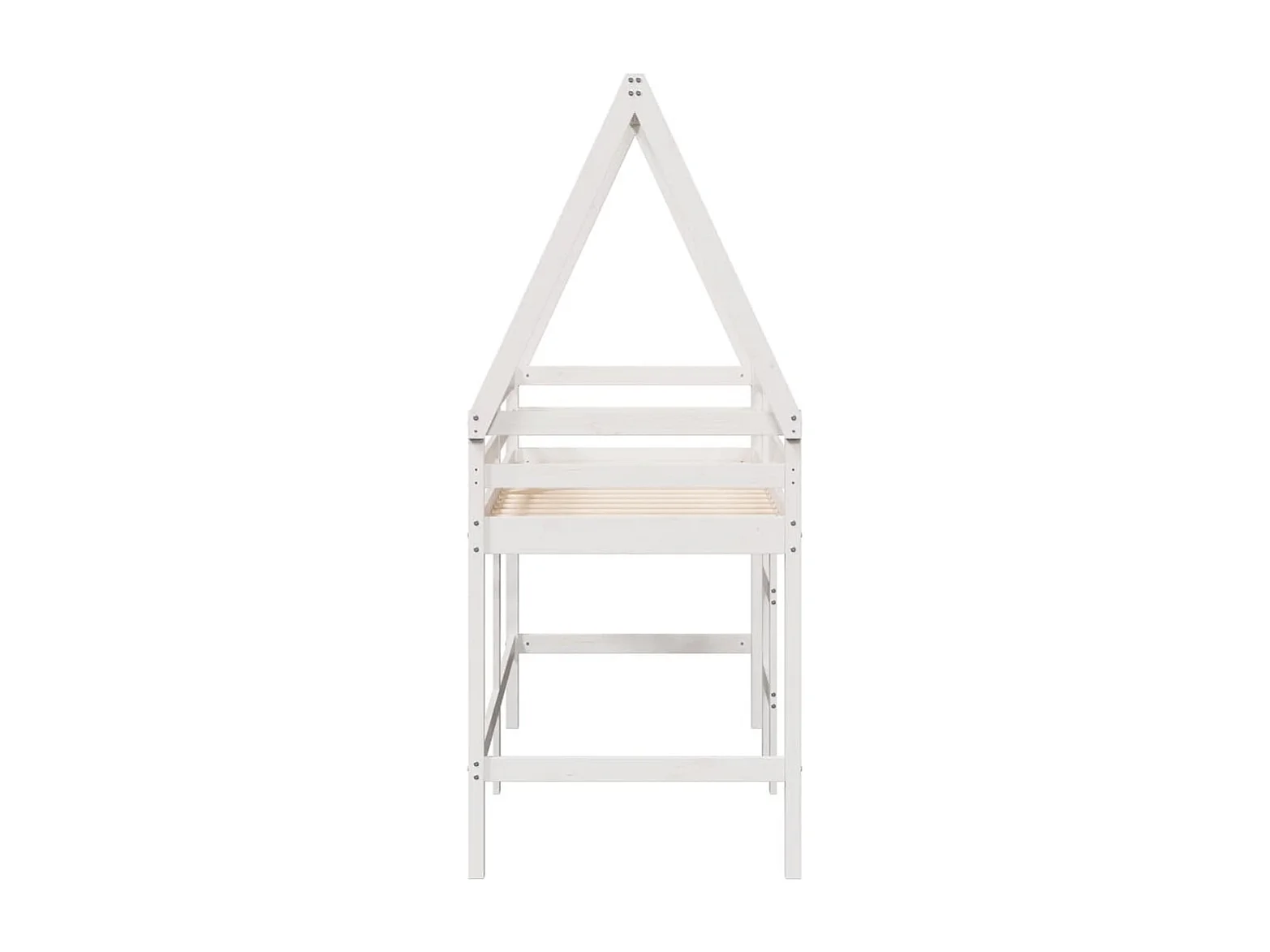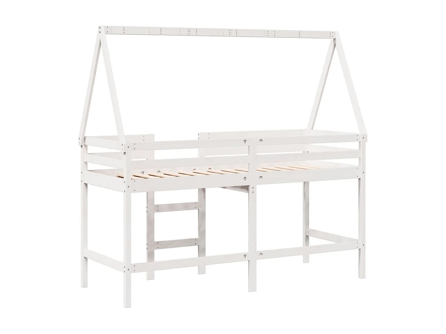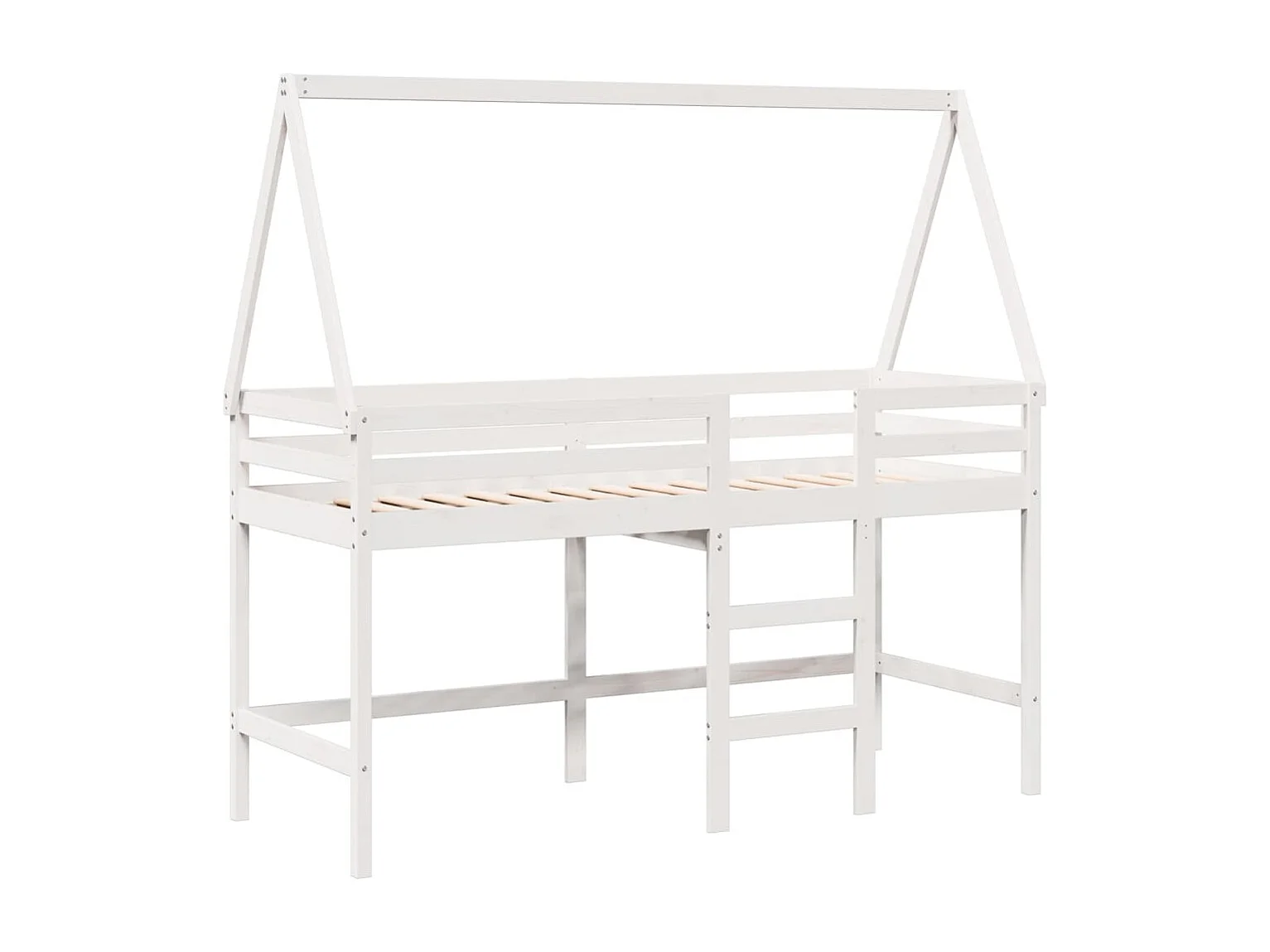 Lit superposé et échelle et toit blanc 90x200cm bois pin massif