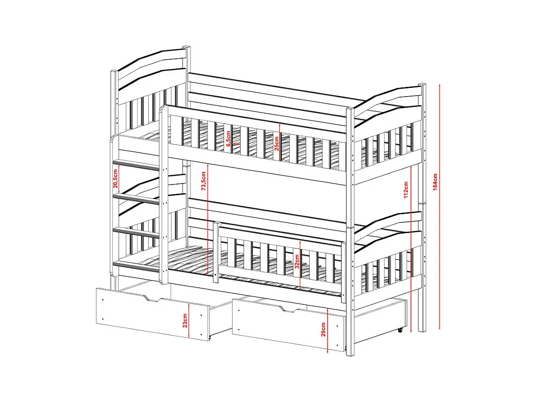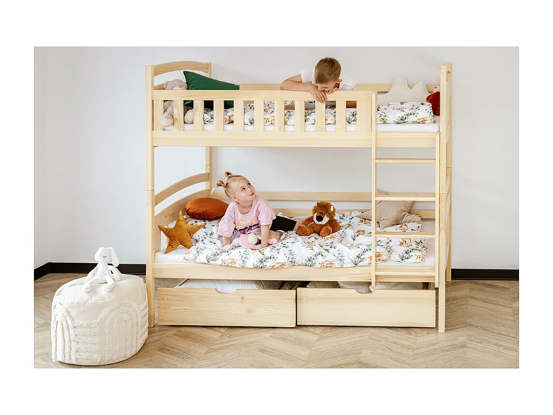 Lit Superposé PILA 90x200 Pin Livré avec le sommiers et tiroir.