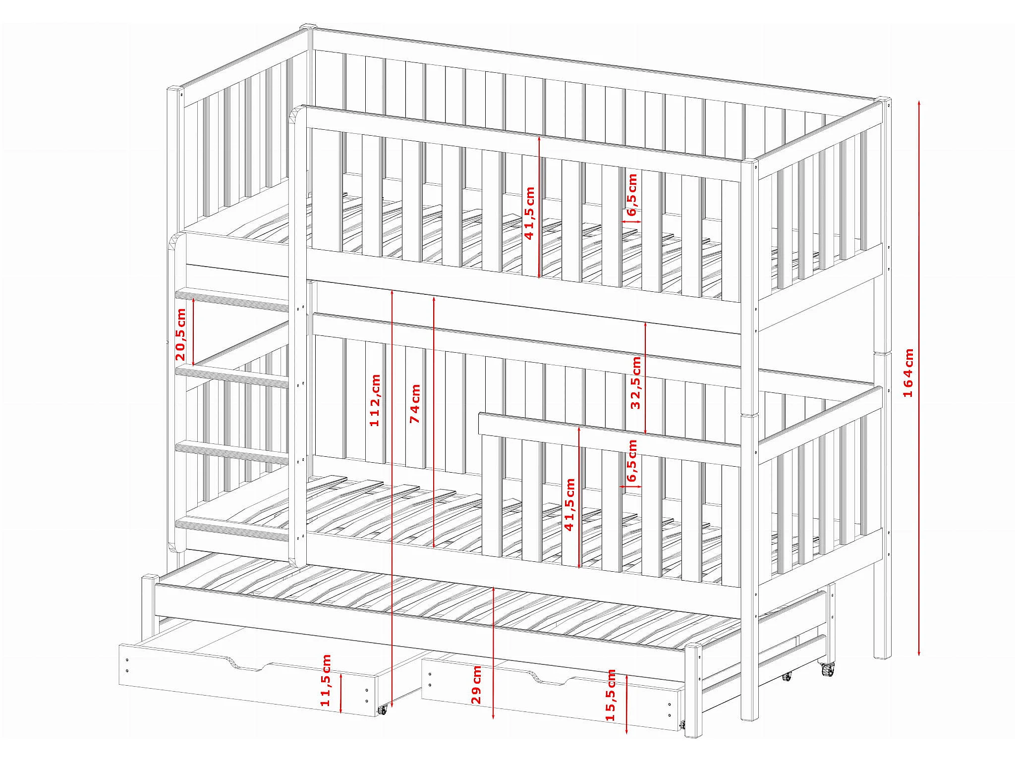 Lit superposé Lea 90x190 Gris