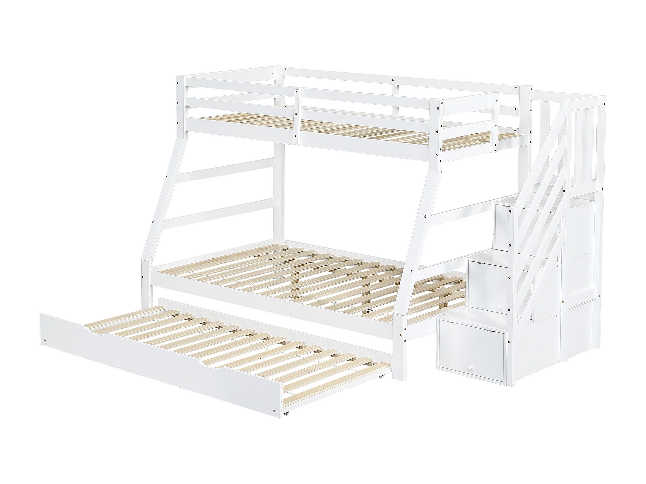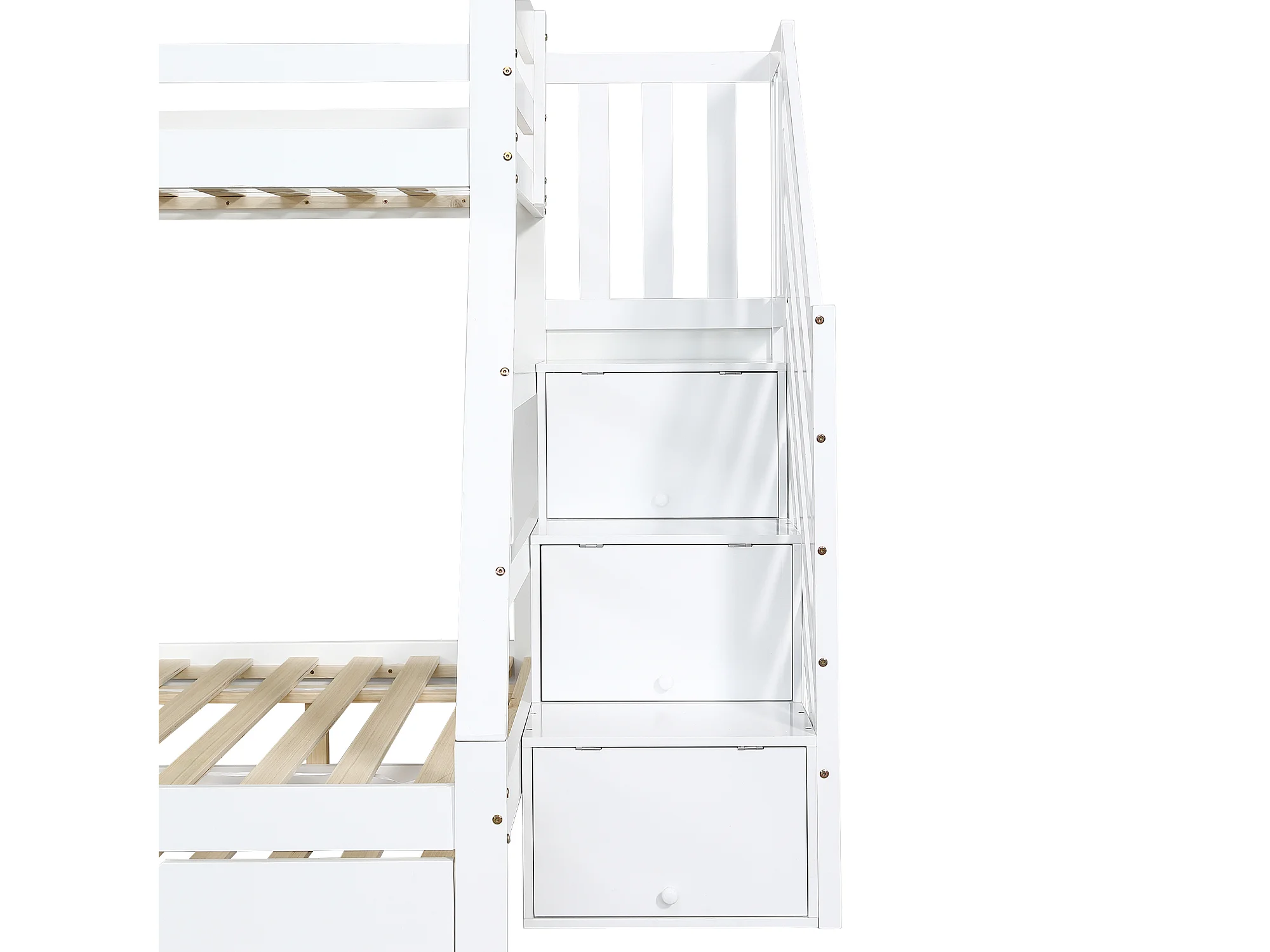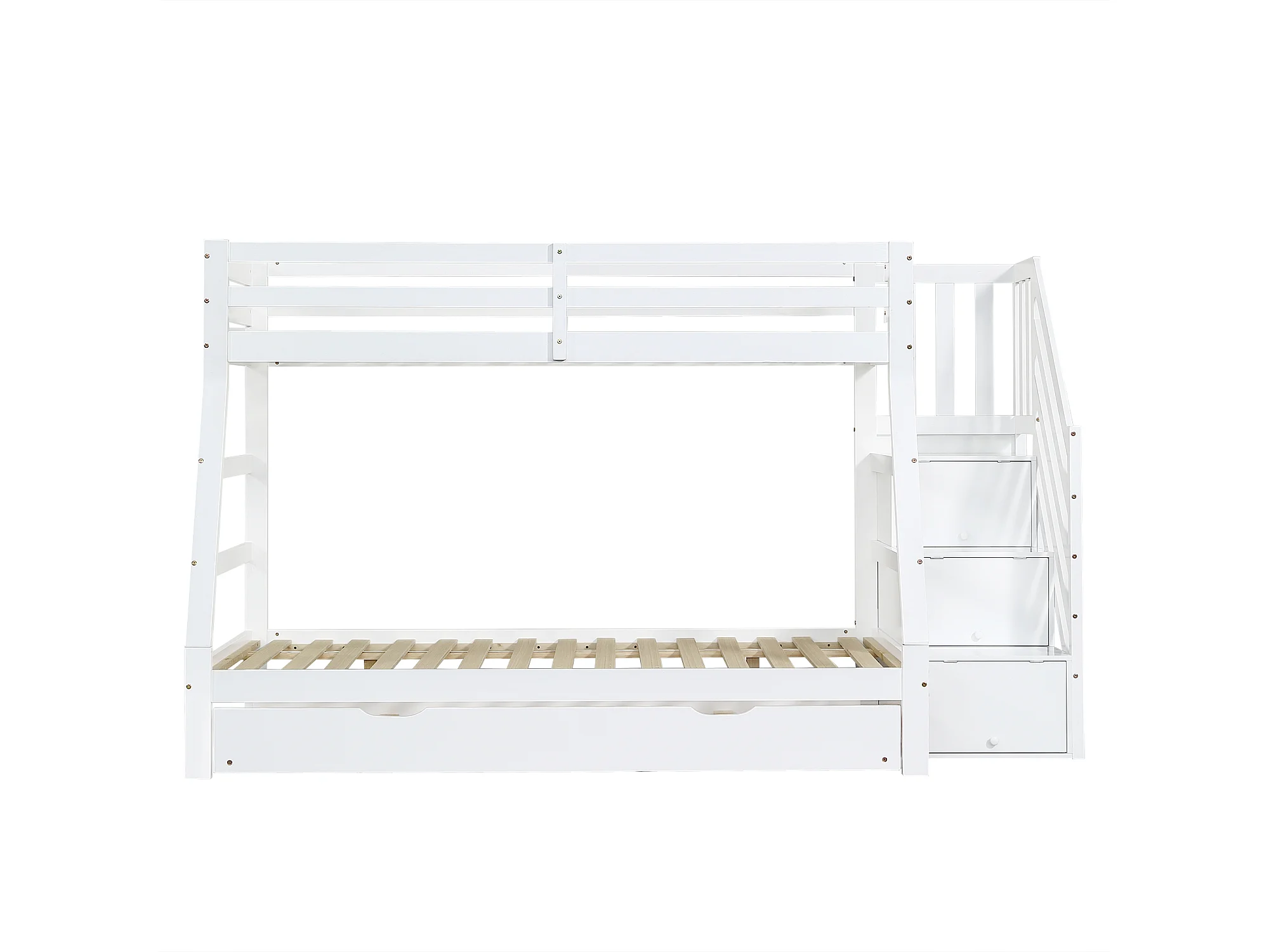 Lit superposé lit gigogne, 90x190cm et 90/120x200 cm, avec echelle de rangement, bois blanc, sans matelas