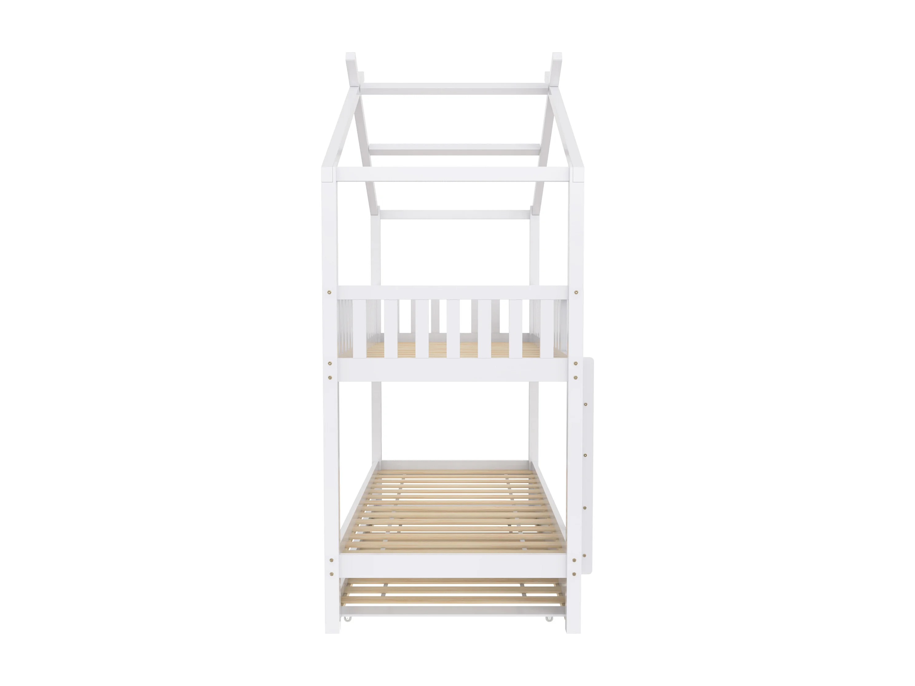 Lit superposé lit gigogne 90x200 cm, avec barrières de sécurité et échelle, finition bois blanc, sans matelas