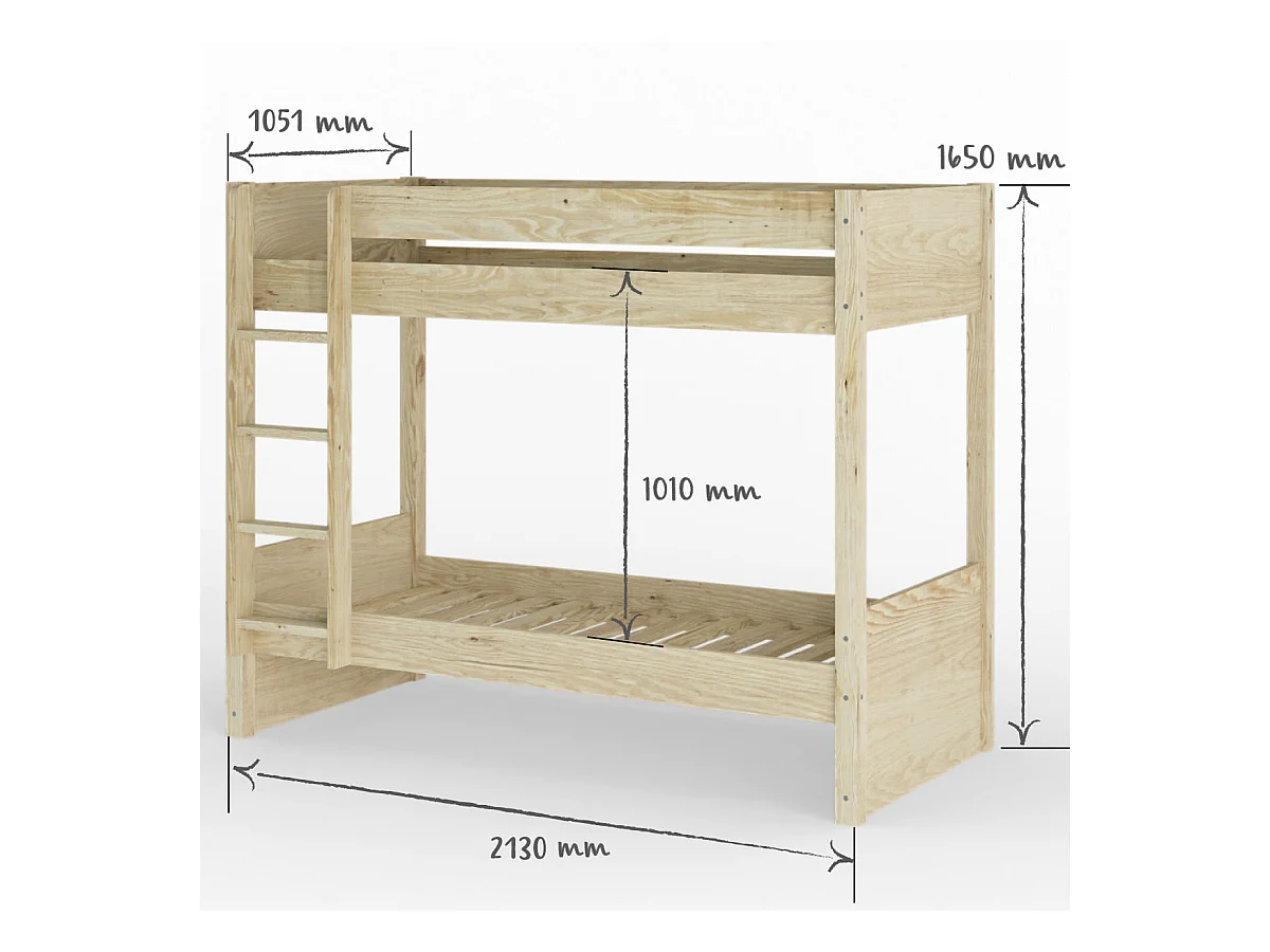 Lit superposé 90x200 cm bois massif blanc LUCIA