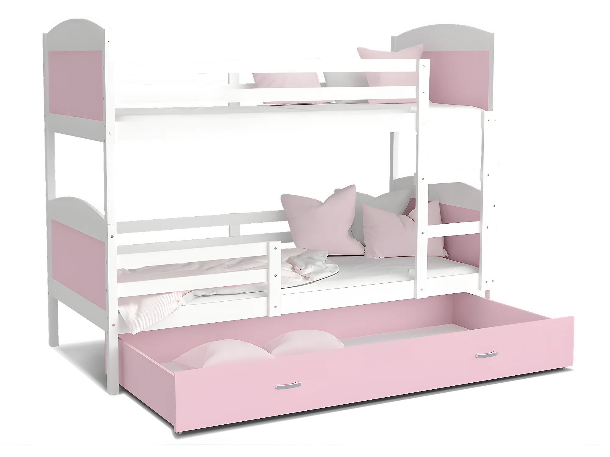 Lit Superposé Mateo 90x190 Blanc - rose Livré avec sommiers, tiroir et matelas en mousse de 7cm