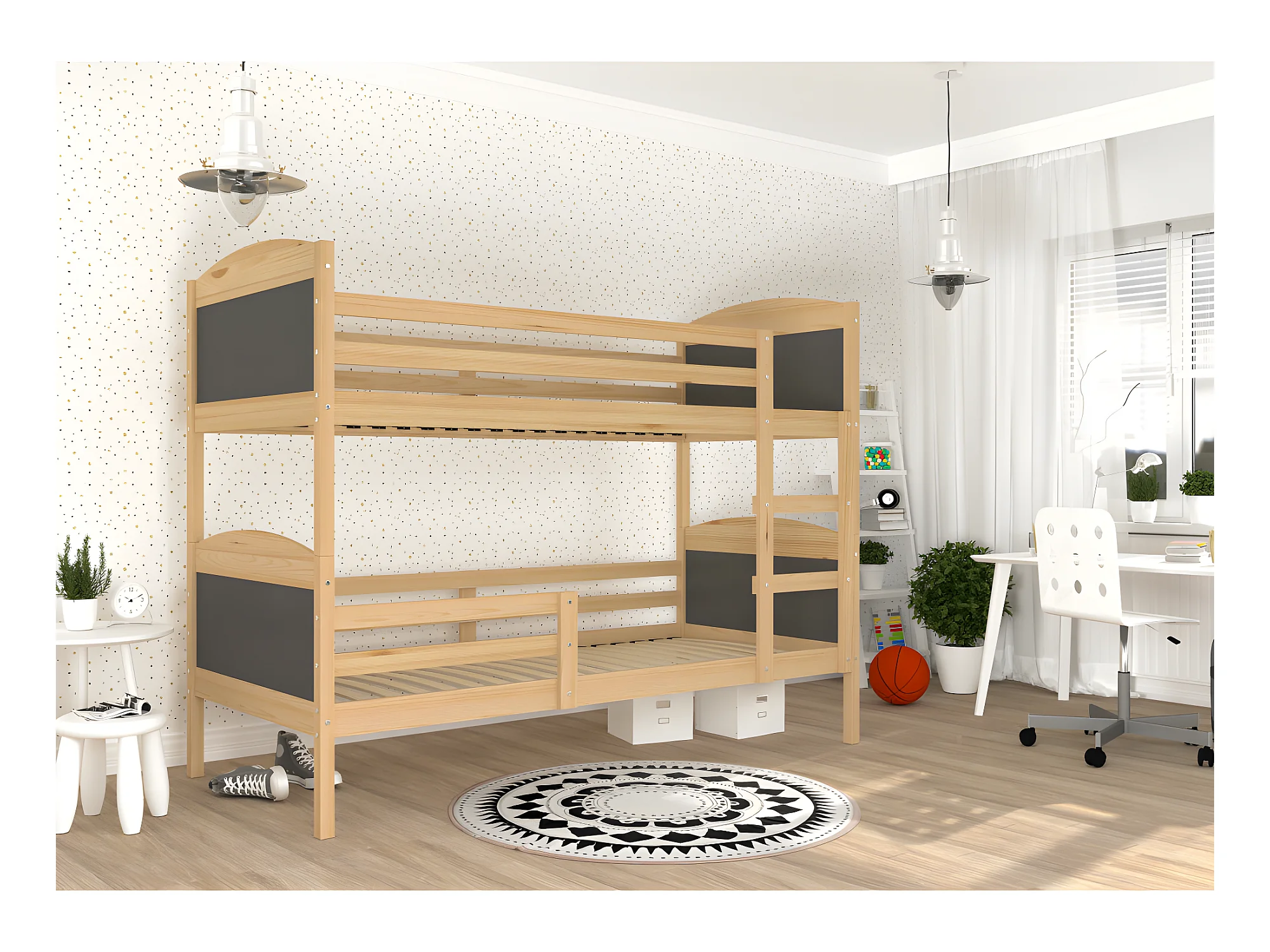 Lit Superposé Mati 90x190 Pin - gris Livré avec sommiers