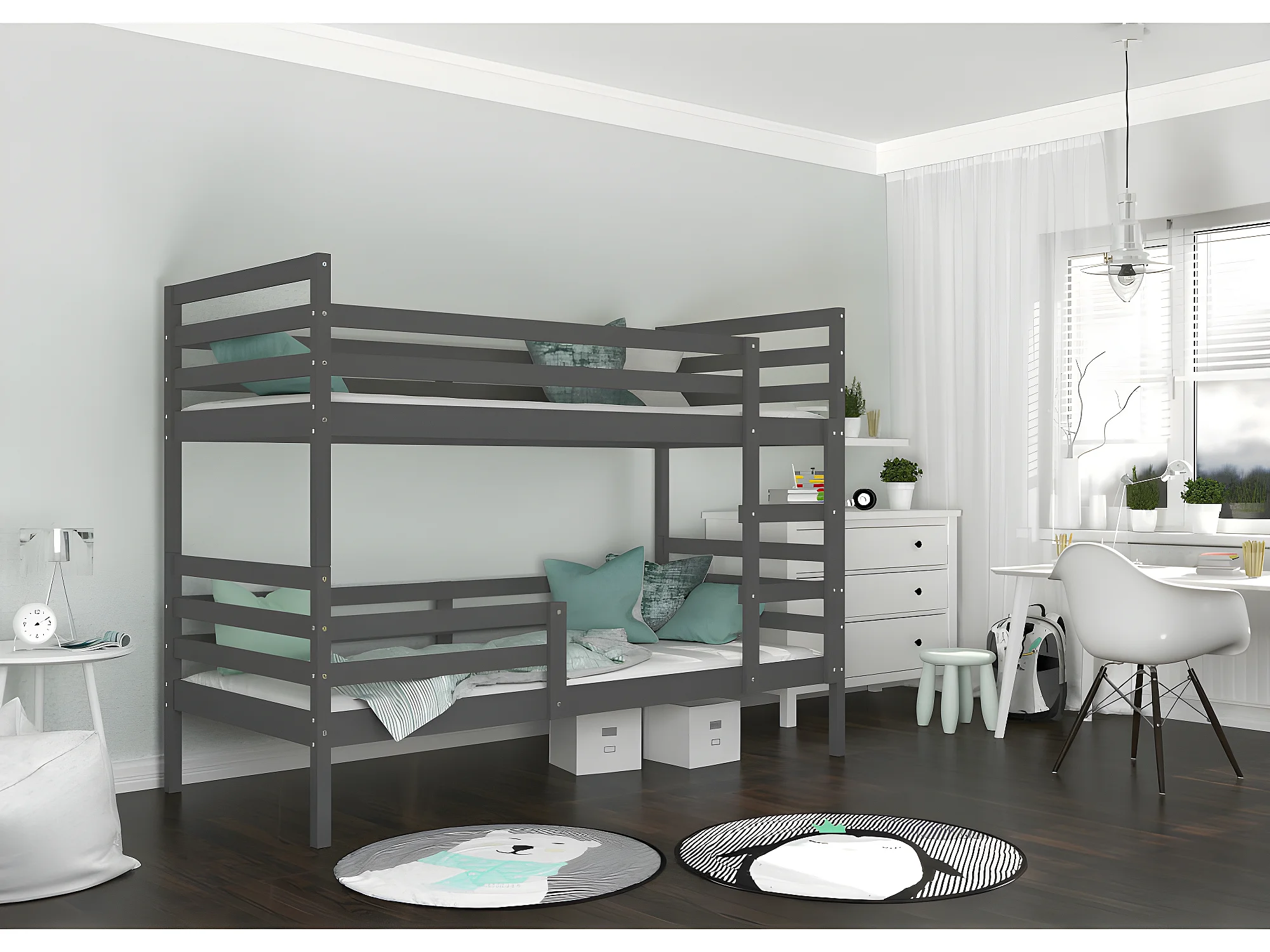Lit Superposé Mika 90x190 Gris Livré avec sommiers