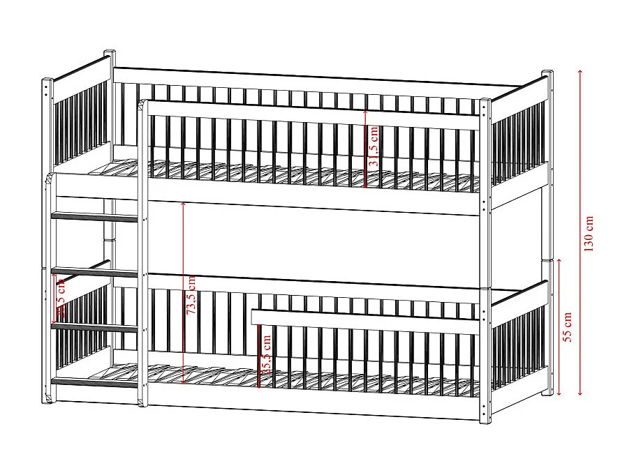Lit Superposé MINELO 90x190 - Bois massif Blanc - blanc Livré avec sommiers