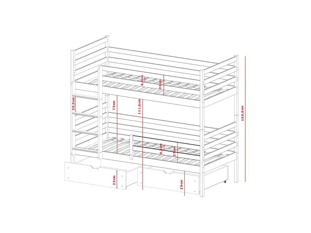 Lit Superposé Neo 90x190 - sommiers et tiroirs Pin Livré avec le sommiers et tiroir.