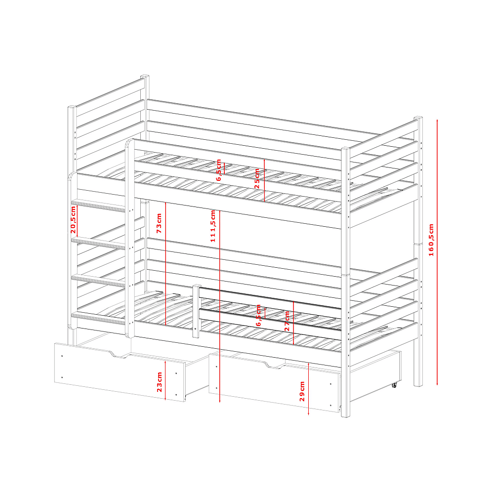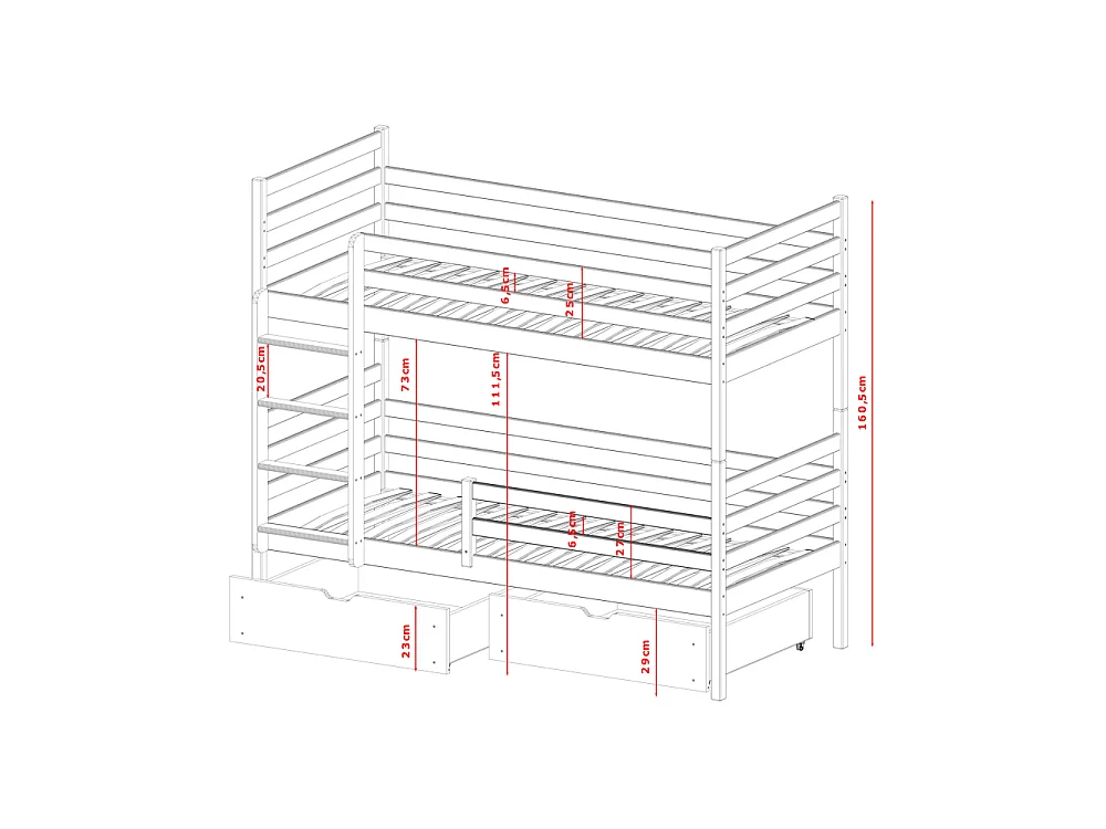 Lit Superposé Neo 90x200 - sommiers et tiroirs Pin Livré avec le sommiers et tiroir.