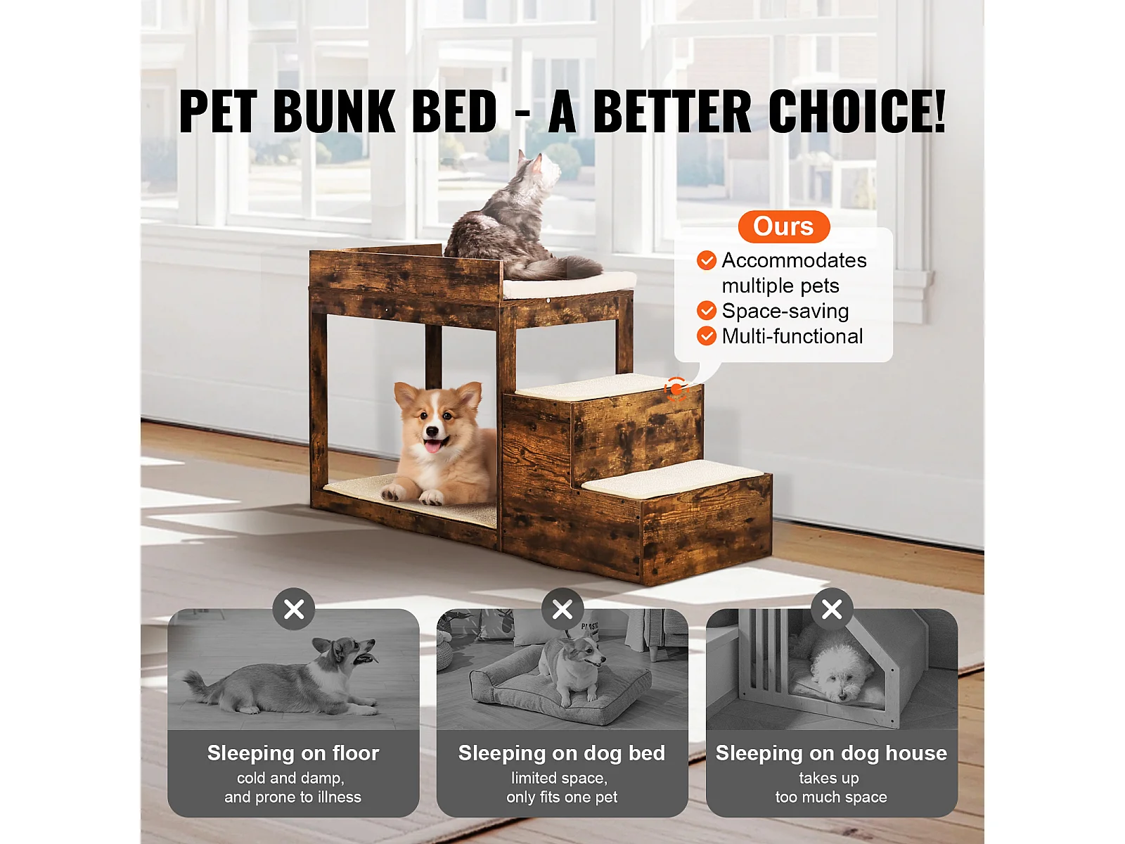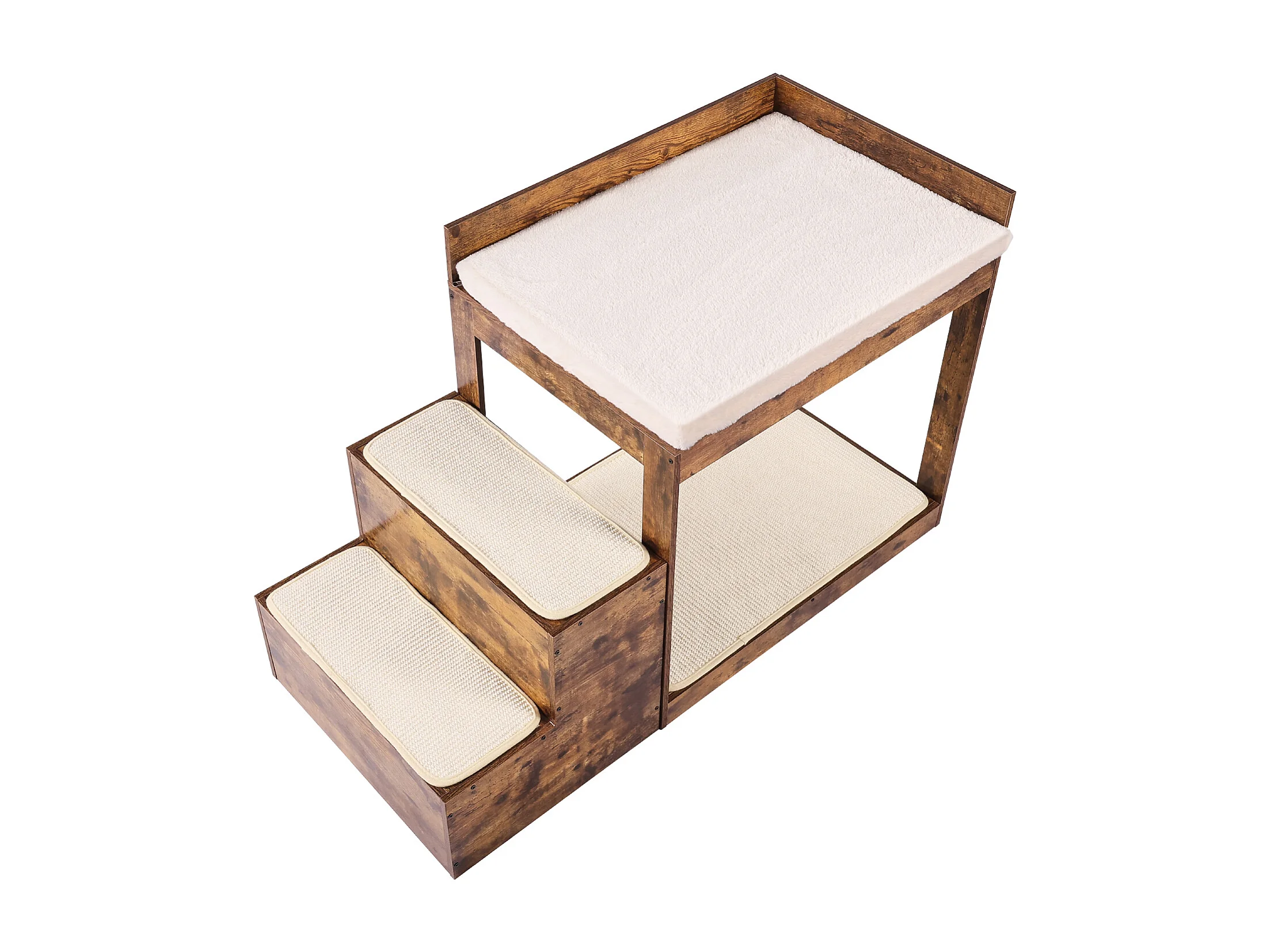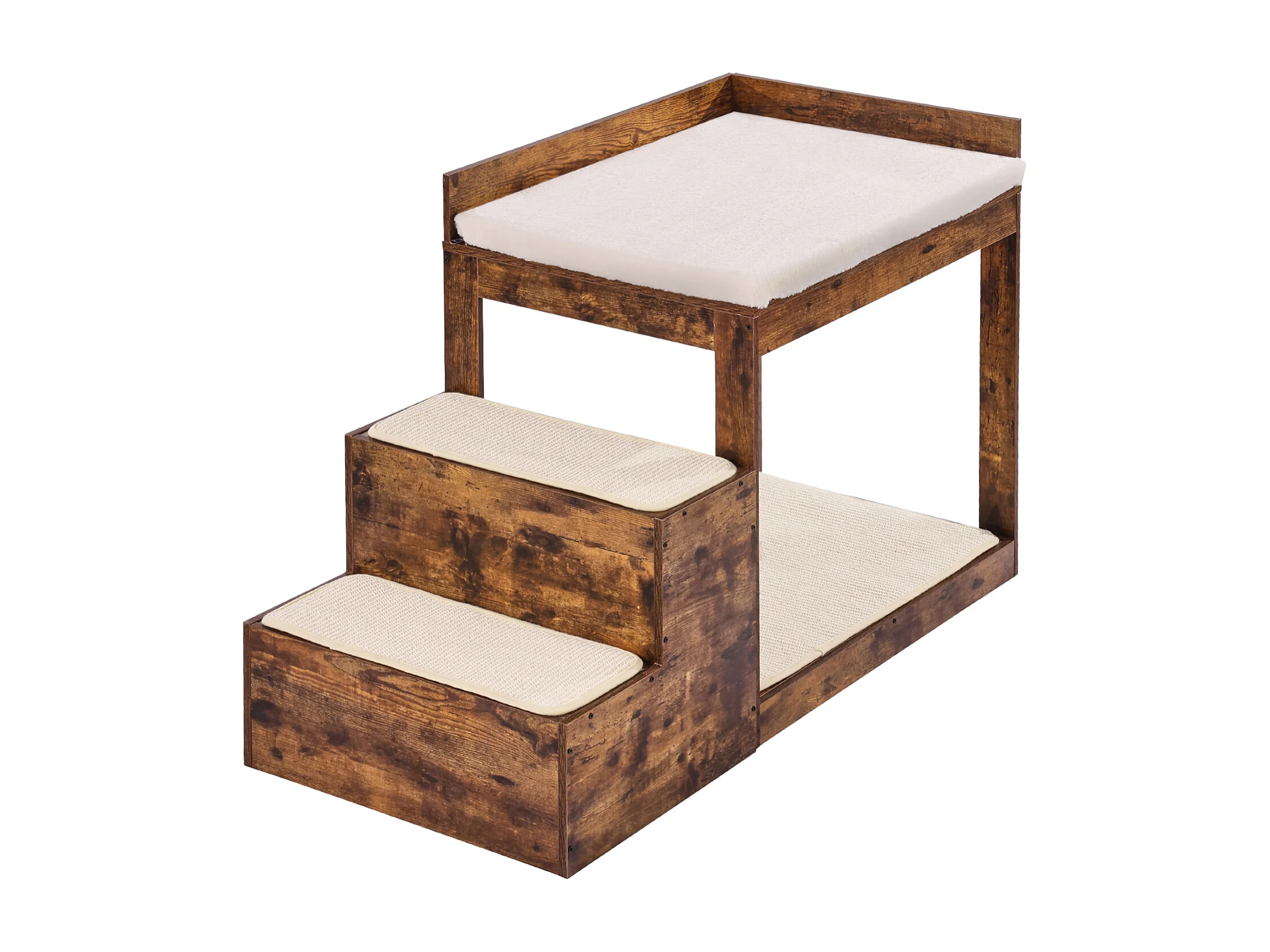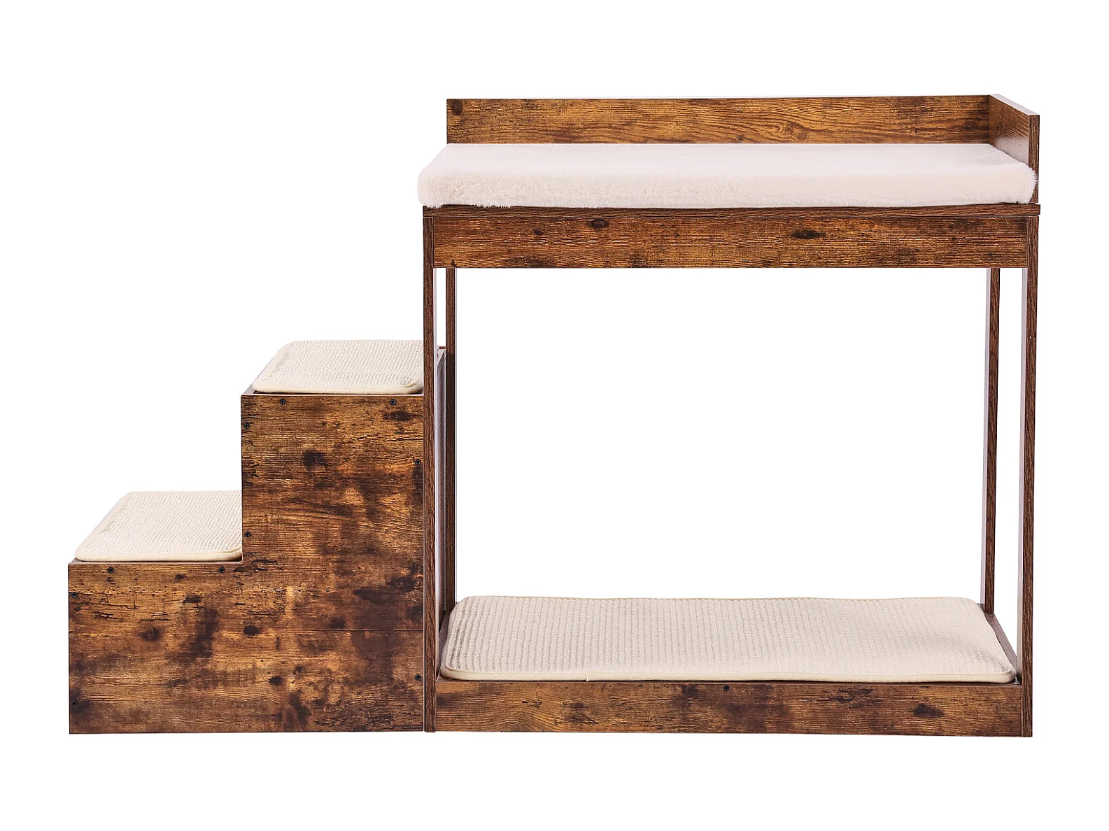 Lit Superposé pour Animaux SucceBuy, avec Escaliers, Perchoir de Fenêtre, Canapé-Lit Moyen, Marron