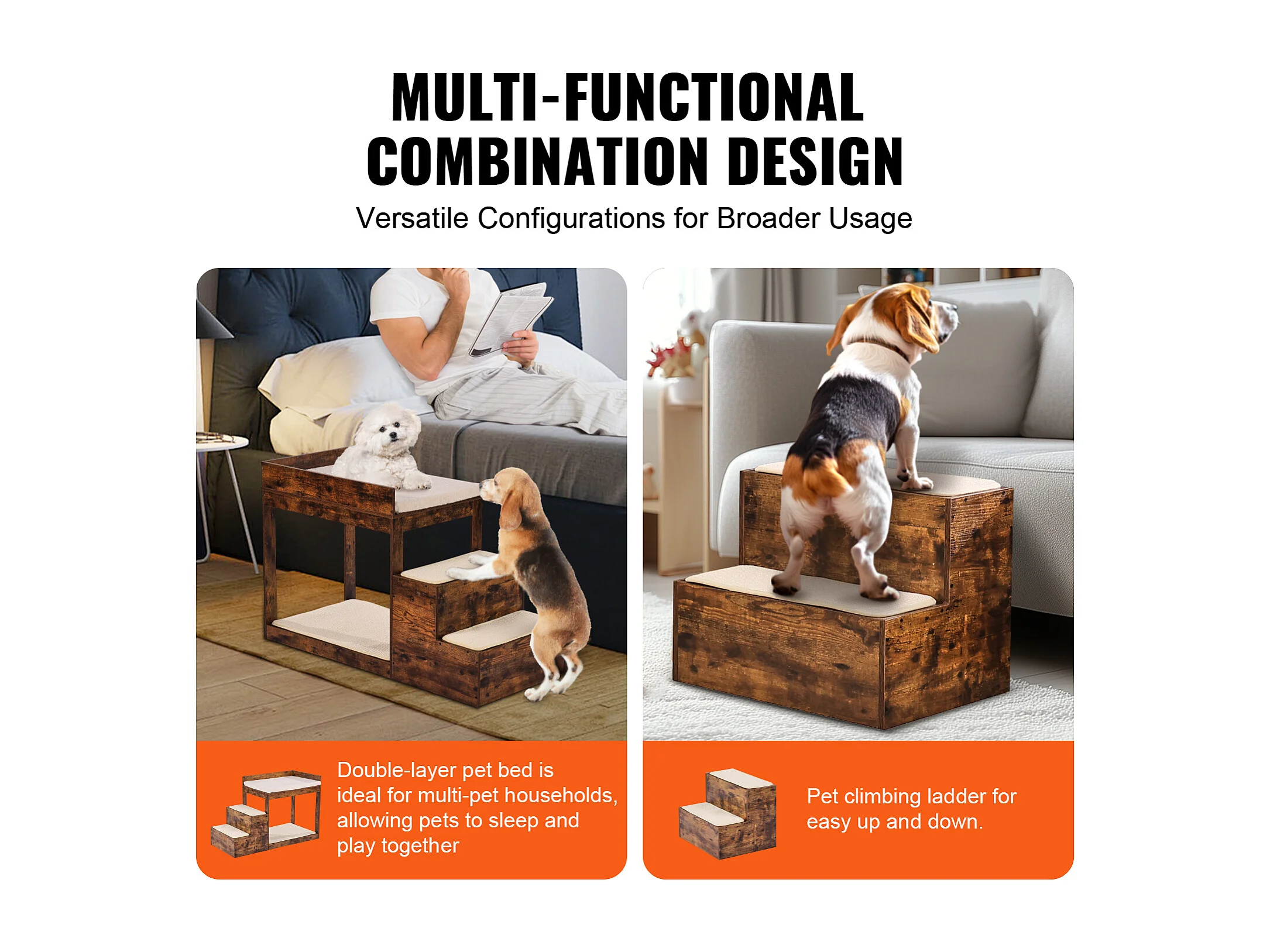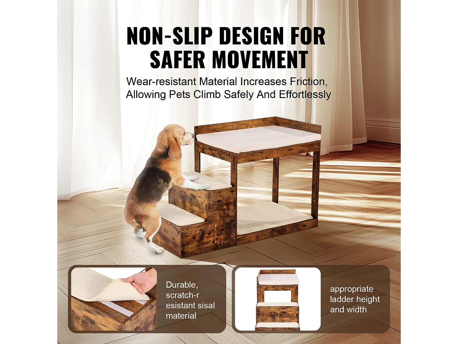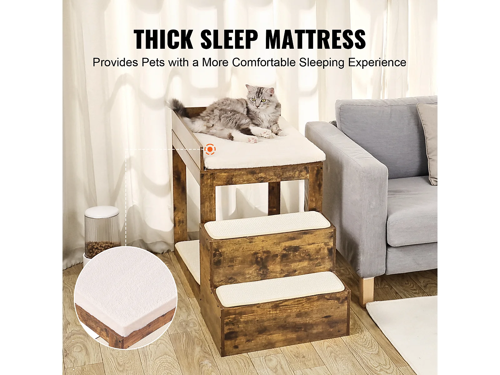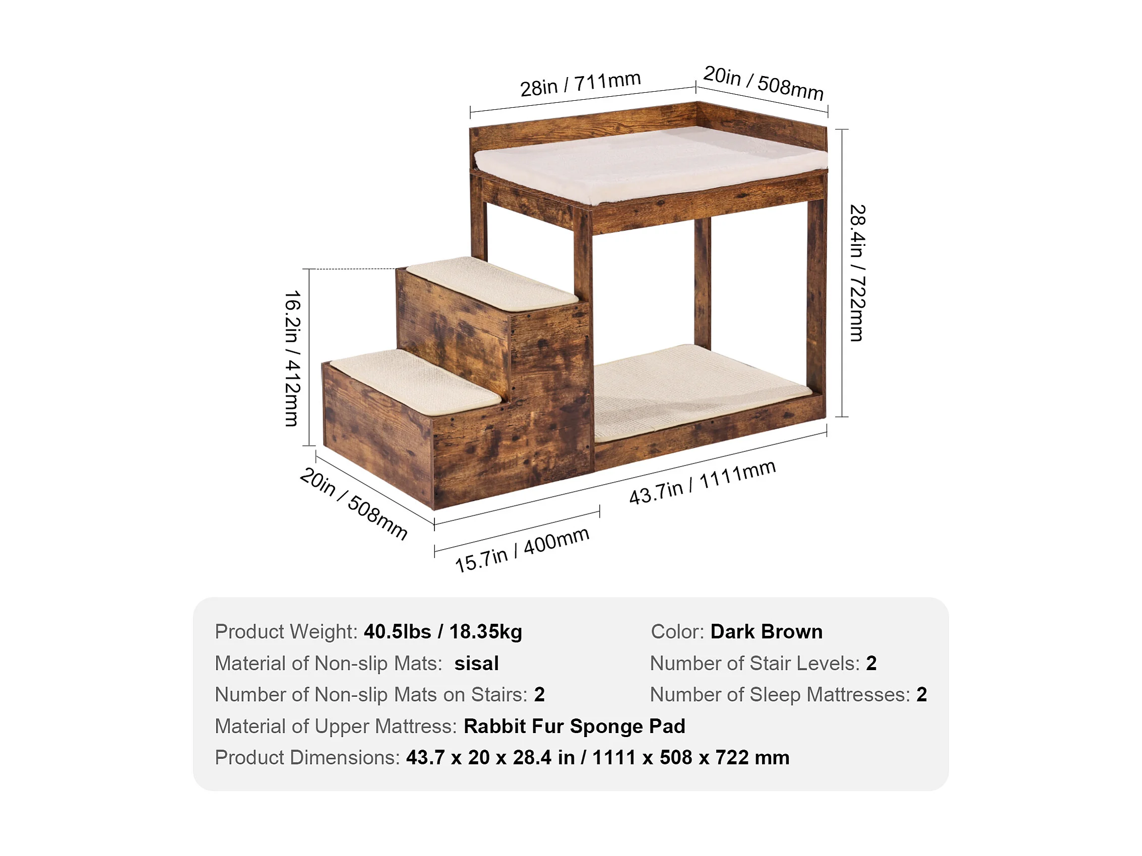 Lit Superposé pour Animaux SucceBuy, avec Escaliers, Perchoir de Fenêtre, Canapé-Lit Moyen, Marron