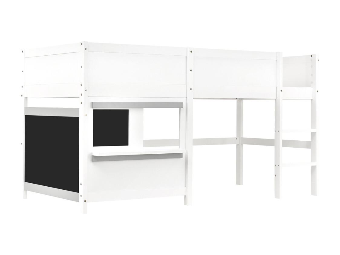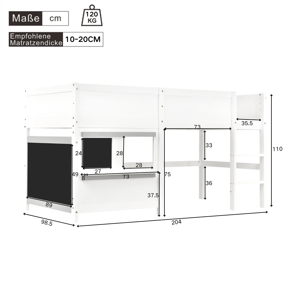 Lit superposé pour enfant 90x200cm, lit cabane ludique avec deux planches, idéal pour les graffitis et les petits rangements, en bois massif, blanc