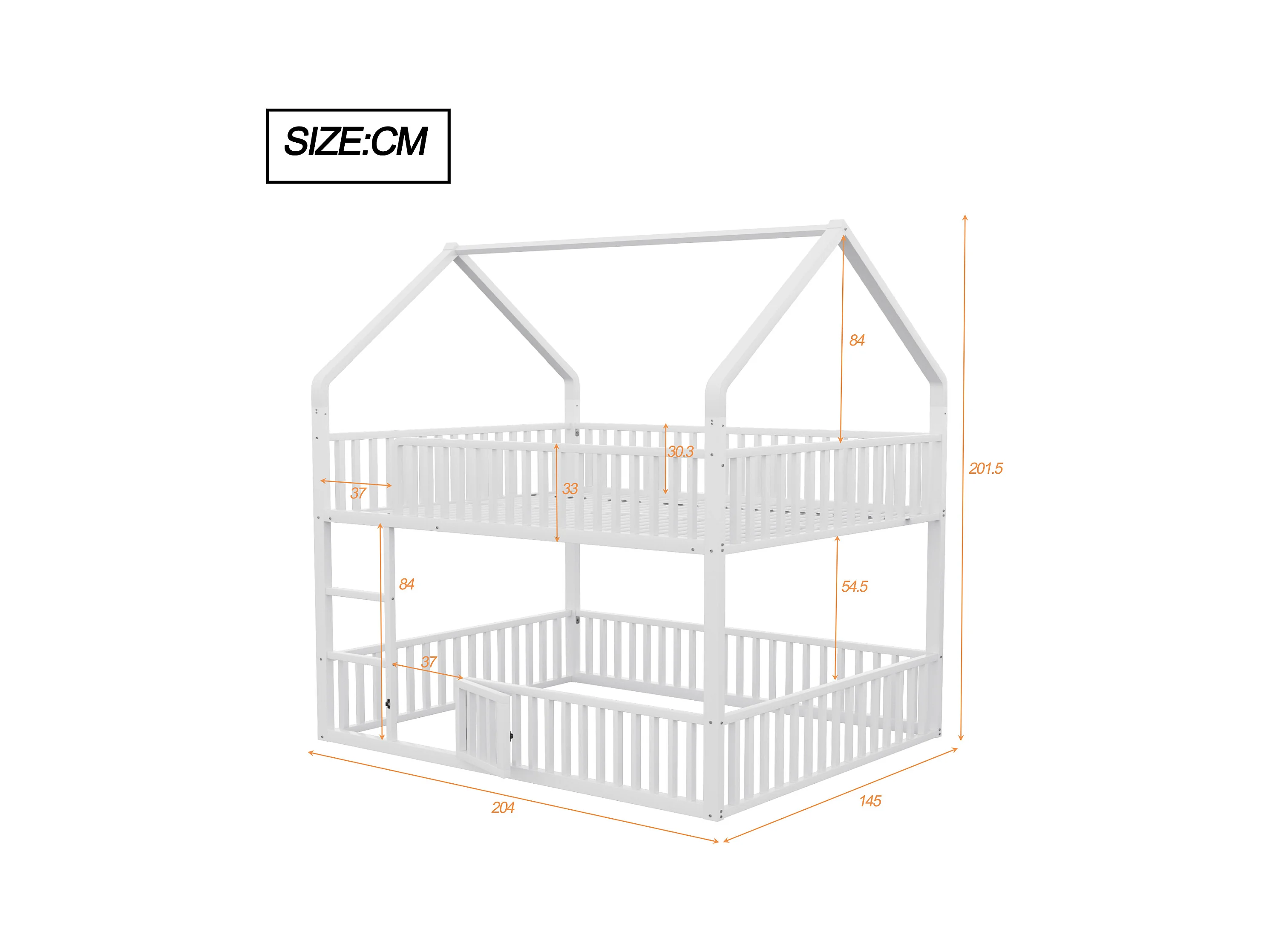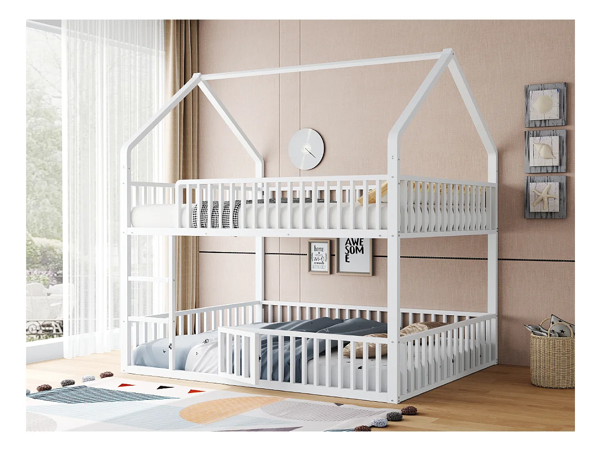 Lit superposé pour enfants 140\200 cm, cadre en métal, lit avec échelle, design loft, avec porte à ouverture et fermeture, blanc (matelas non inclus)