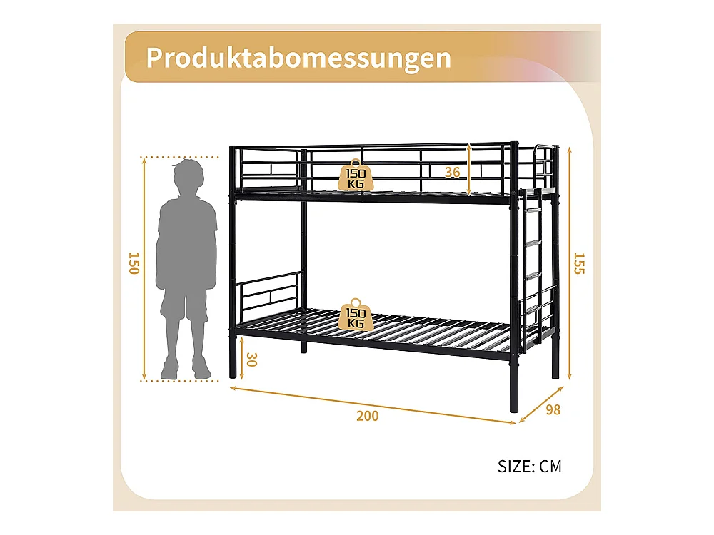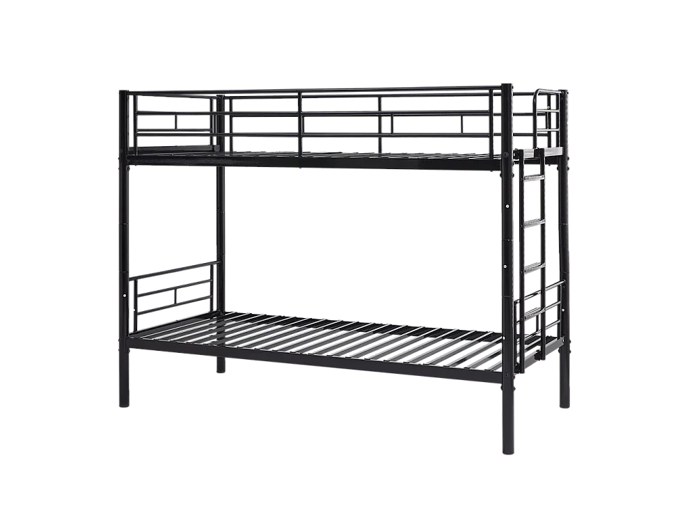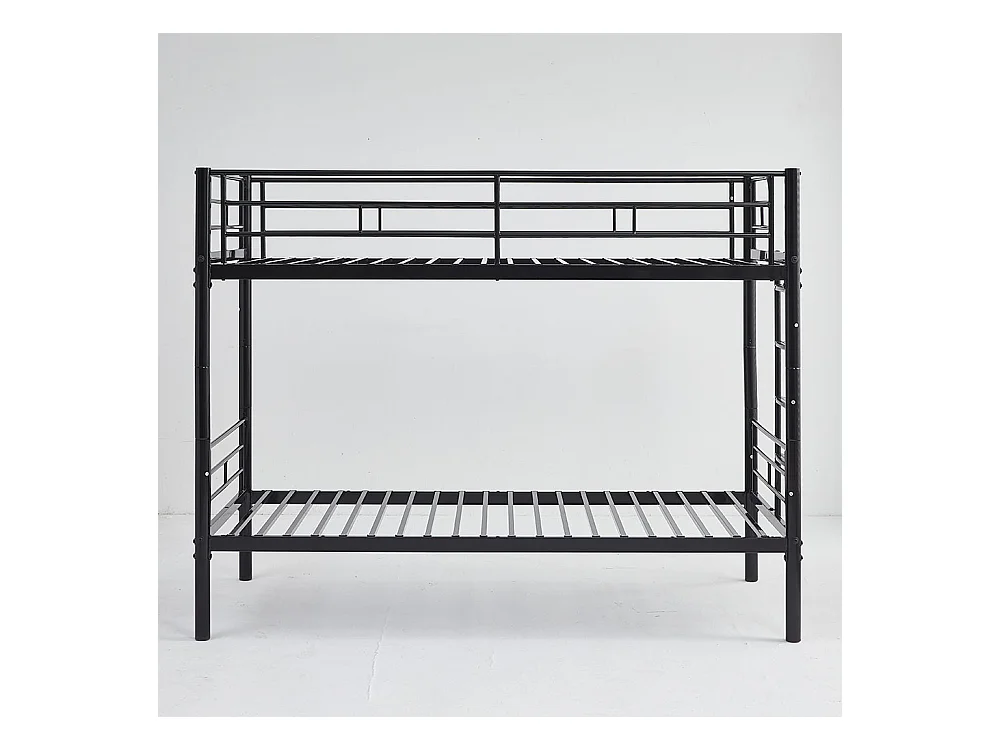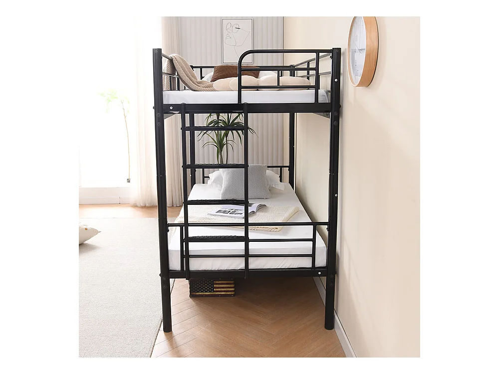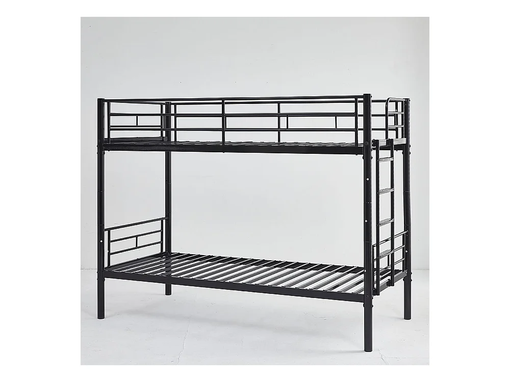 Lit superposé pour enfants 90x200 avec protections latérales transformable en deux lits simples avec escalier antidérapant finition noire