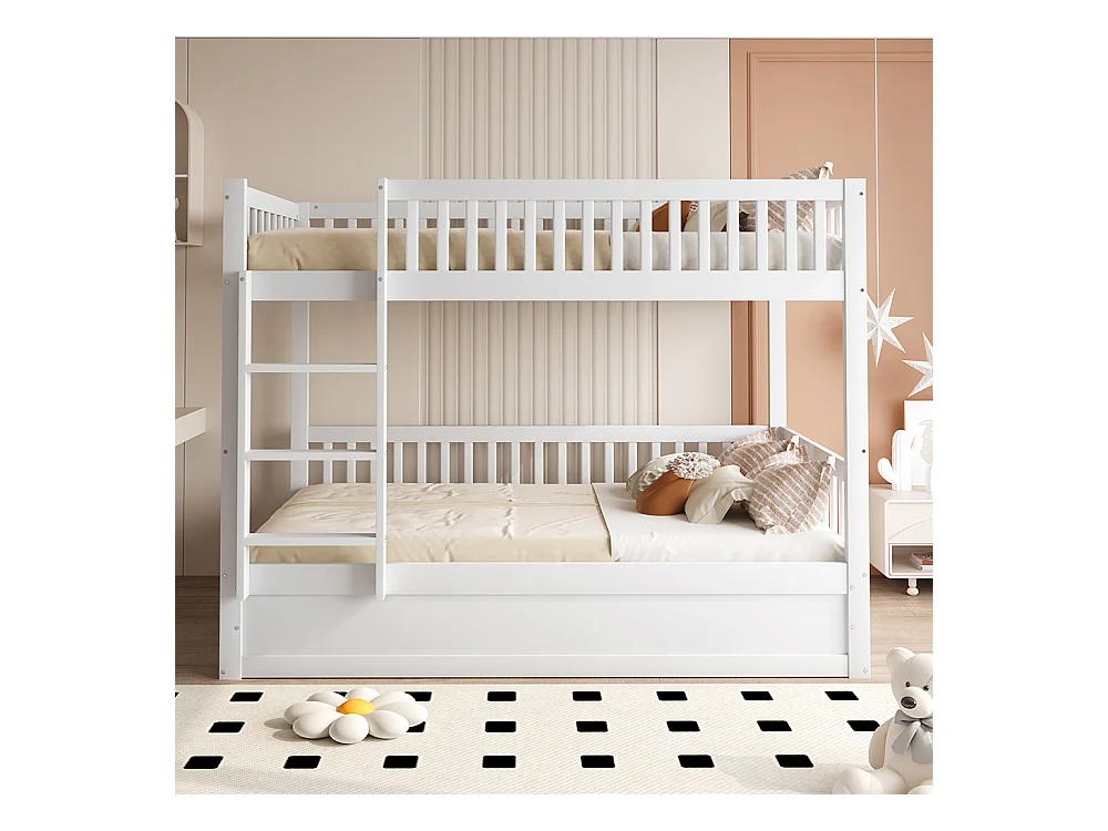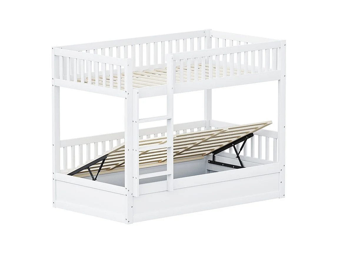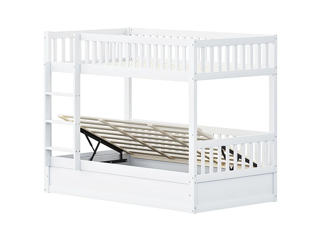 Lit superposé pour enfants 90x200 en bois massif Système de rangement hydraulique robuste et durable blanc