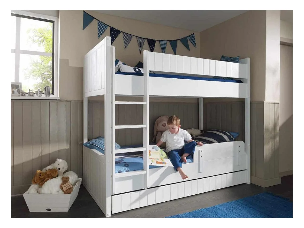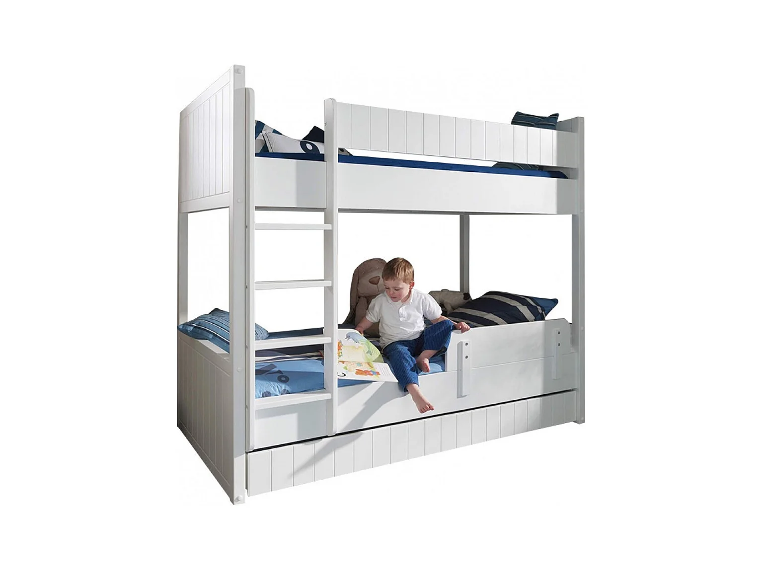 Pack - Lit Superposé Enfant, Tiroir & Barrière "Robin" Blanc